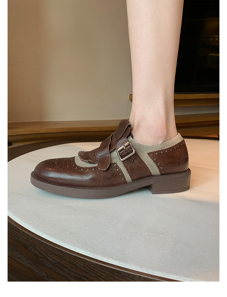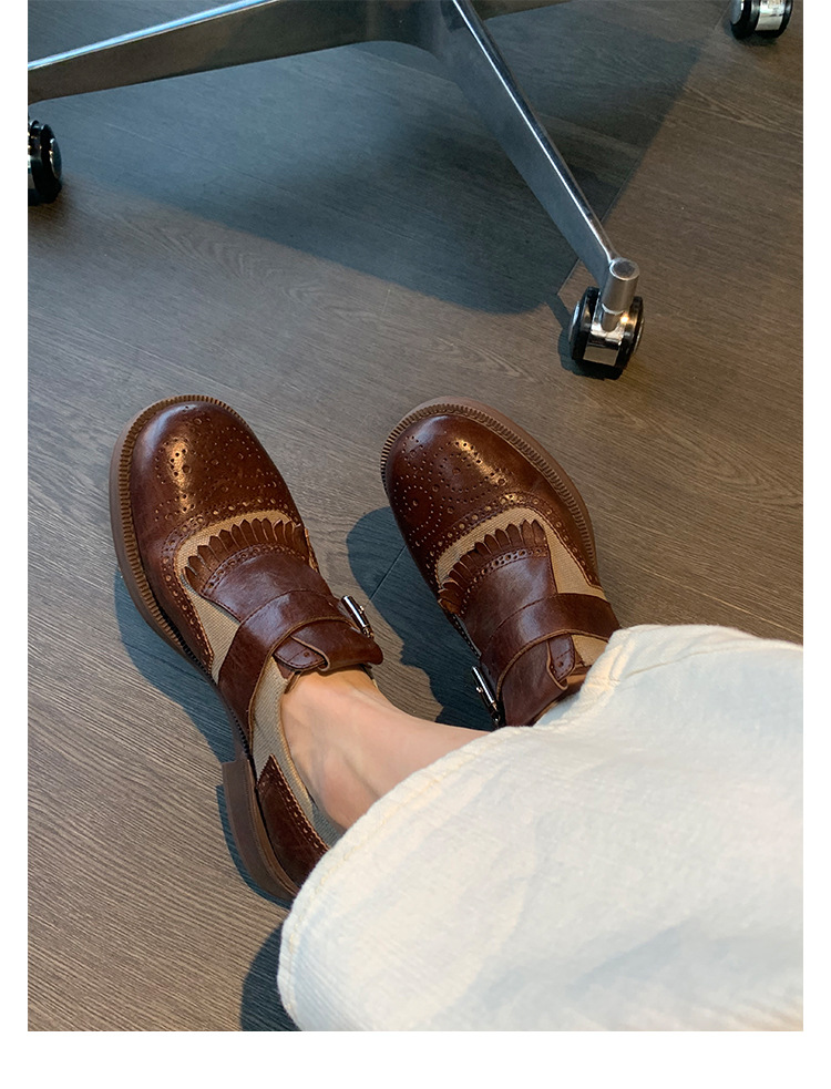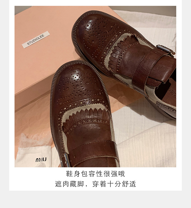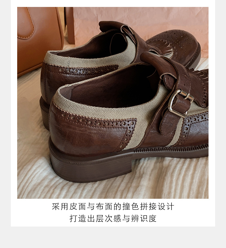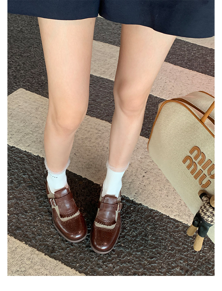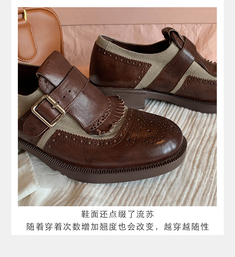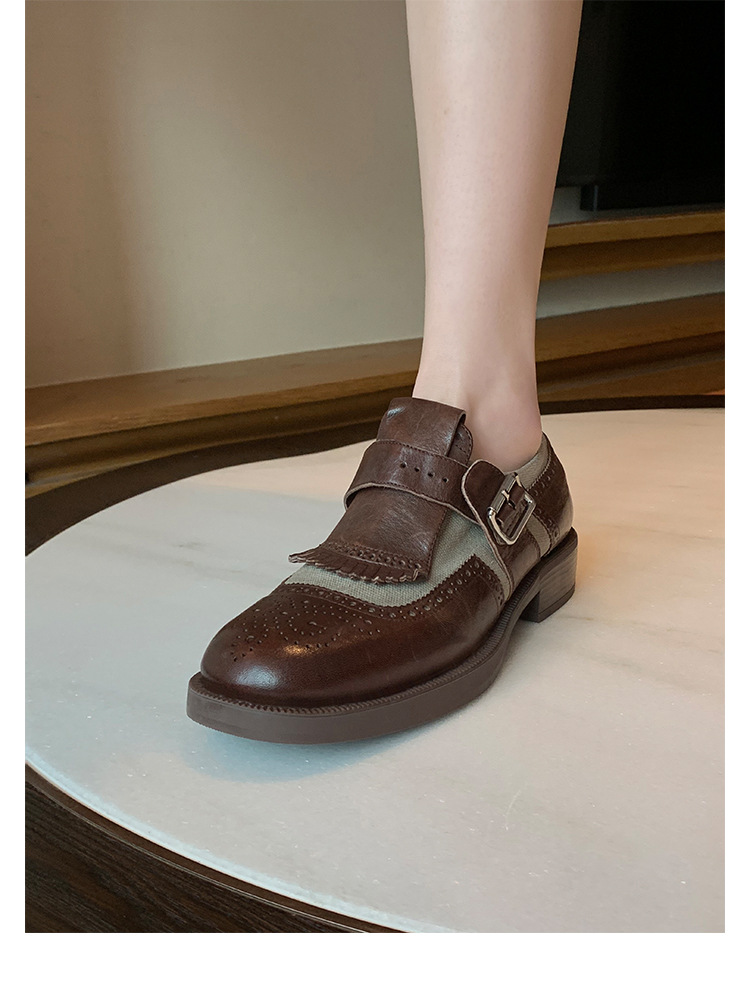 Versión de piel de vaca ~ Grape Mom, piel de caballo lavada con el mismo estilo, borlas de estilo británico, zapatos de cuero Brock tallados, zapatos de novia para mujer