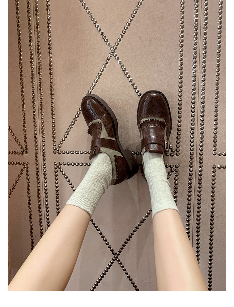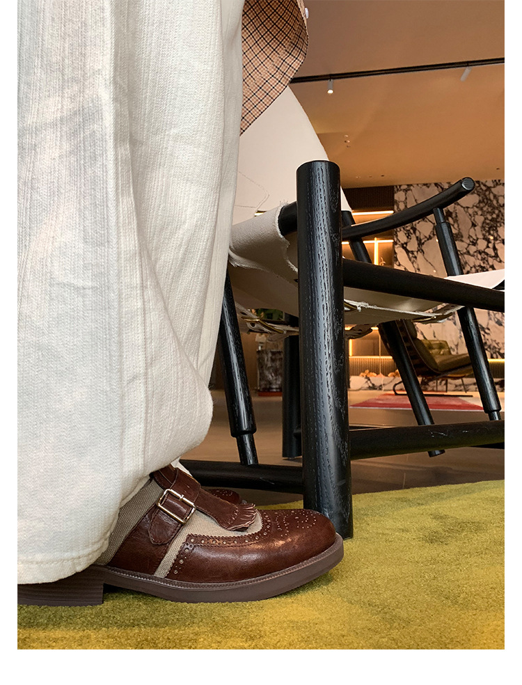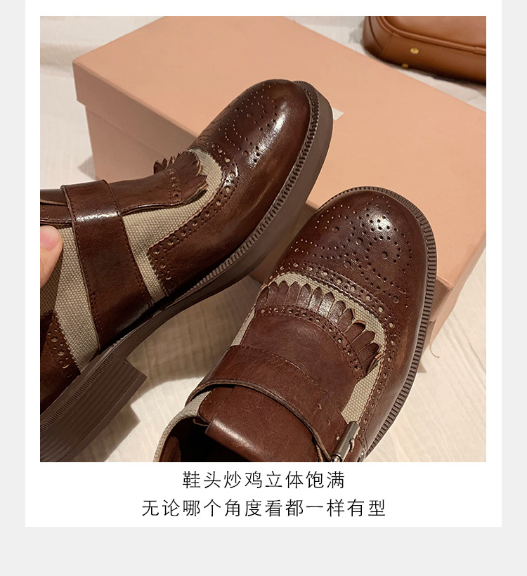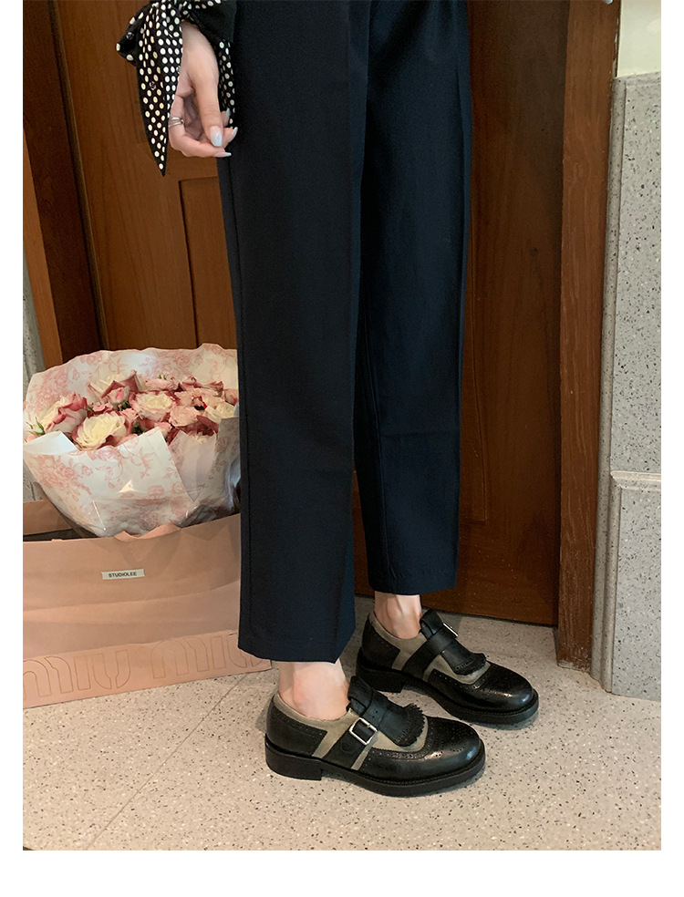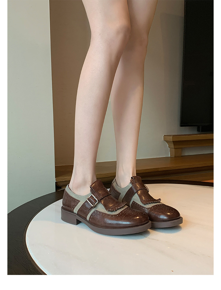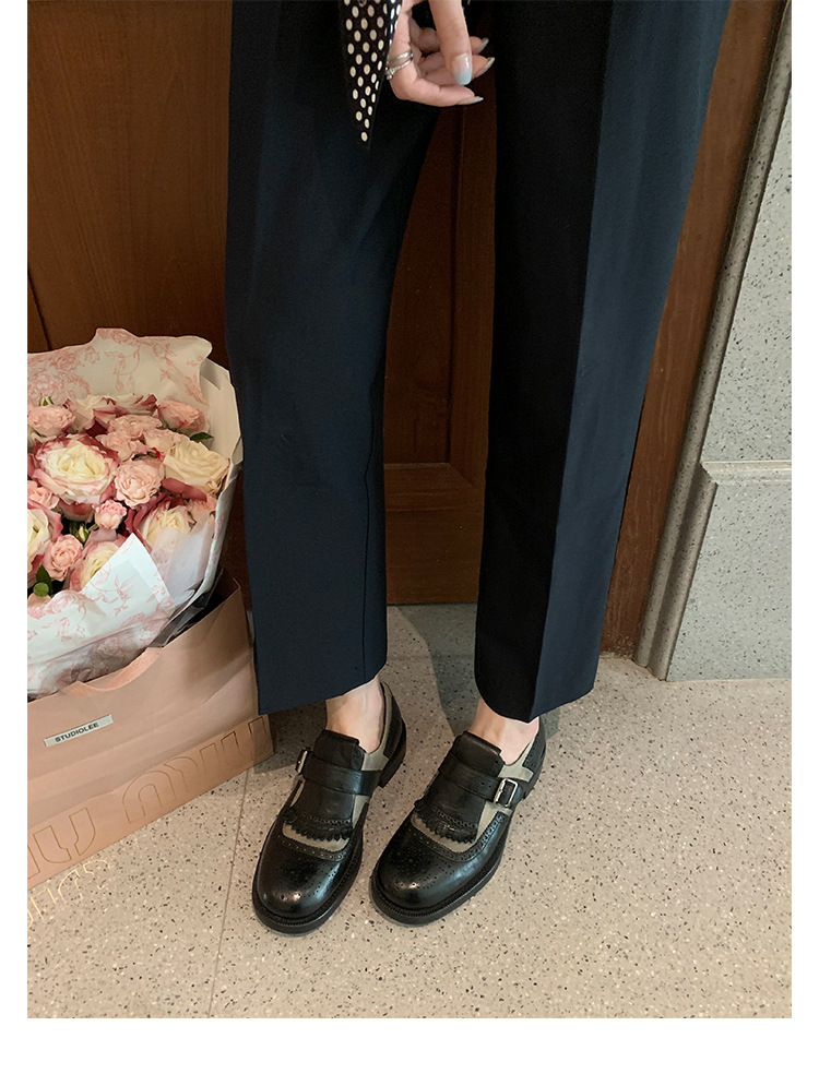 Versión de piel de vaca ~ Grape Mom, piel de caballo lavada con el mismo estilo, borlas de estilo británico, zapatos de cuero Brock tallados, zapatos de novia para mujer