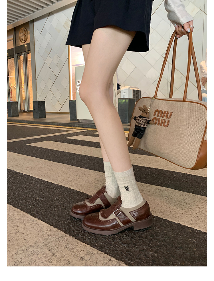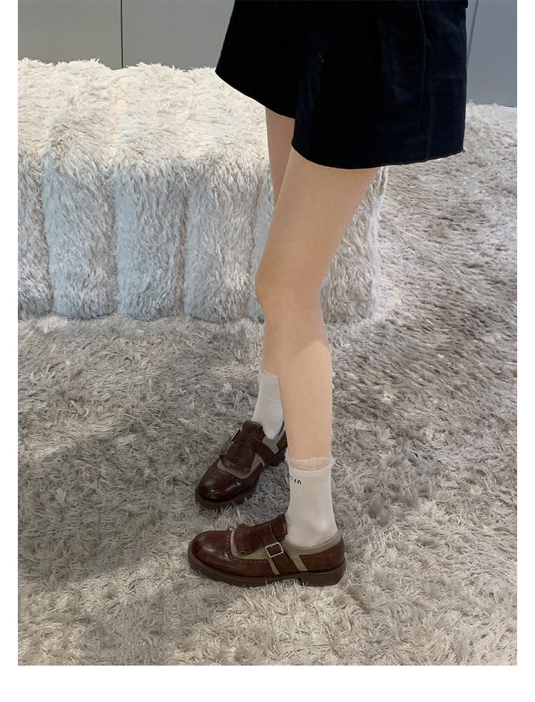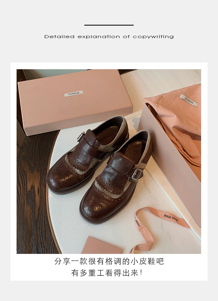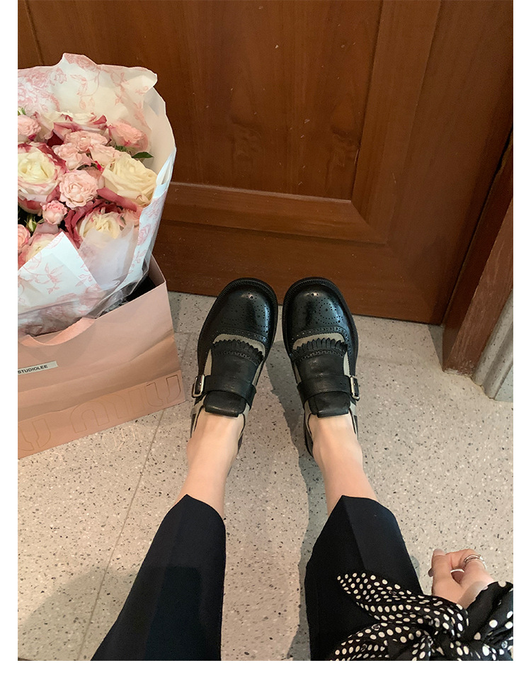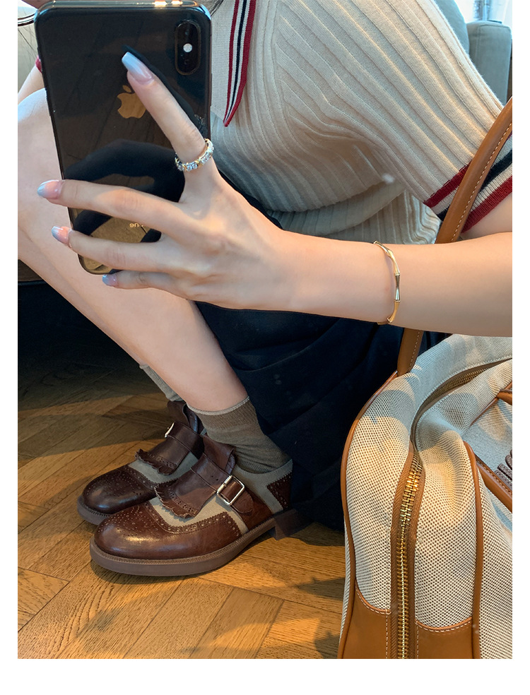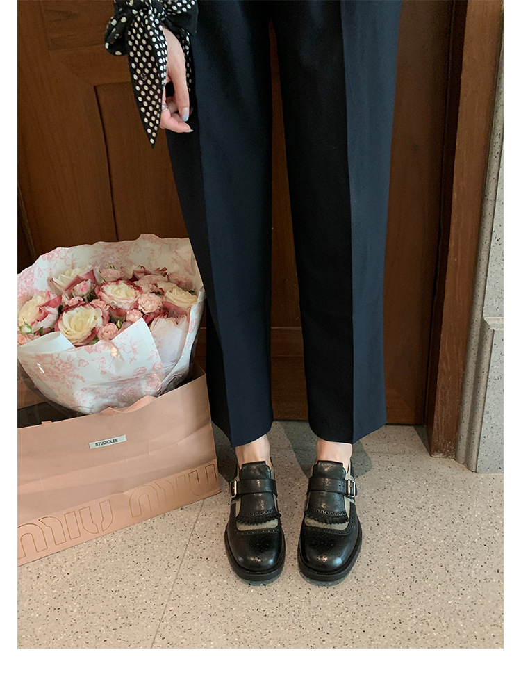 Versión de piel de vaca ~ Grape Mom, piel de caballo lavada con el mismo estilo, borlas de estilo británico, zapatos de cuero Brock tallados, zapatos de novia para mujer