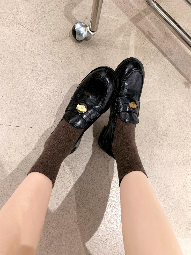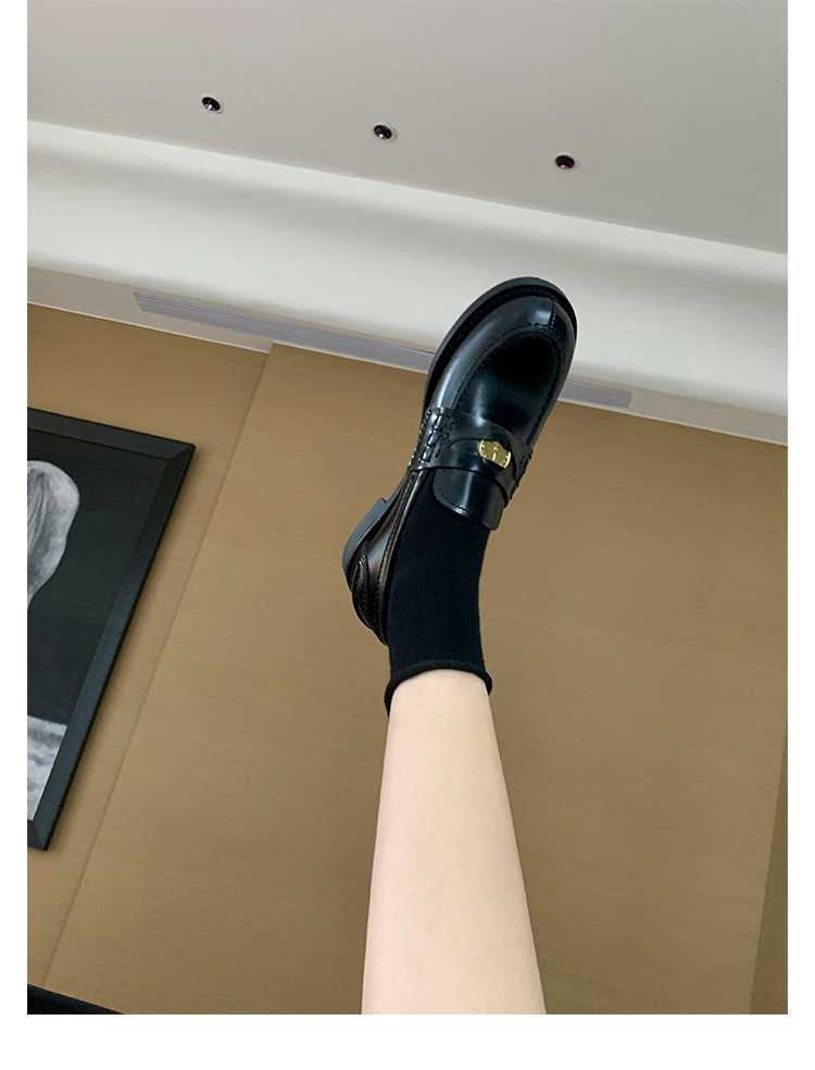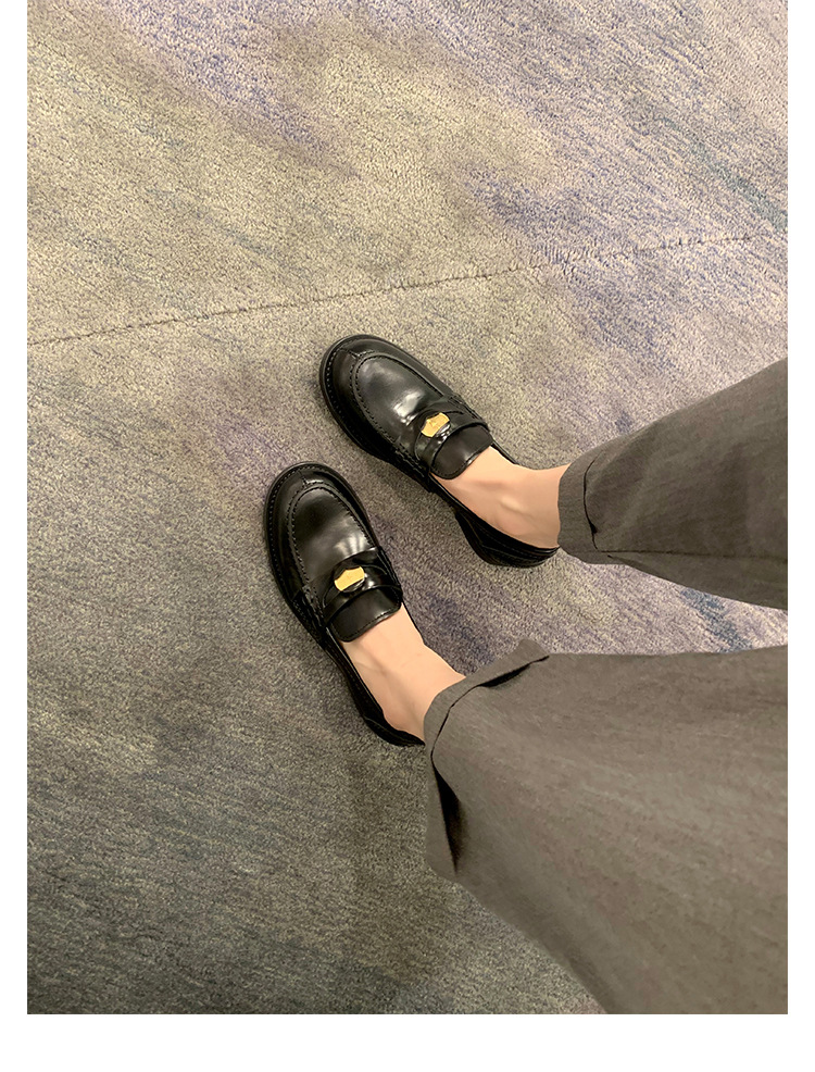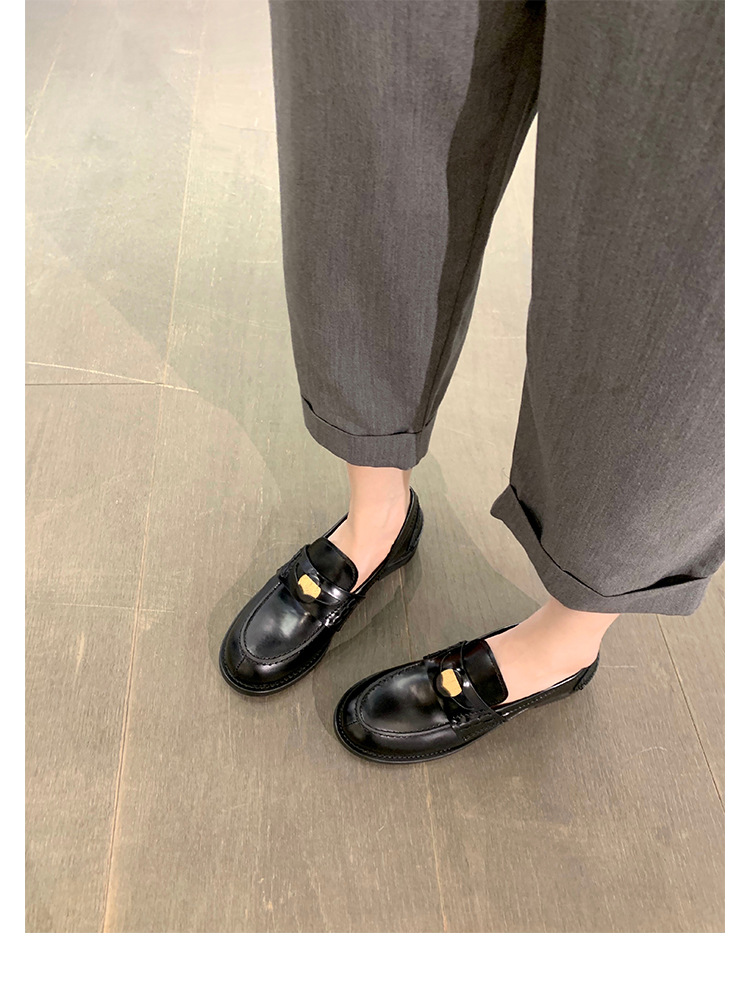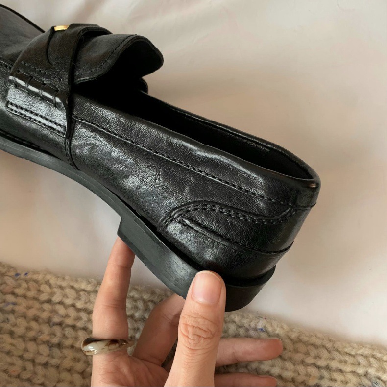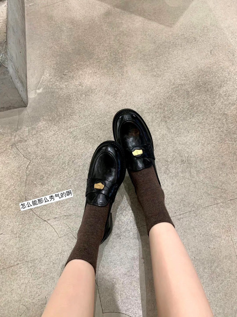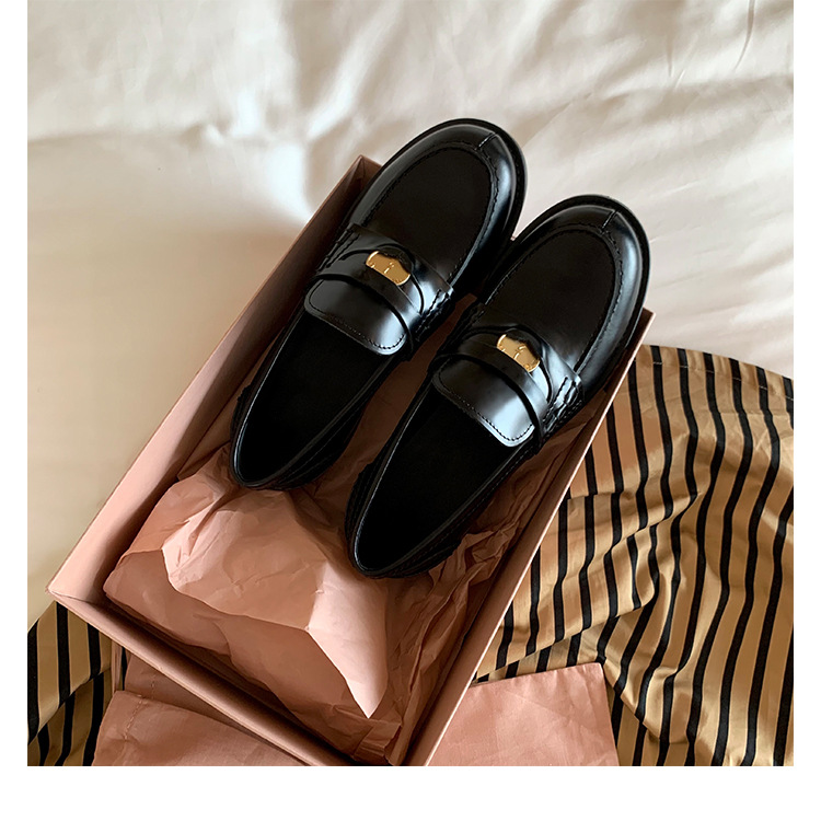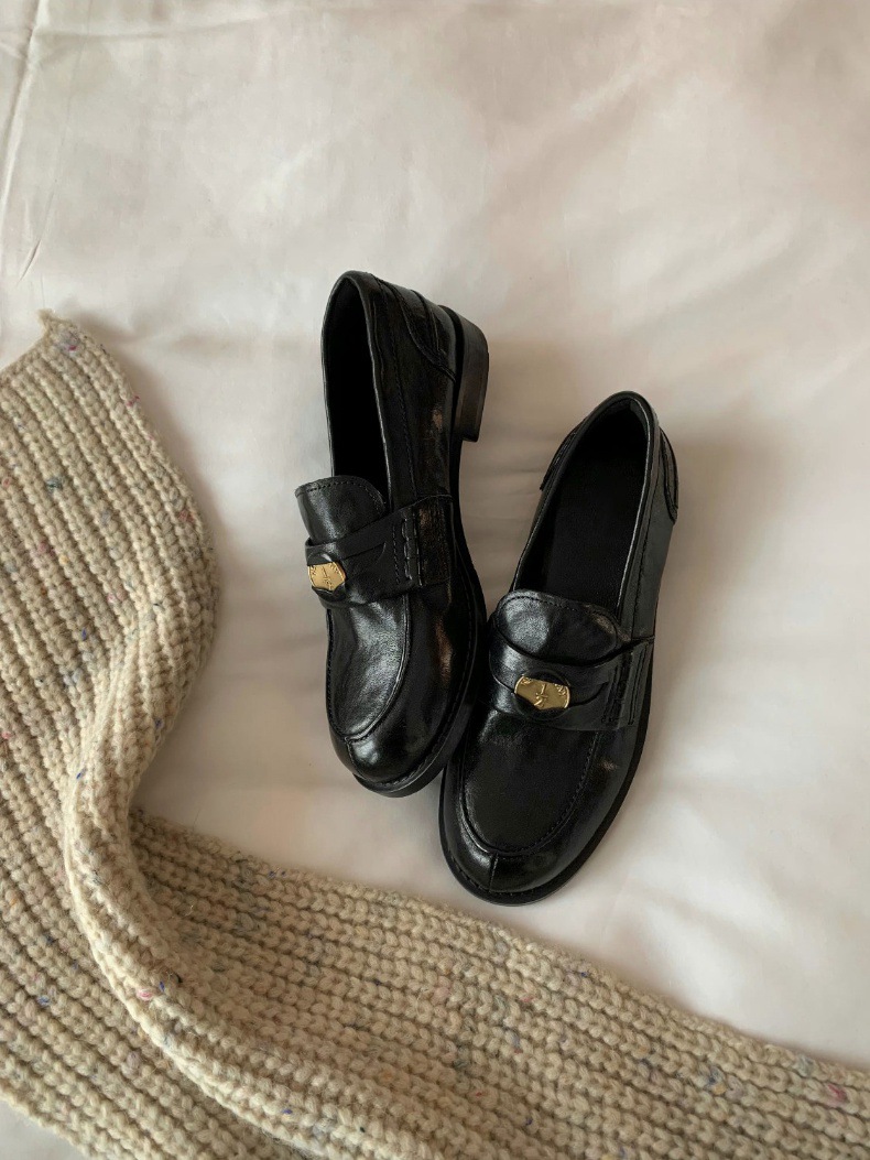Versión de piel de oveja cuidadosamente seleccionada ~ Zapatos Lofu de suela gruesa lavados, zapatos de mujer, monedas de oro pequeñas retro, zapatos de cuero pequeños, zapatos perezosos de un pie