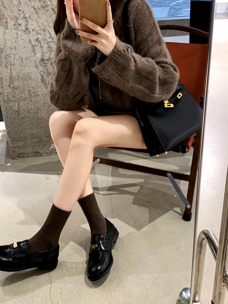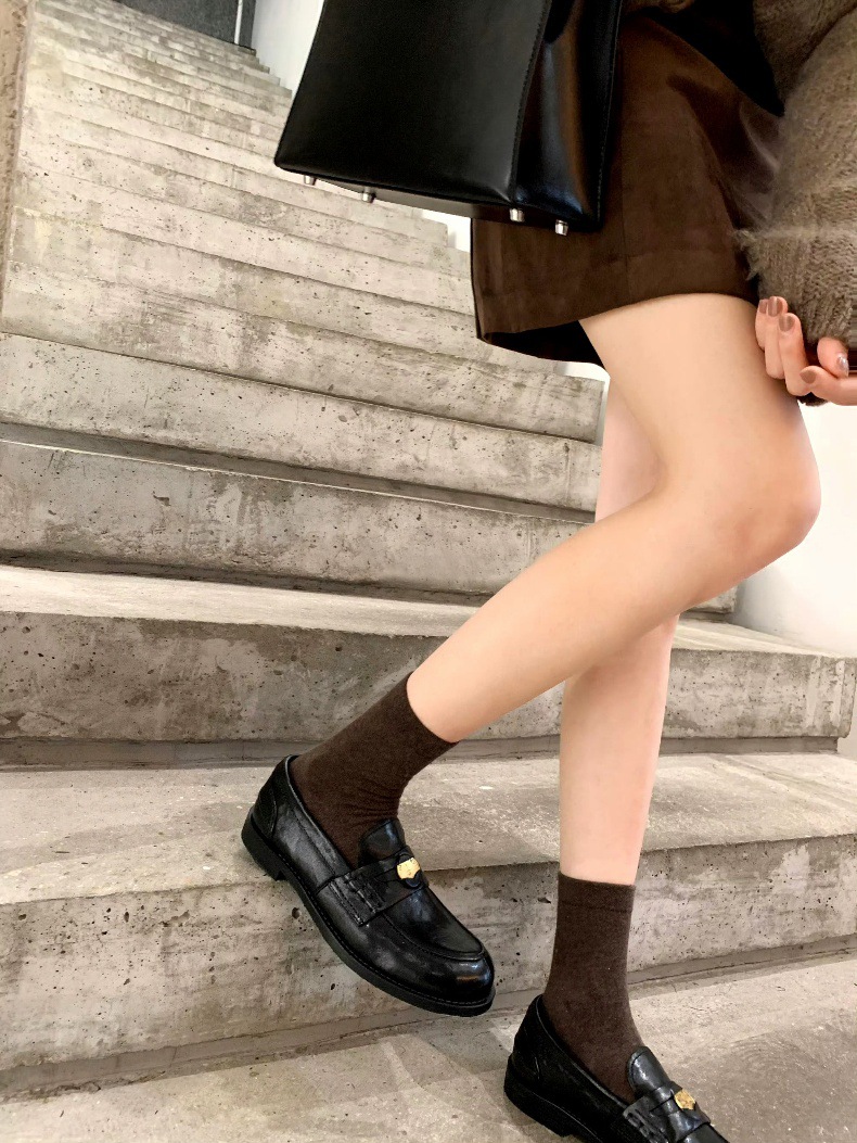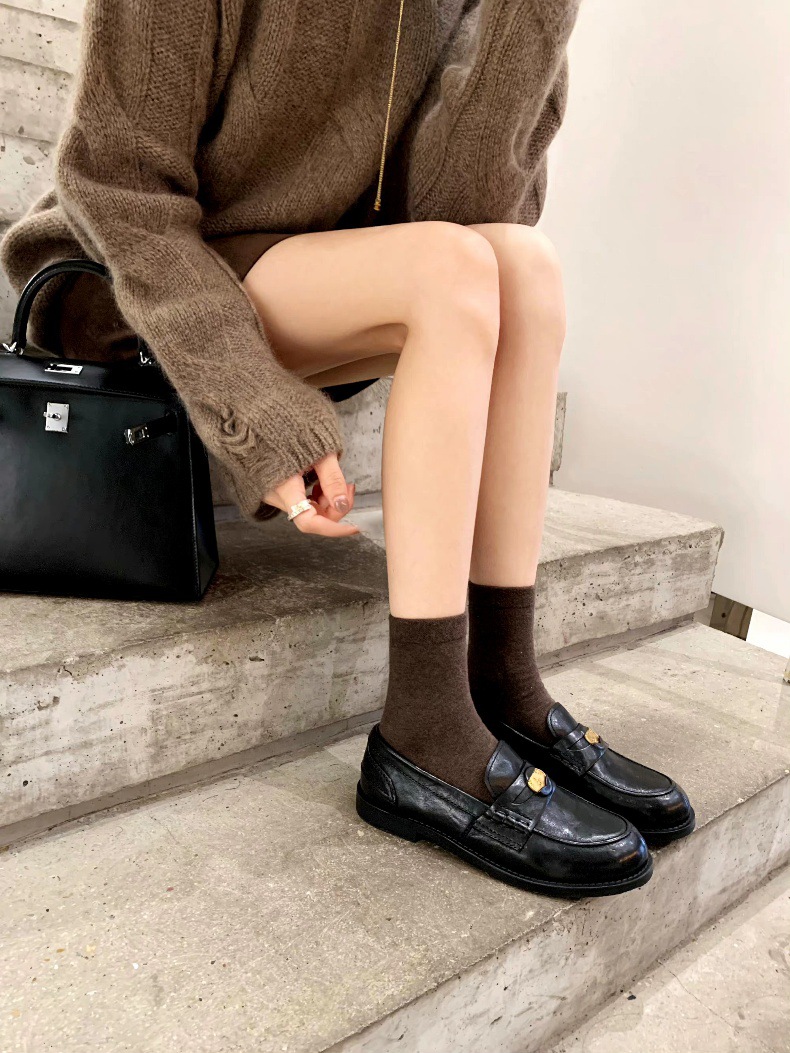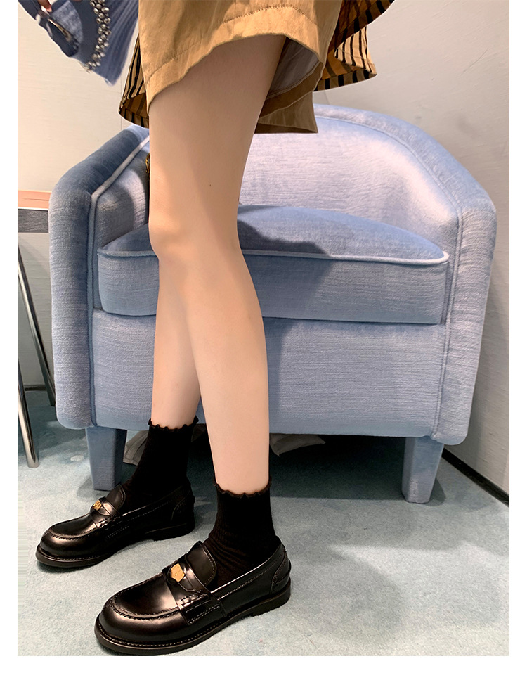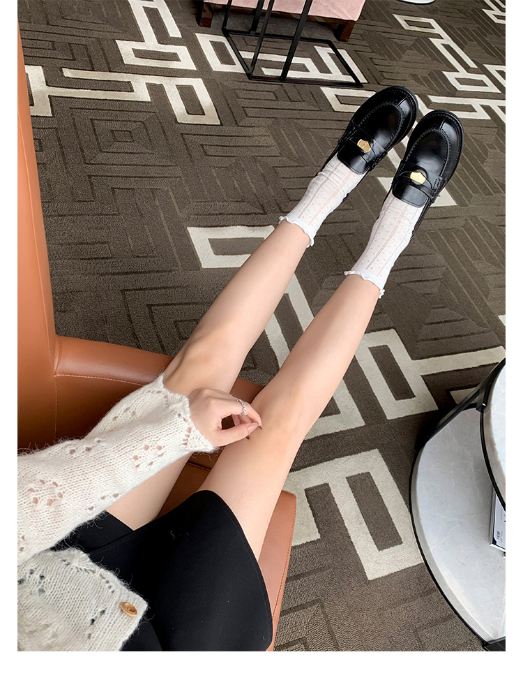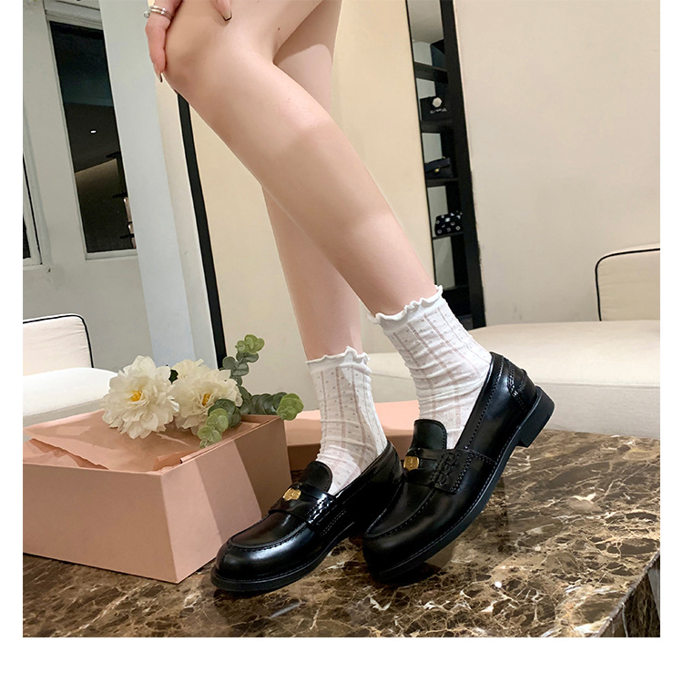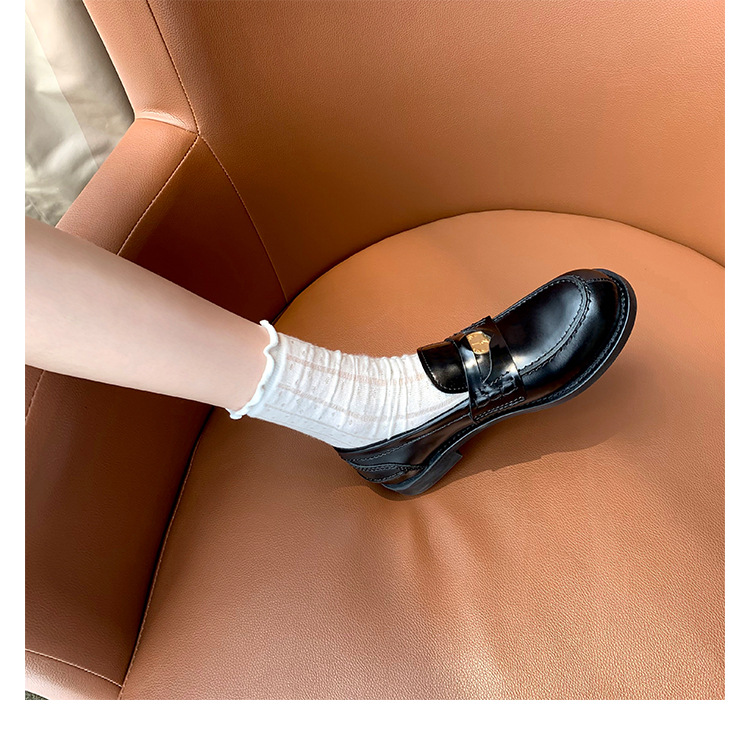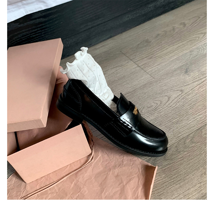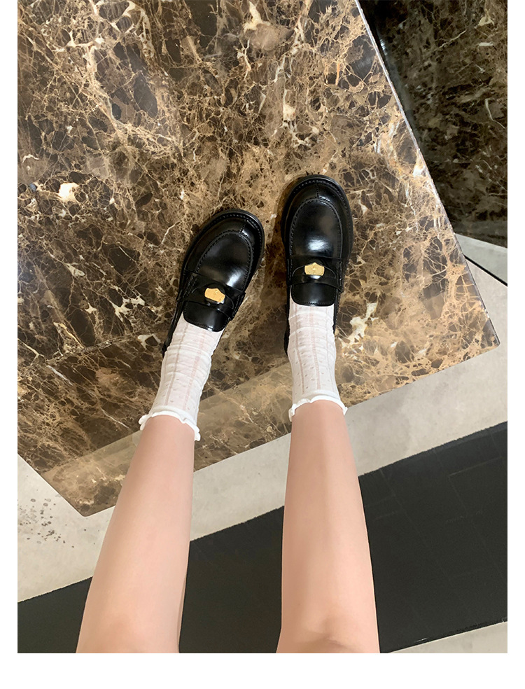 Versión de piel de oveja cuidadosamente seleccionada ~ Zapatos Lofu de suela gruesa lavados, zapatos de mujer, monedas de oro pequeñas retro, zapatos de cuero pequeños, zapatos perezosos de un pie