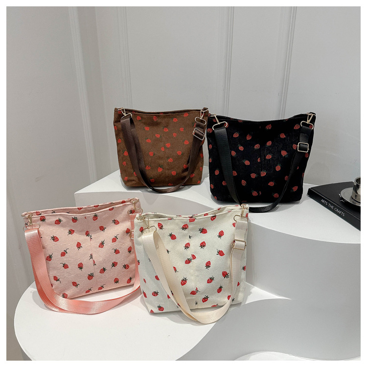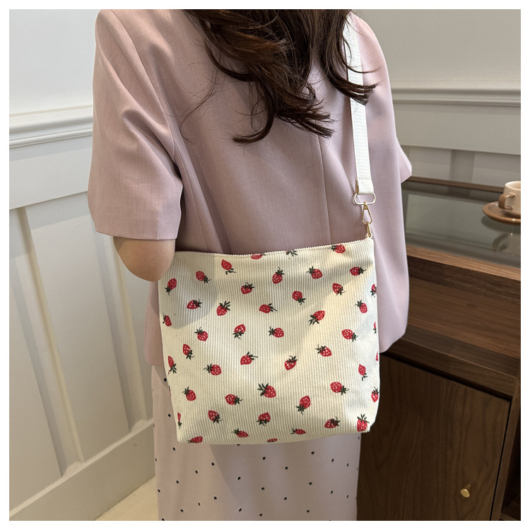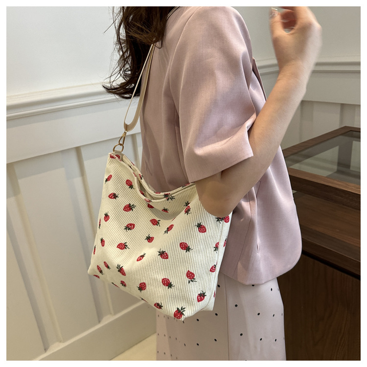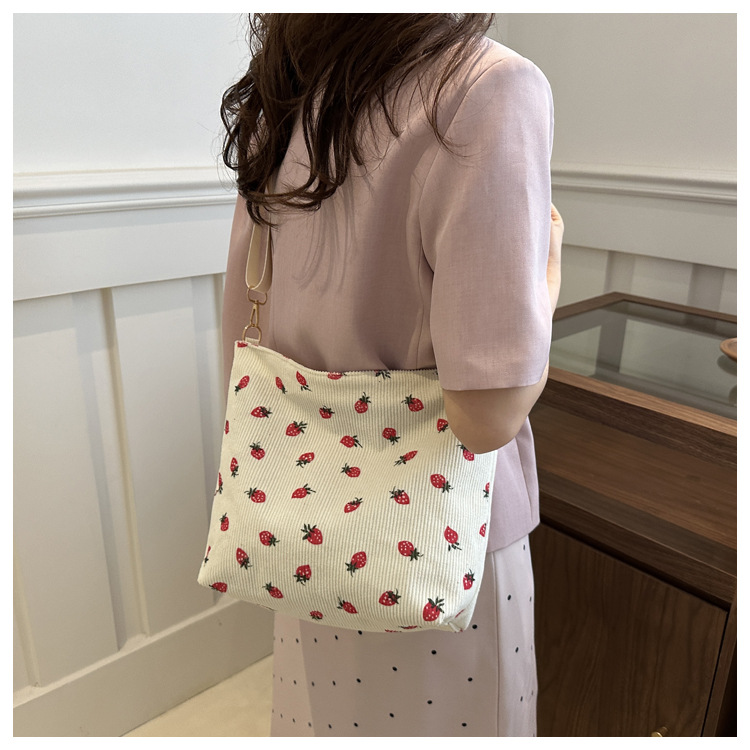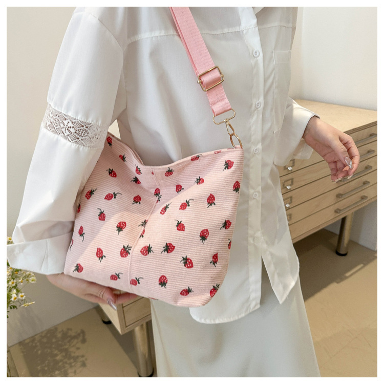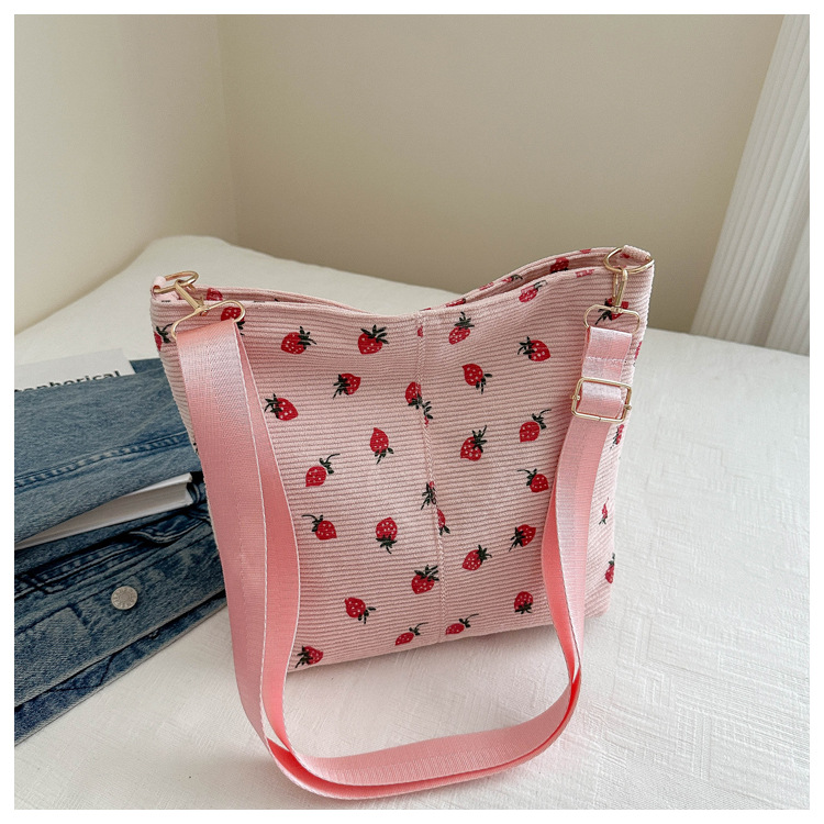 Bolsas de impresión de fresas populares de vellón mujeres coreanas de verano 2024 nuevo cross-border mochila de hombro bolsas de cubo