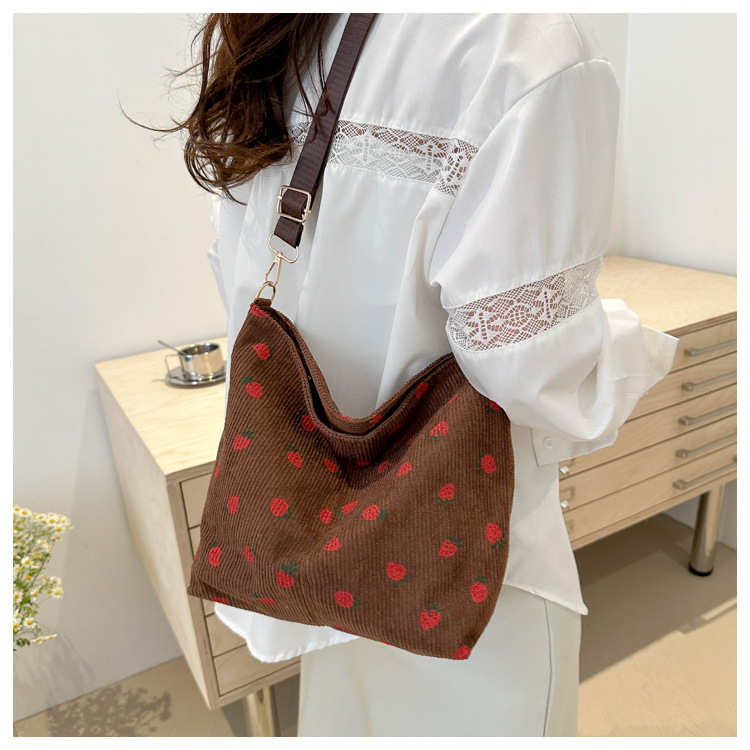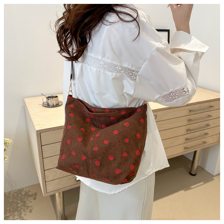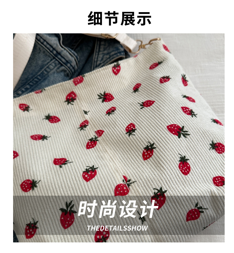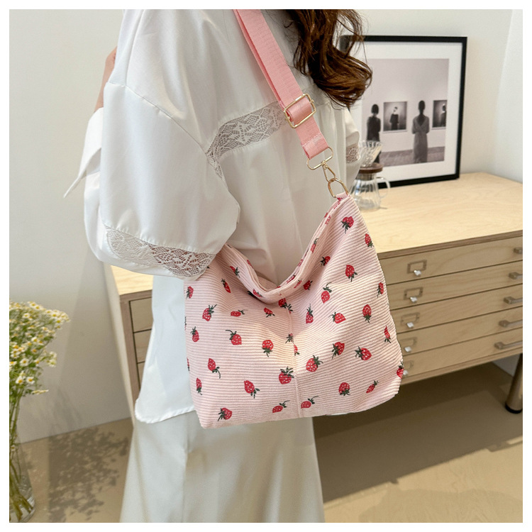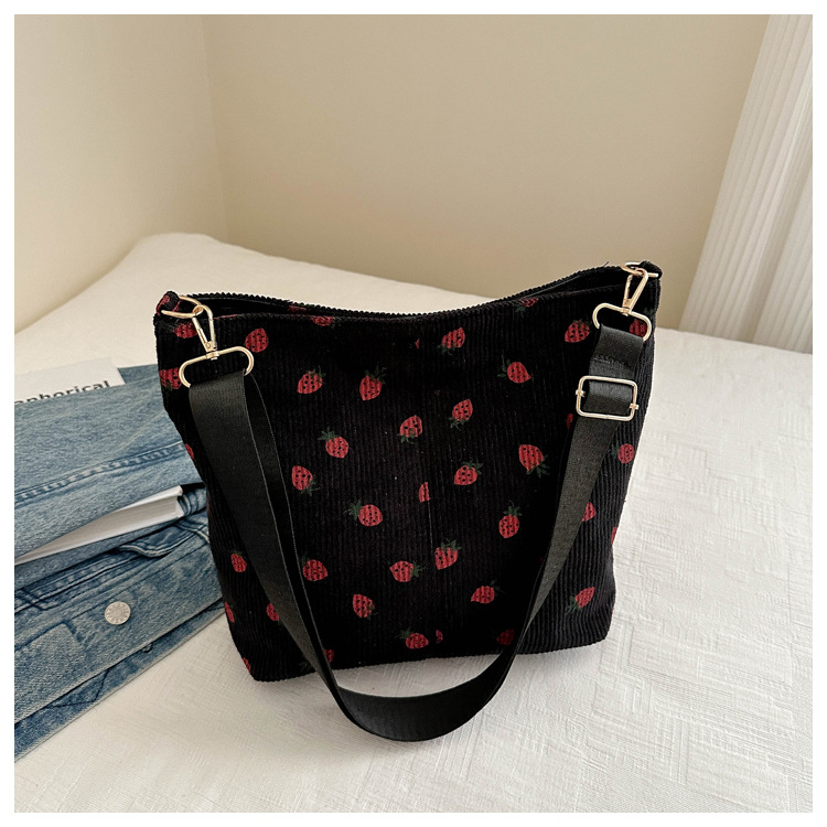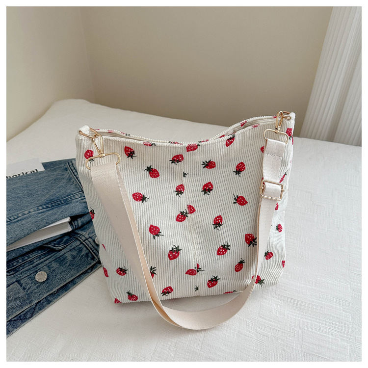 Bolsas de impresión de fresas populares de vellón mujeres coreanas de verano 2024 nuevo cross-border mochila de hombro bolsas de cubo