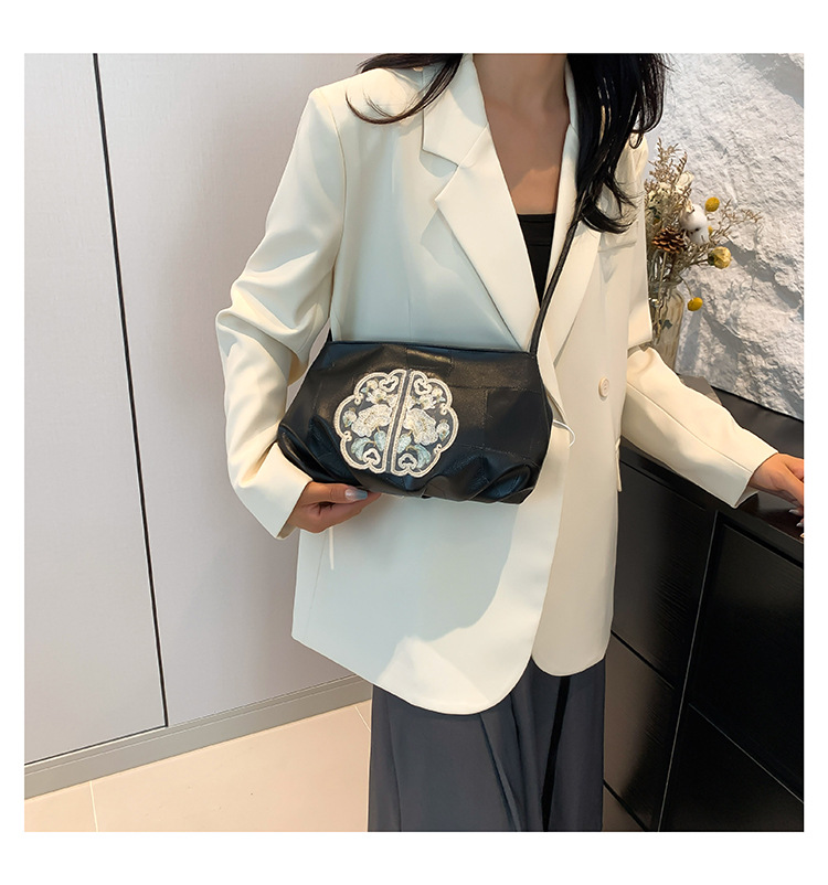 Nuevo estilo chino bordado bolso pequeño mujer 2024 nuevo plegado estilo extranjero empalme viaje al trabajo mochila de hombro