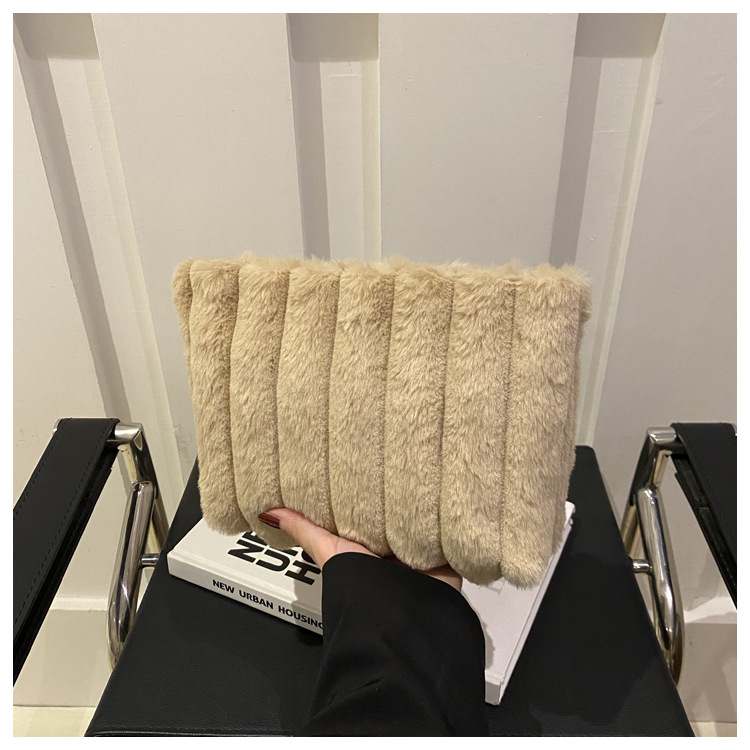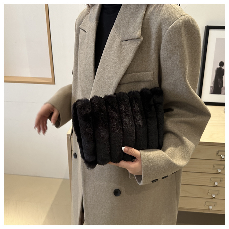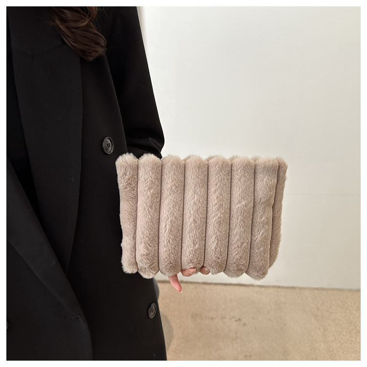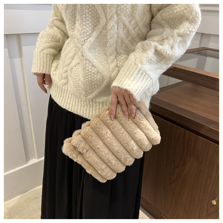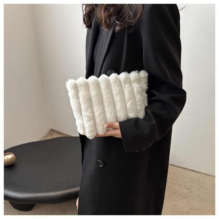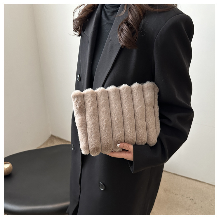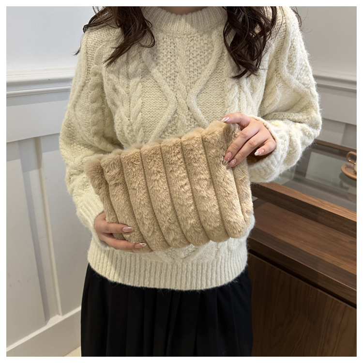 Bolso de mano de felpa de otoño e invierno de gran capacidad 2024 otoño e invierno nuevo estilo de moda y estilo extranjero bolso femenino de lana textura pequeño cuadrado