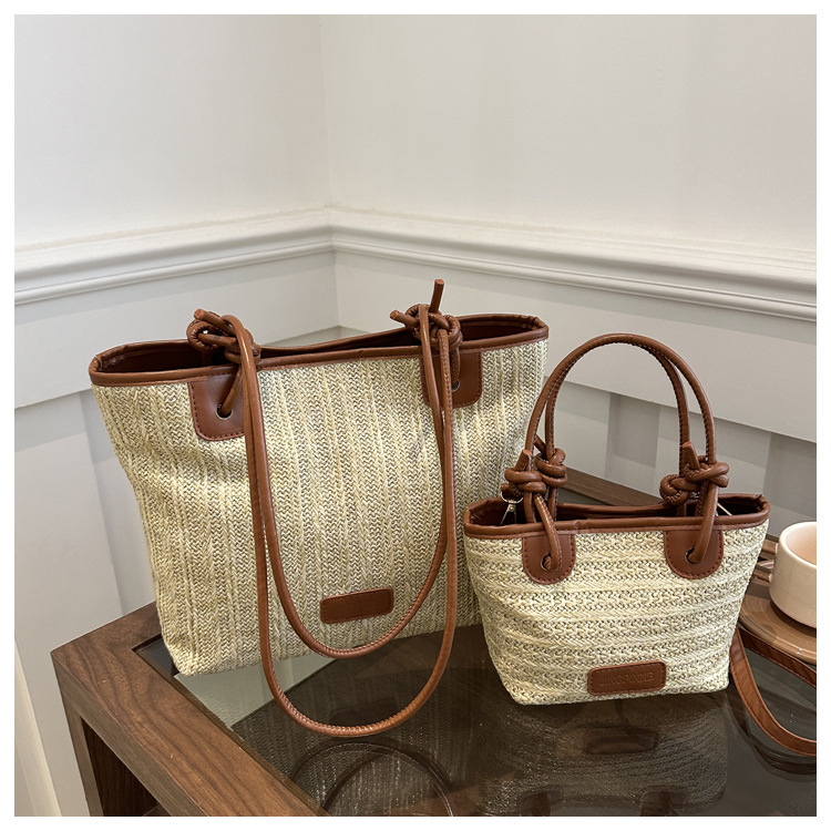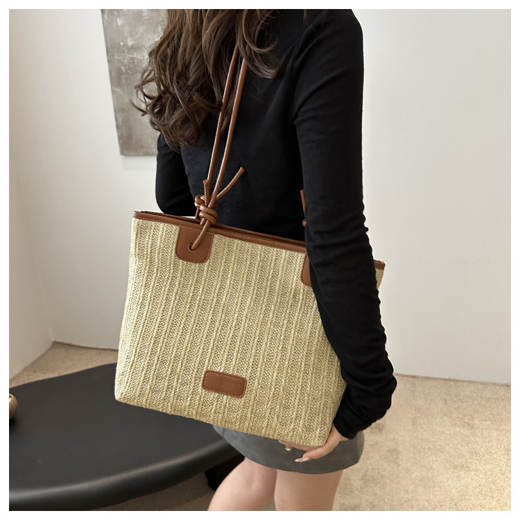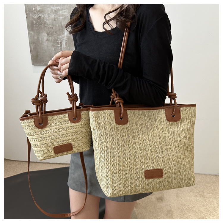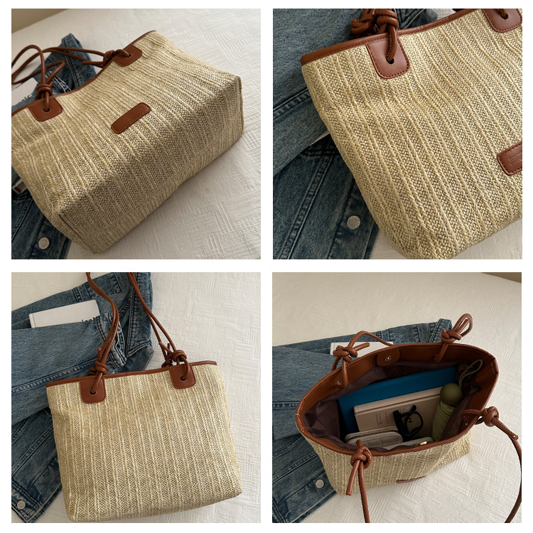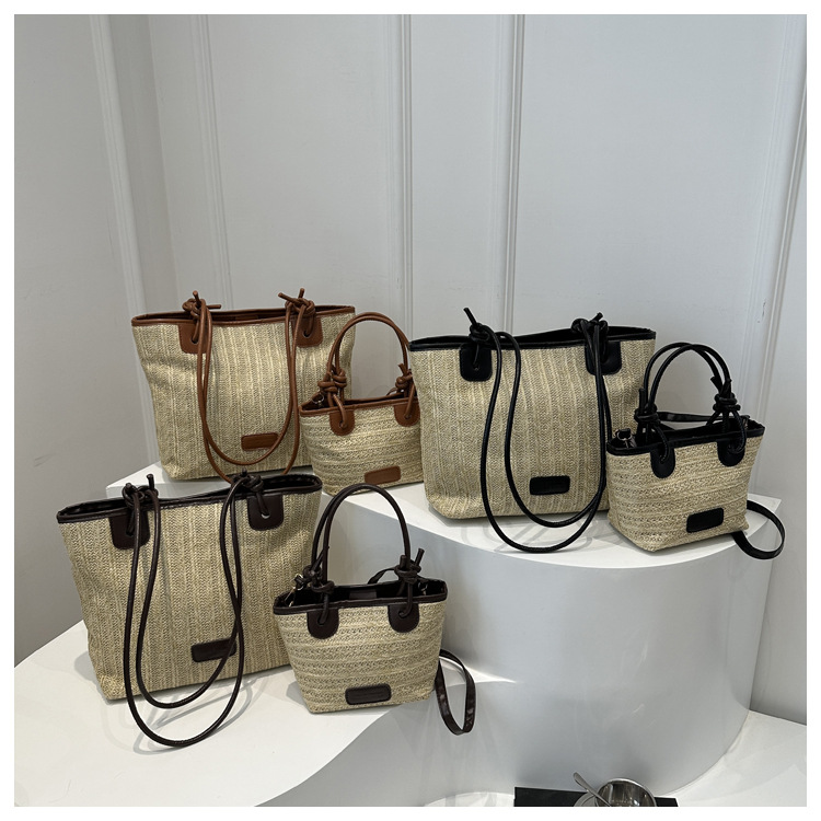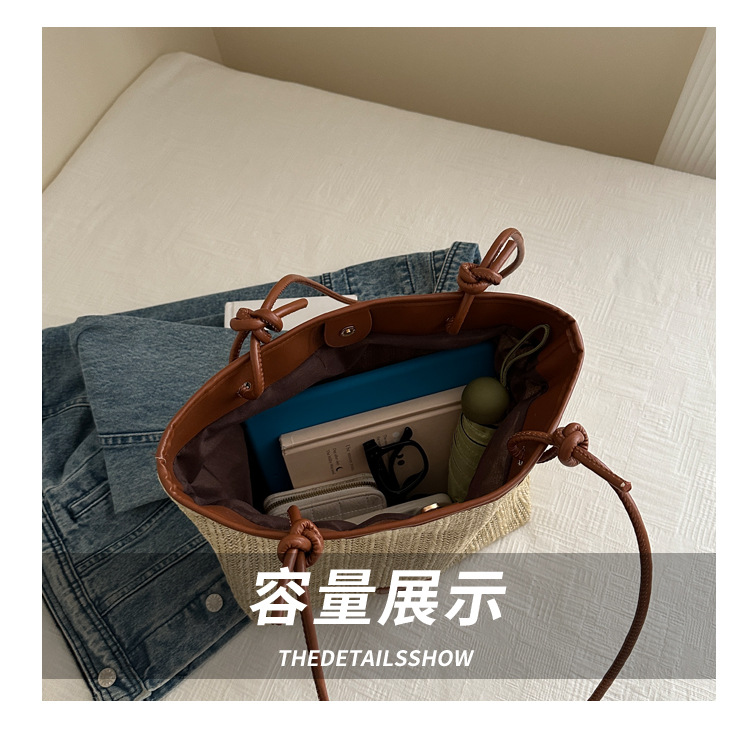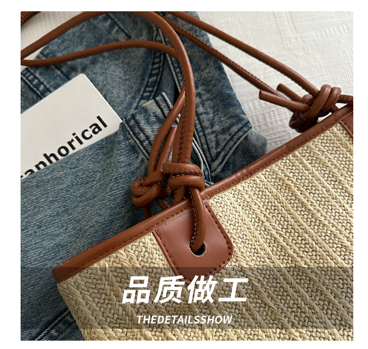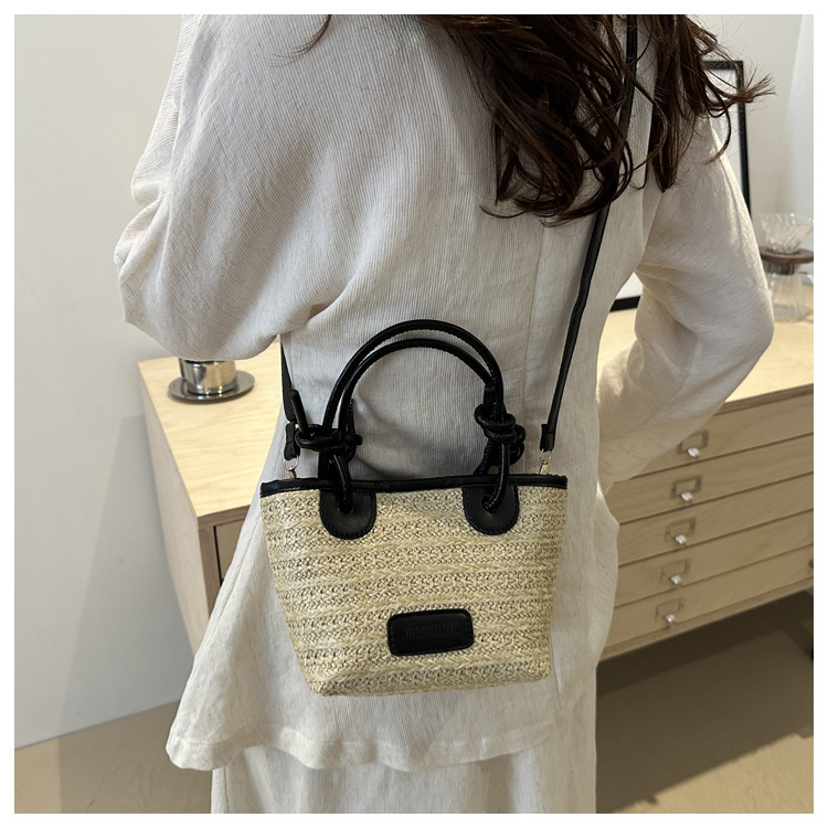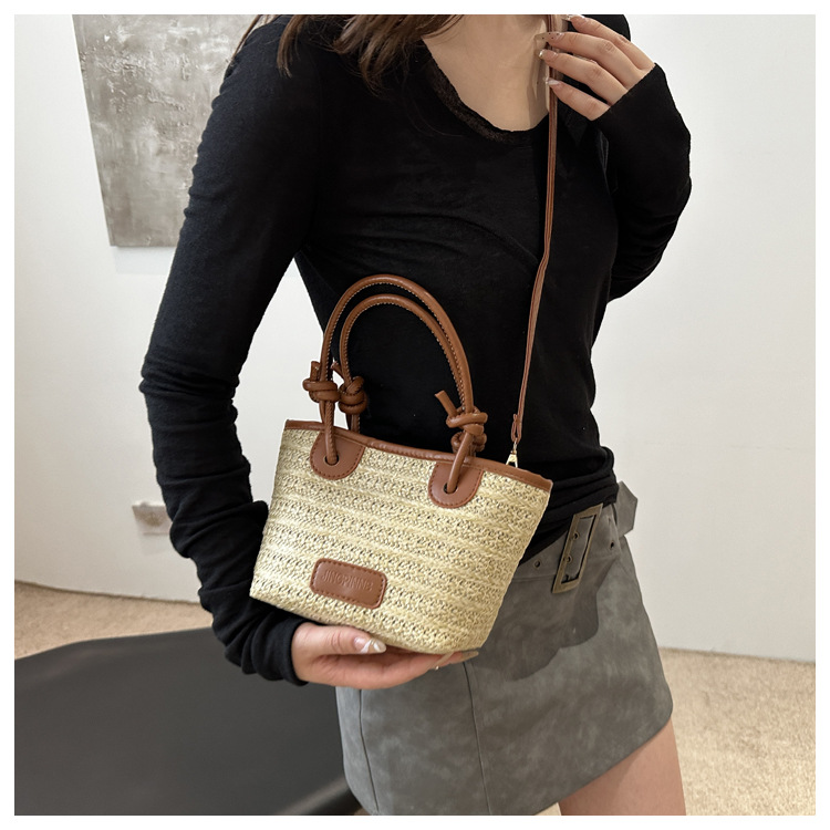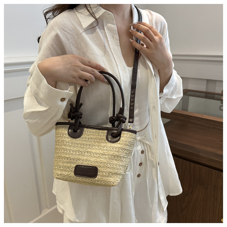 Bolsa de paja tejida para mujeres 2024 verano nuevo mochila portátil versátil bolso de balde de agua de estilo exterior bolso de trabajo