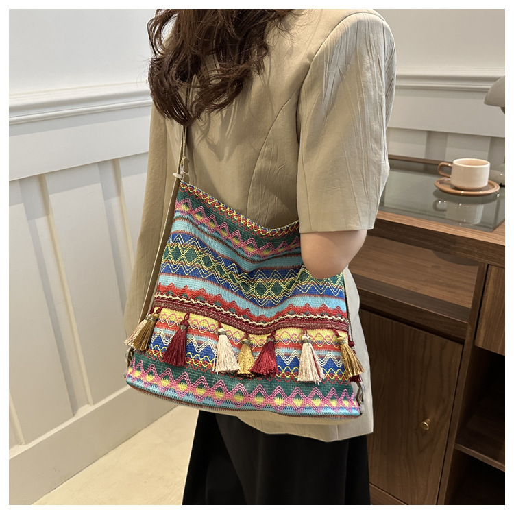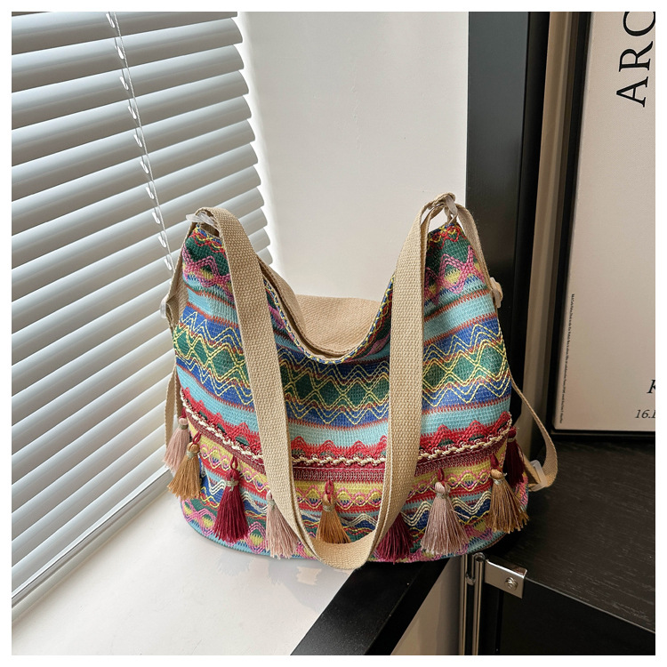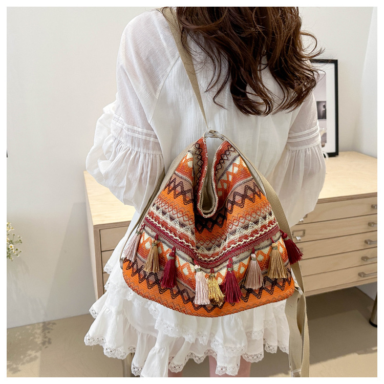 Gran capacidad de alto valor de la cara nacional estilo bolso de mochila para mujeres 2024 nueva moda amplio cinturón de hombro de hombro único bolso de flujo