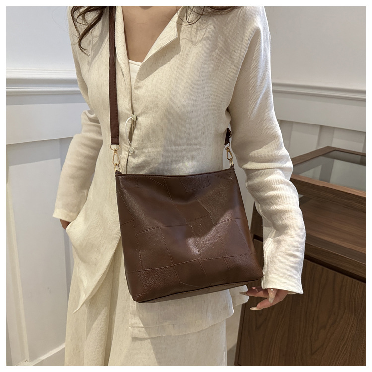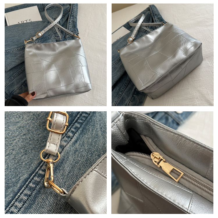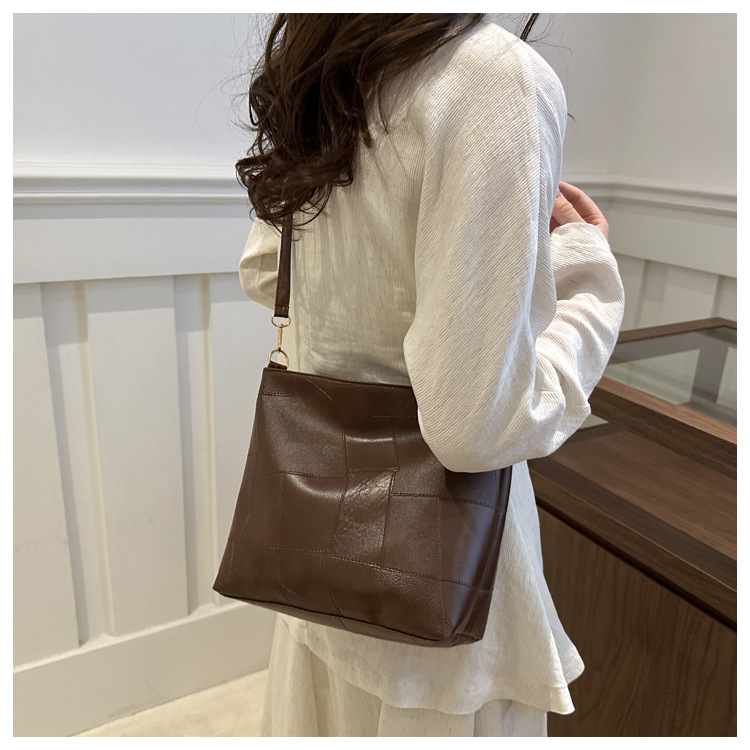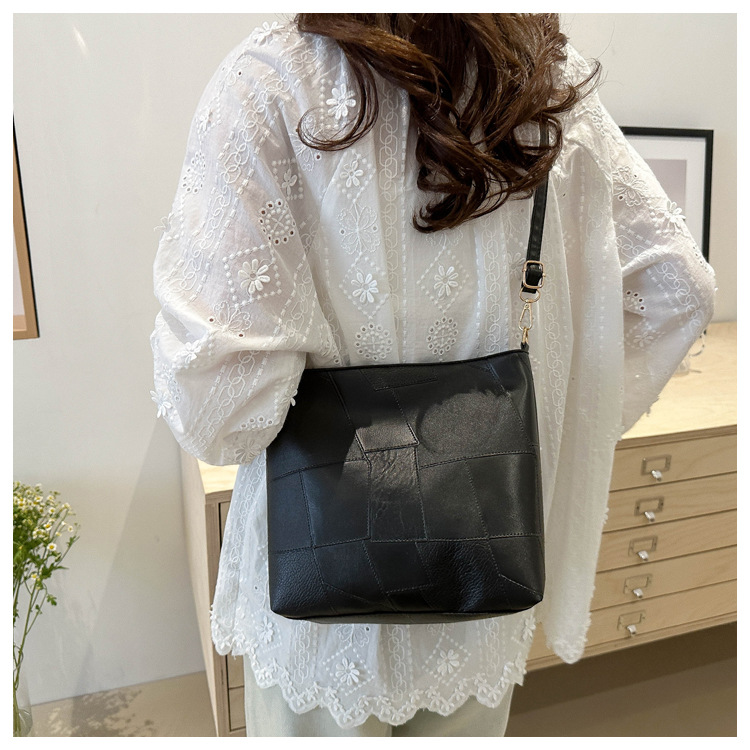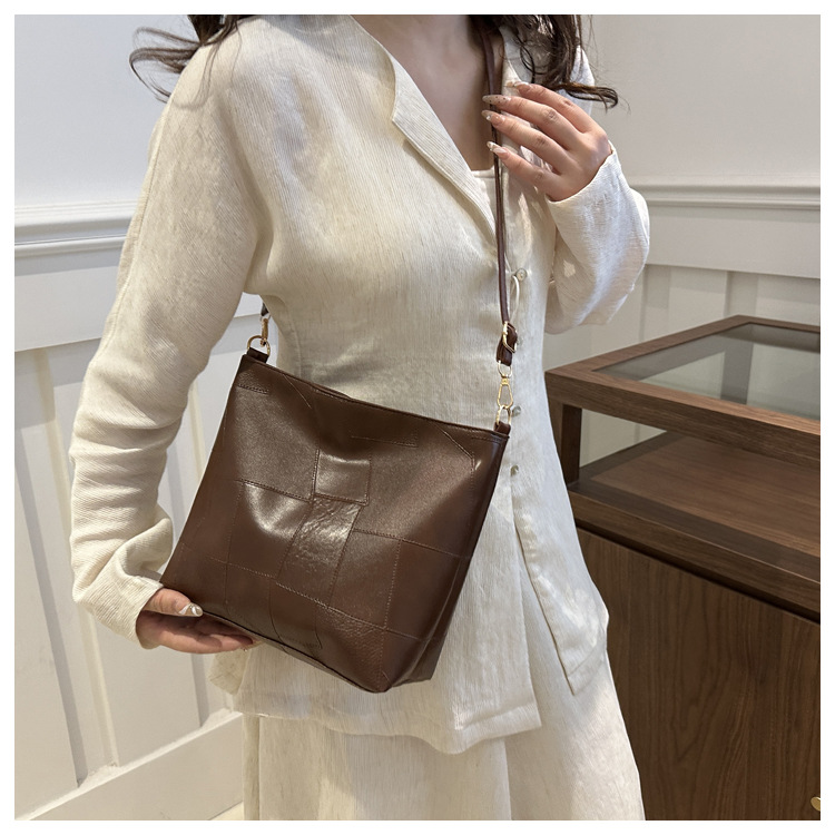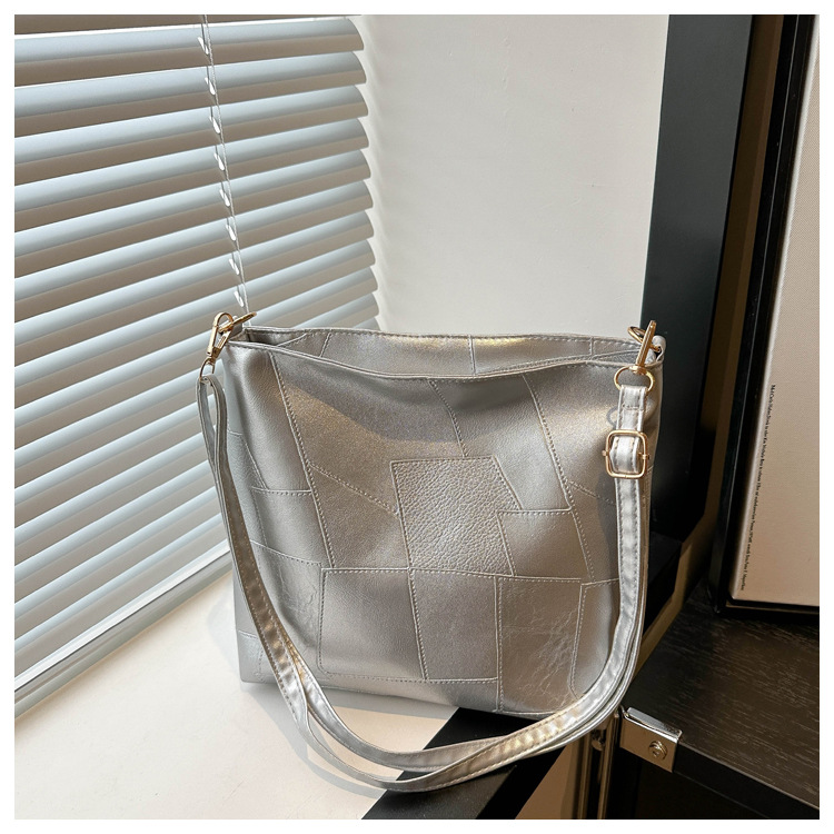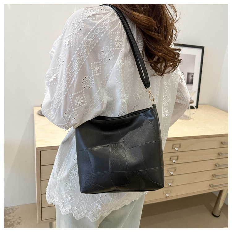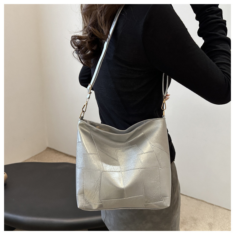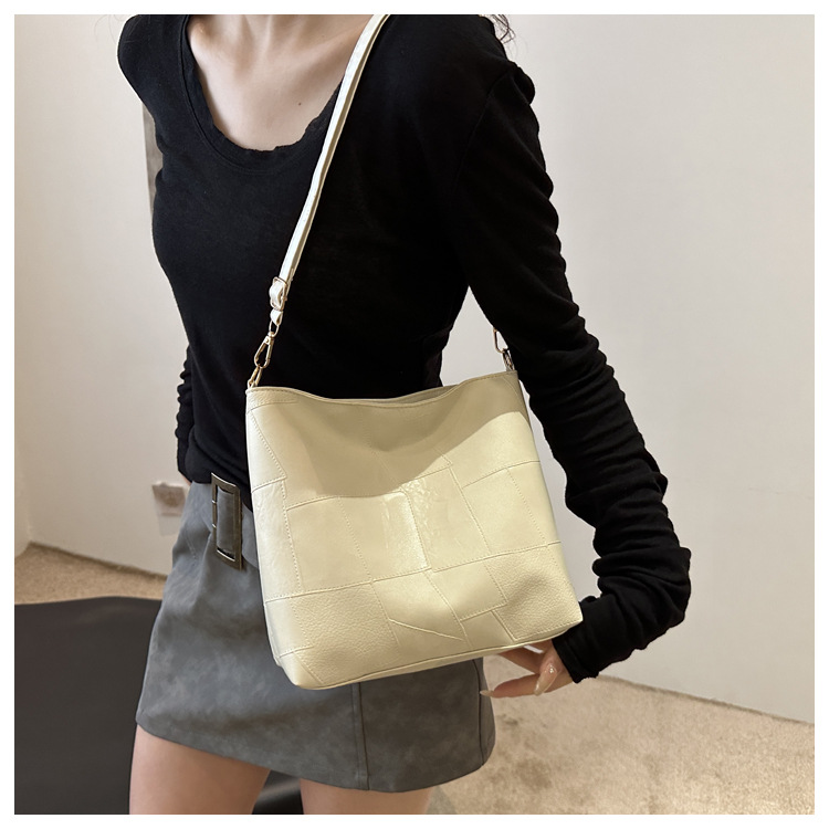 Bolso de alta sensación para mujeres nuevo verano 2024 moda extranjera empalme bolso de hombro de gran capacidad bolso de cubo de agua