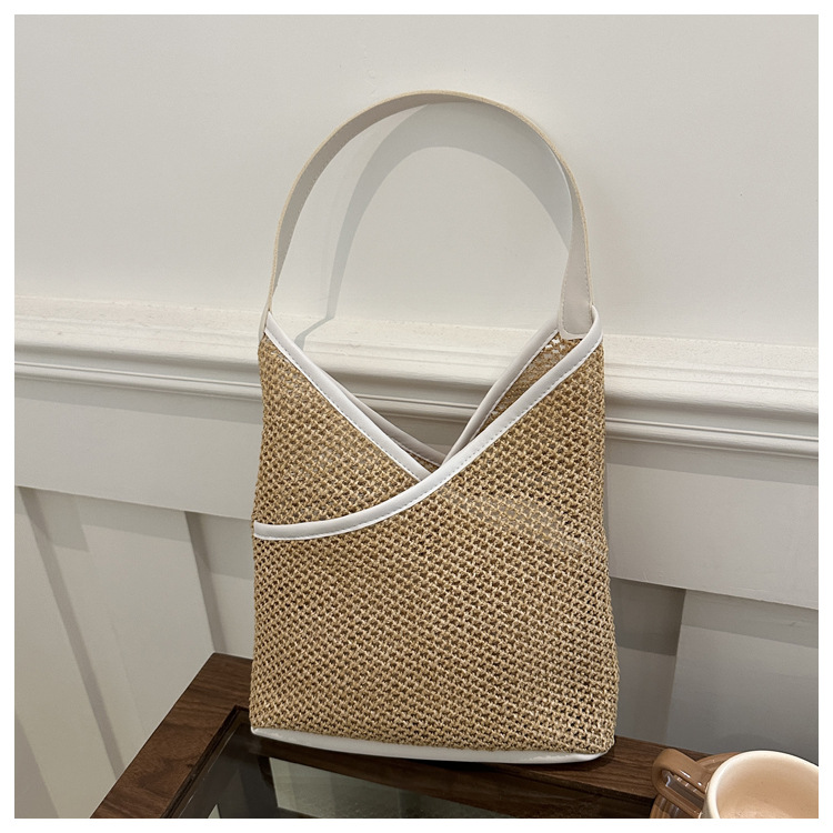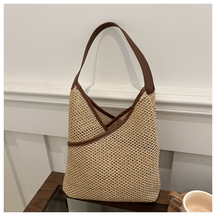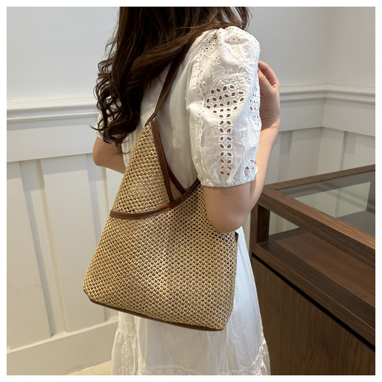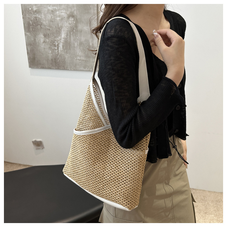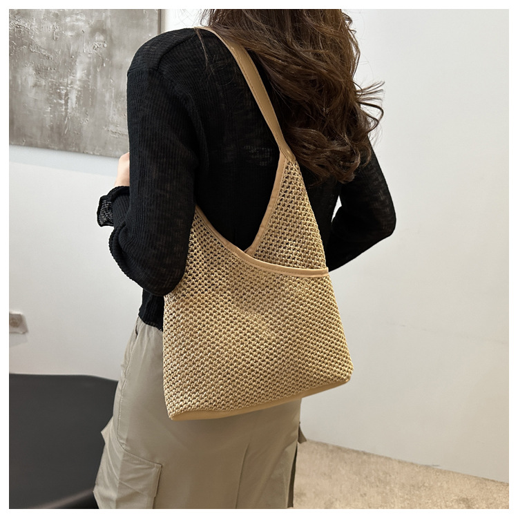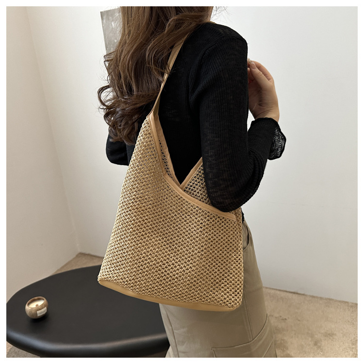 Popular bolsa de tejido de gran capacidad para mujeres 2024 verano nueva bolsa de hombro universal bolsa de viaje de moda