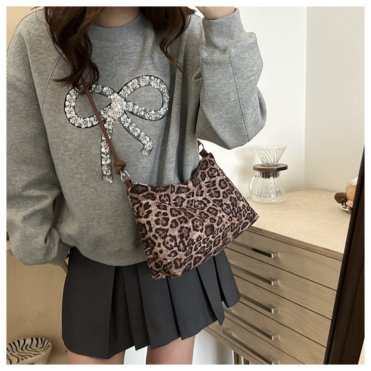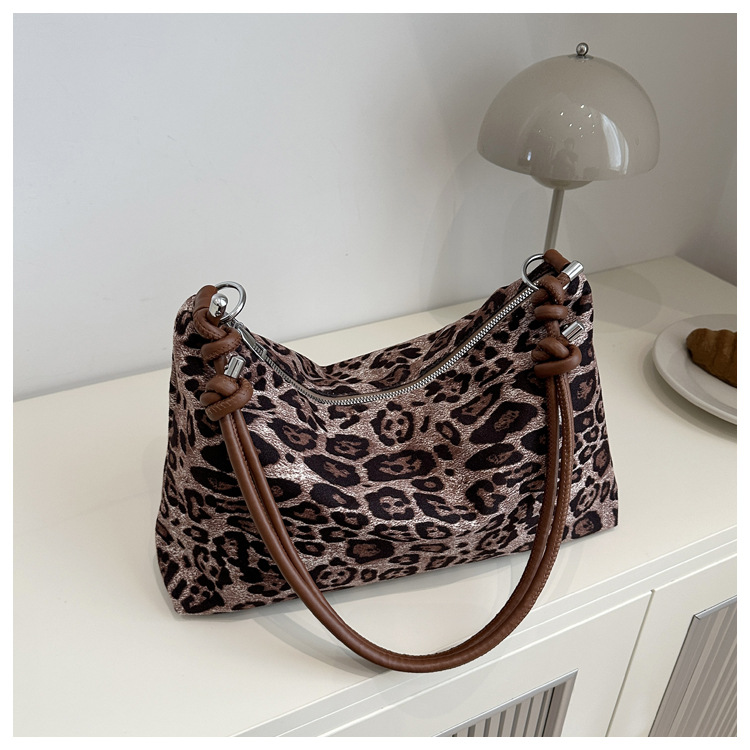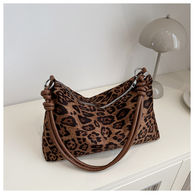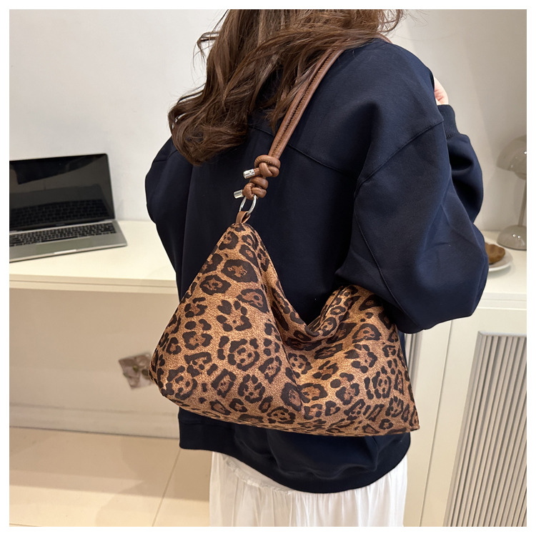 Bolsa de estilo retro para mujeres 2024 nueva moda de invierno estampado de leopardo de gran capacidad bolso de hombro para trabajar bolso de mujer