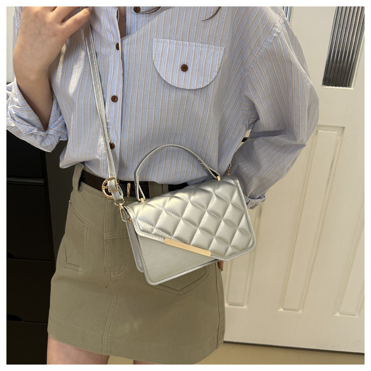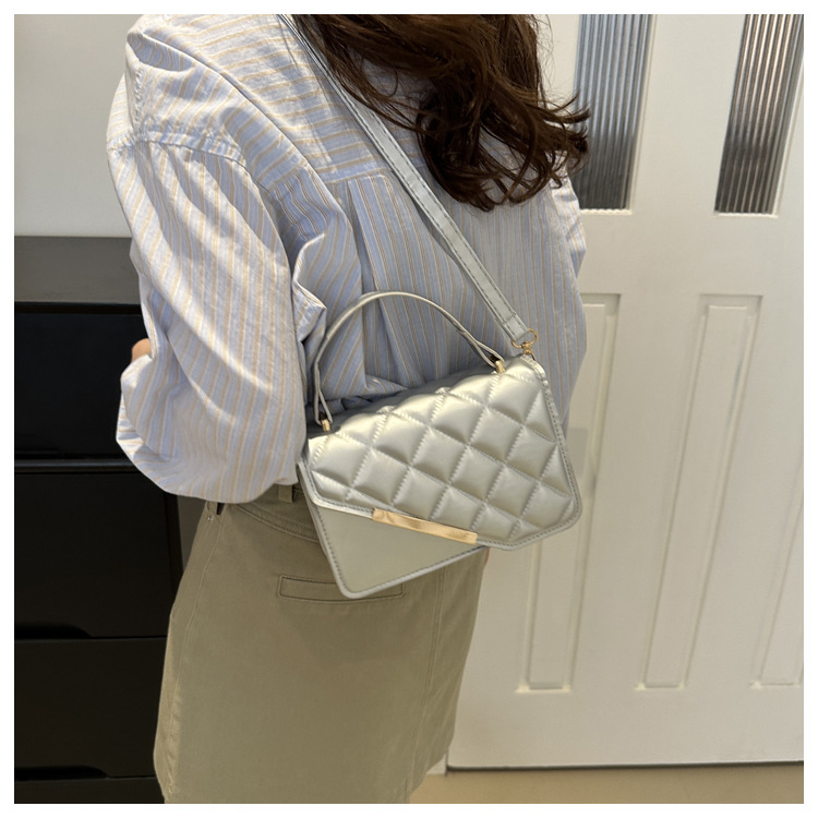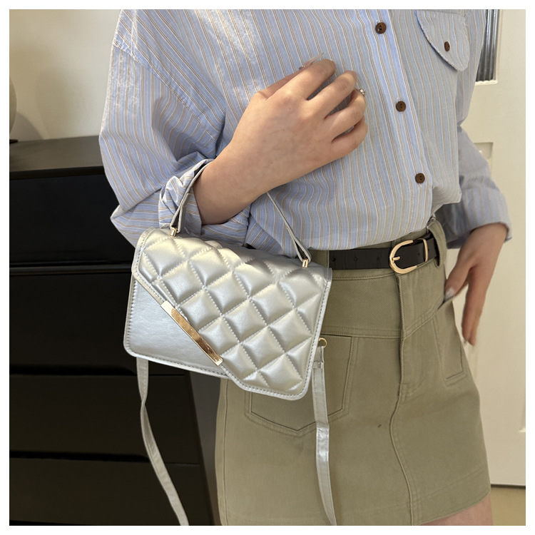 Linger retro bolso mujer 2024 nuevo bolso de hoja de aluminio inclinado bolso de mano pequeña bolsa de hombro coreana temperamento universal bolso de hombro