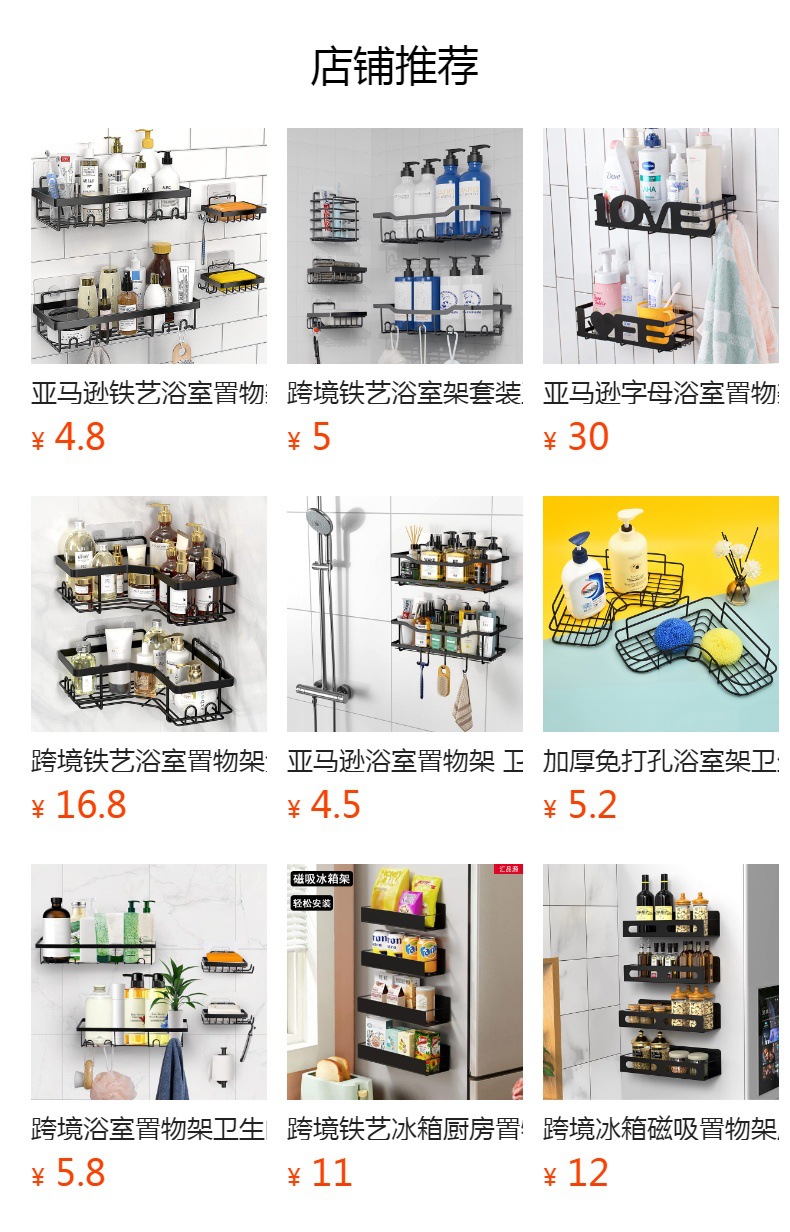 Rack de almacenamiento de baño de hierro sin perforaciones transfronterizas baño artículos de tocador montados en la pared estante de almacenamiento de jabón
