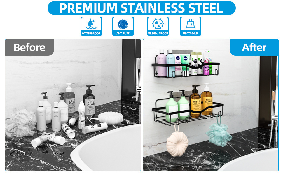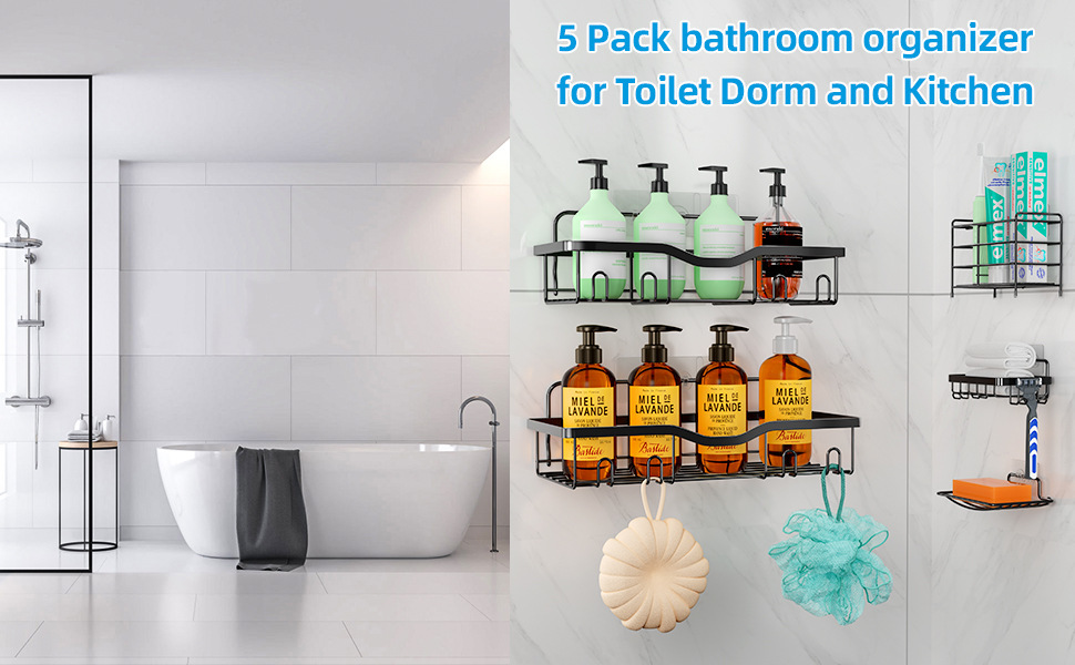 Amazon baño almacenamiento rack baño ponche libre jabón ducha rack artículos de tocador rack
