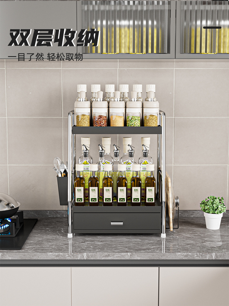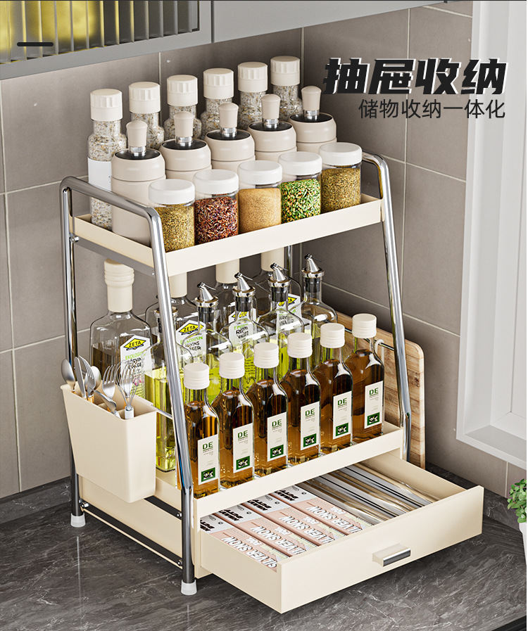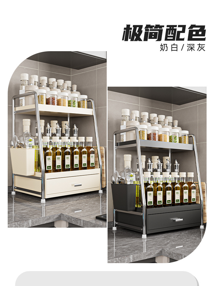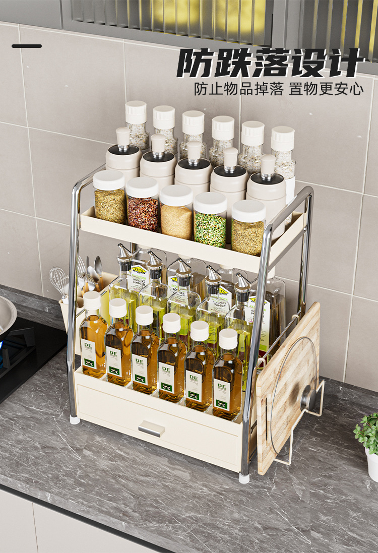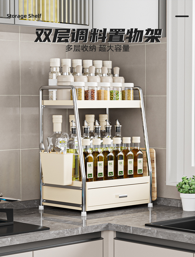 Estante de cocina de estilo crema Estante de condimento de encimera Condimento multicapa Estante de almacenamiento de vinagre de salsa de sal y aceite doméstico
