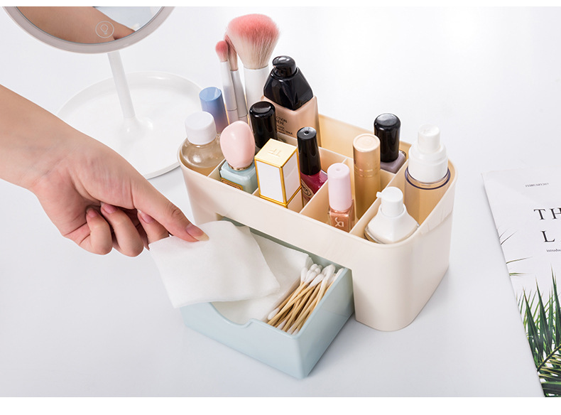 Caja de almacenamiento de cosméticos de escritorio lápiz labial rack tocador acrílico chica cuidado de la piel acabado cajón de almacenamiento de joyas