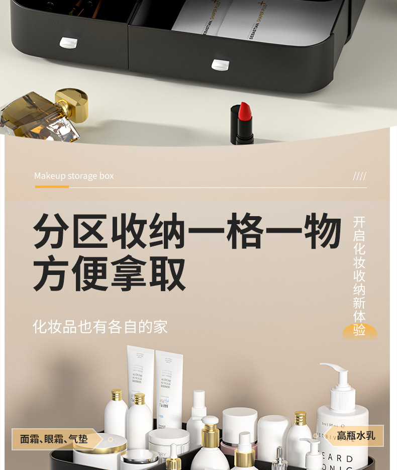 Red en línea con caja de almacenamiento de cosméticos transparentes a prueba de polvo, mesa de tocador, caja de almacenamiento de lápiz labial de gran capacidad para productos de cuidado de la piel