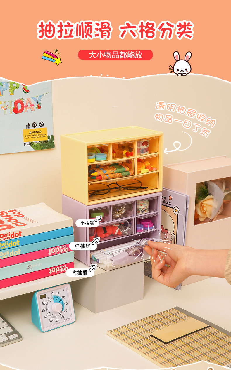 INS estilo seis nueve rejilla caja de almacenamiento dormitorio niñas escritorio a prueba de polvo cajón papelería joyería organización almacenamiento rack