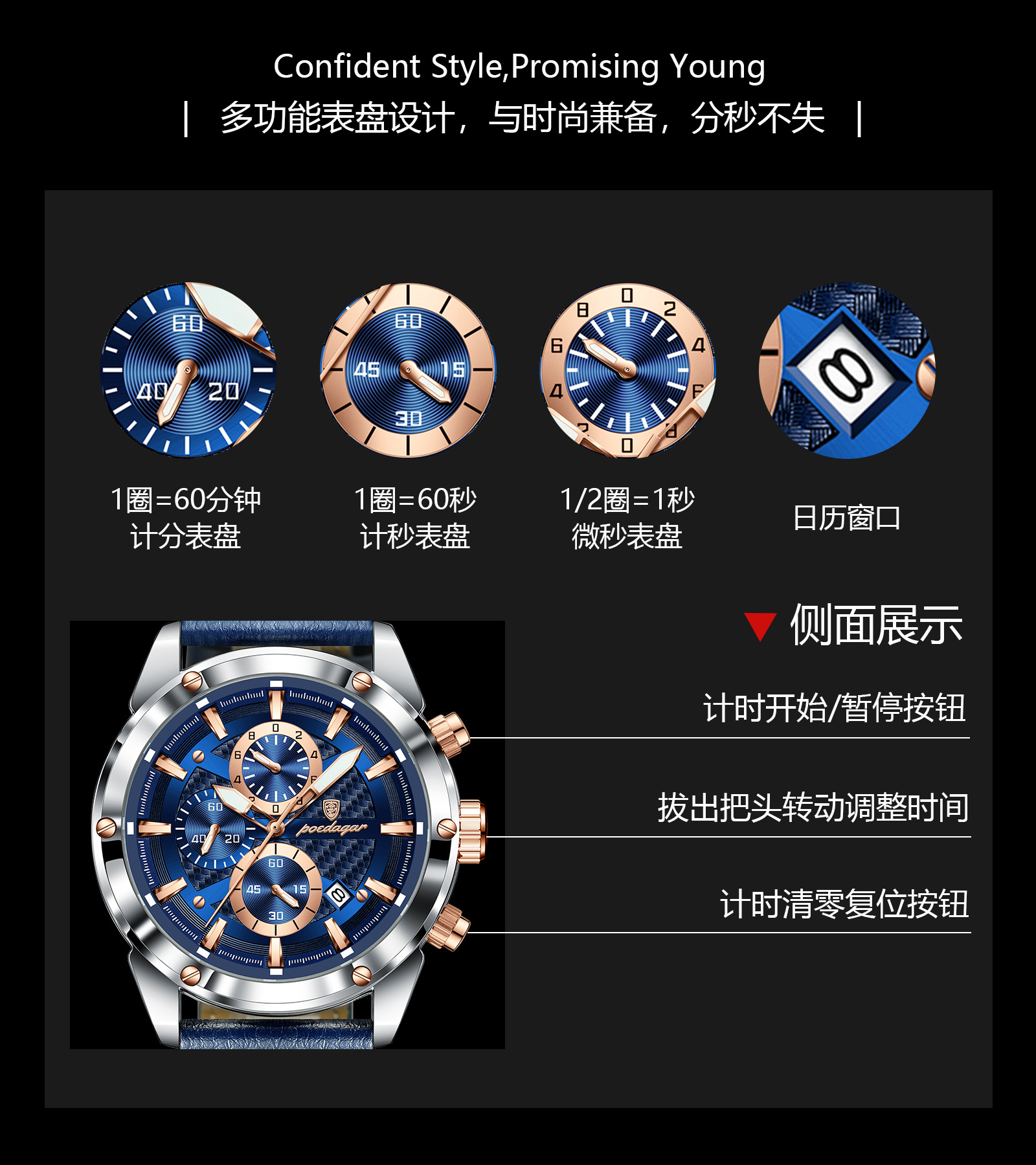 Relojes de la marca suiza, nuevos relojes para hombres, relojes de cuarzo luminosos multifuncionales, transmisión en vivo de estilo explosivo de comercio exterior, entrega de una pieza