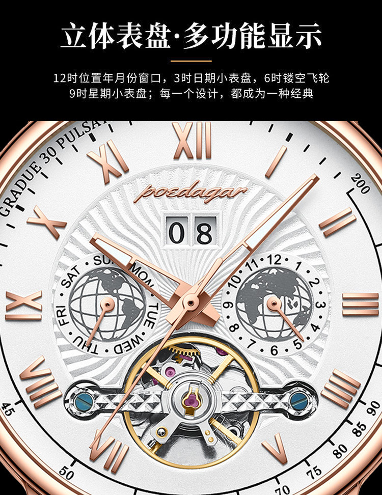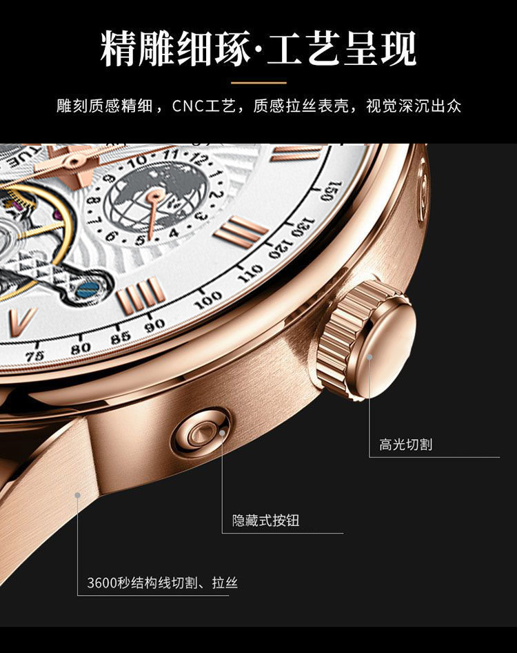 Marca suiza nuevo reloj mecánico para hombre, moda multifuncional, reloj de lujo, transmisión en vivo para hombre, estilo de explosión de comercio exterior, una generación
