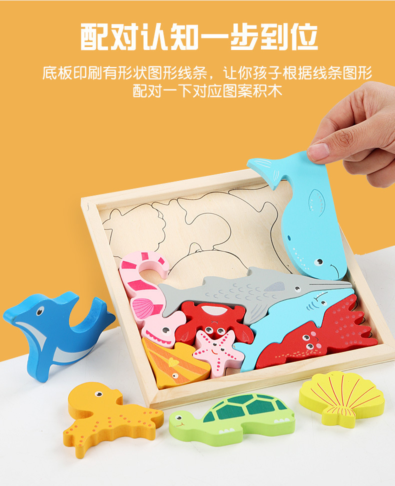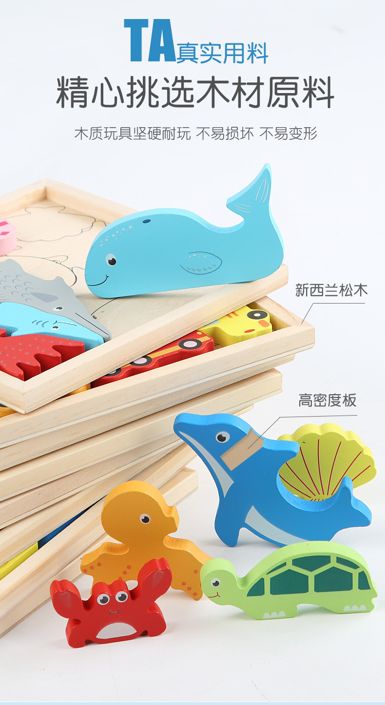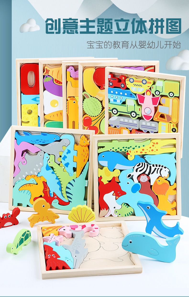 Dibujos animados transfronterizos animales niños madera 3d rompecabezas rompecabezas educación temprana jardín de infantes niño niña madera rompecabezas juguete