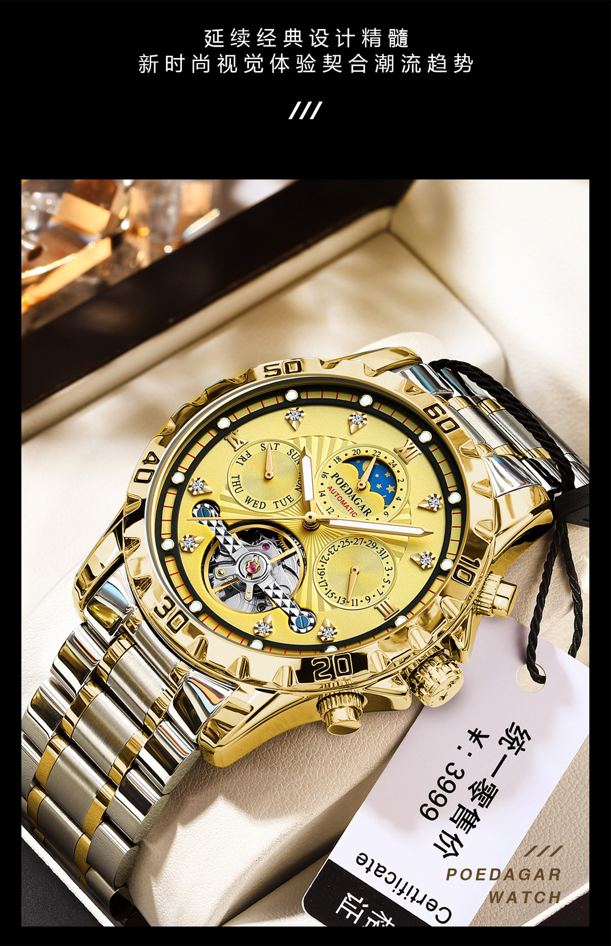 Reloj mecánico para hombre de la marca suiza, reloj multifuncional de lujo impermeable para hombre, transmisión en vivo, estilo explosivo de comercio exterior, entrega de una pieza