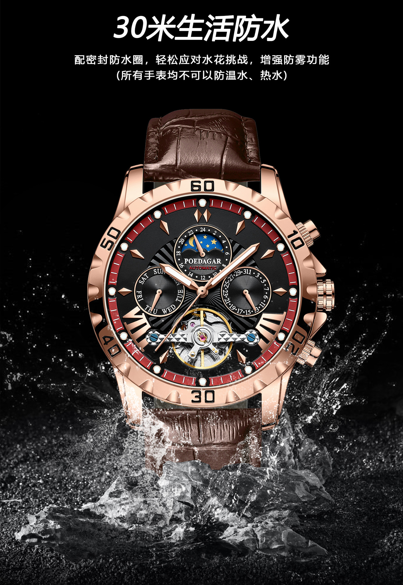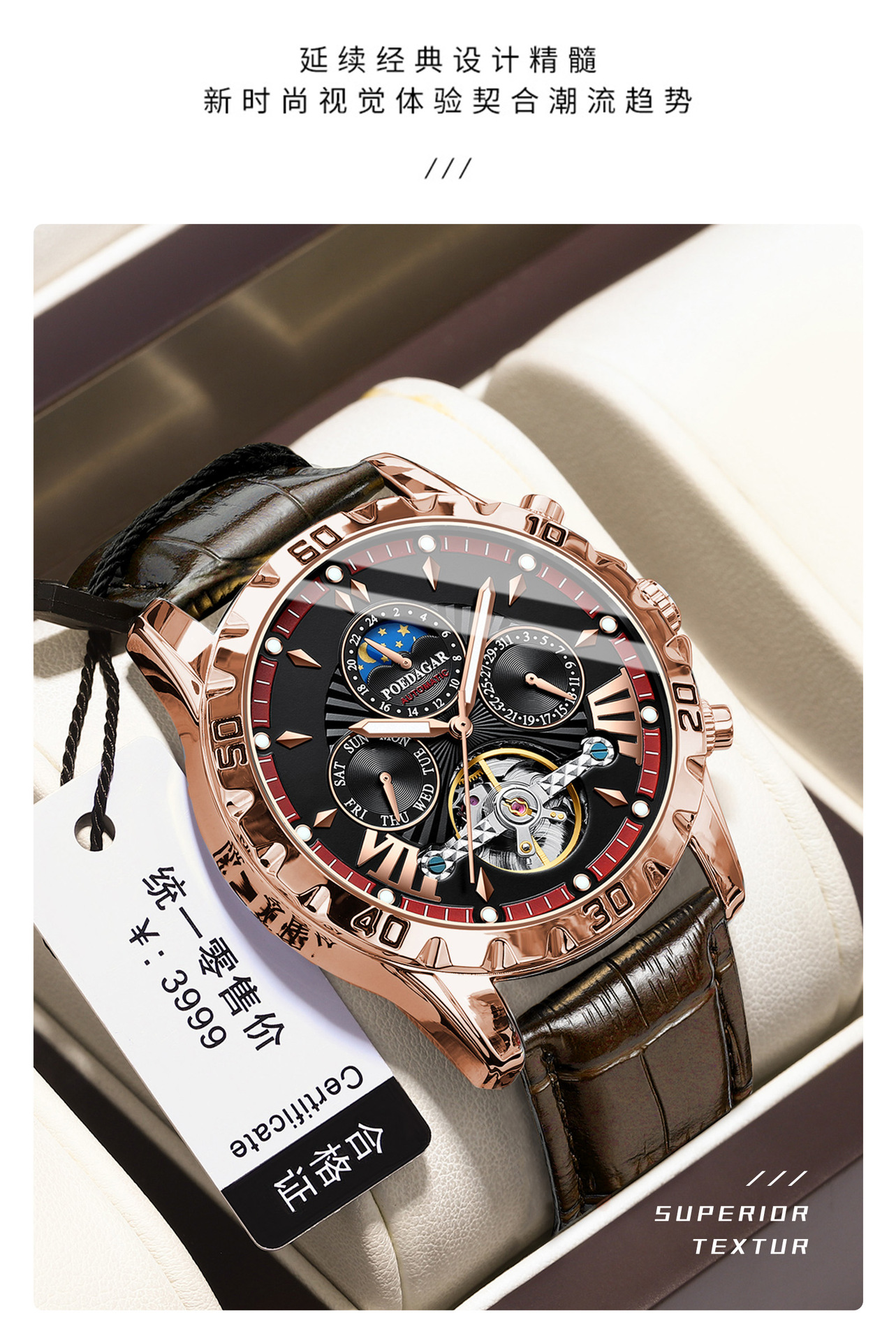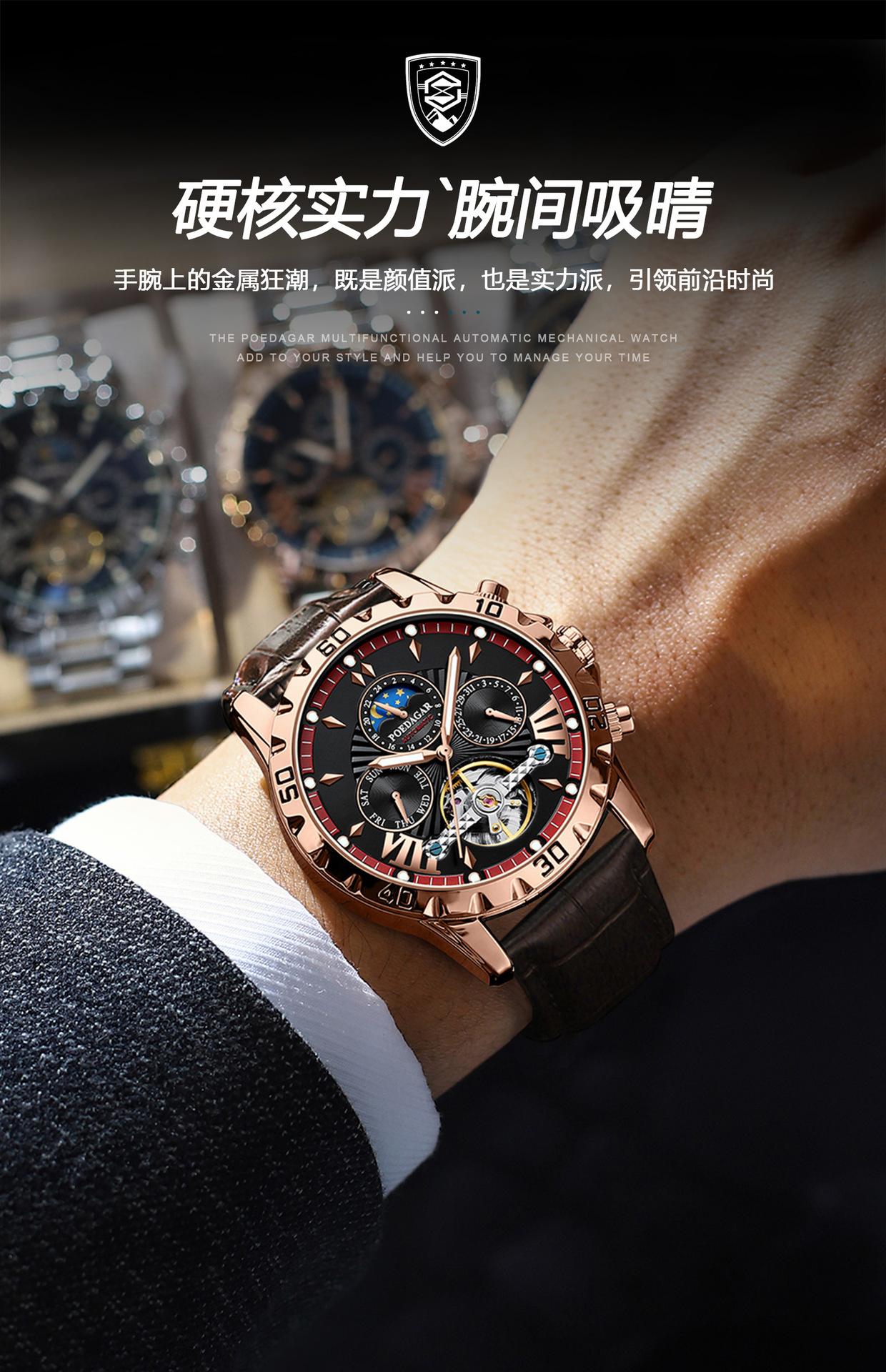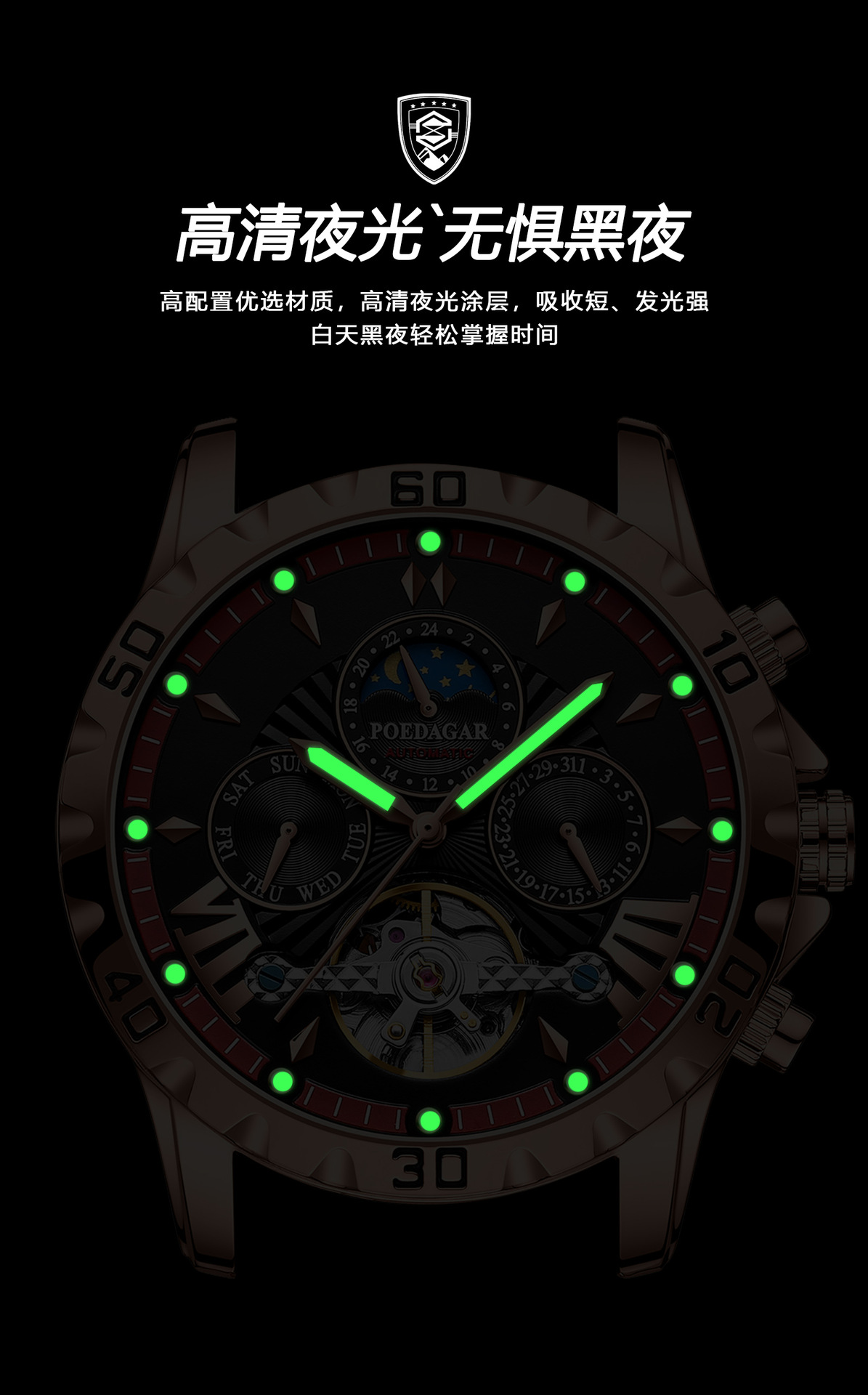 Marca suiza reloj mecánico automático para hombres nuevo reloj luminoso impermeable transmisión en vivo comercio exterior estilo explosivo entrega de una pieza