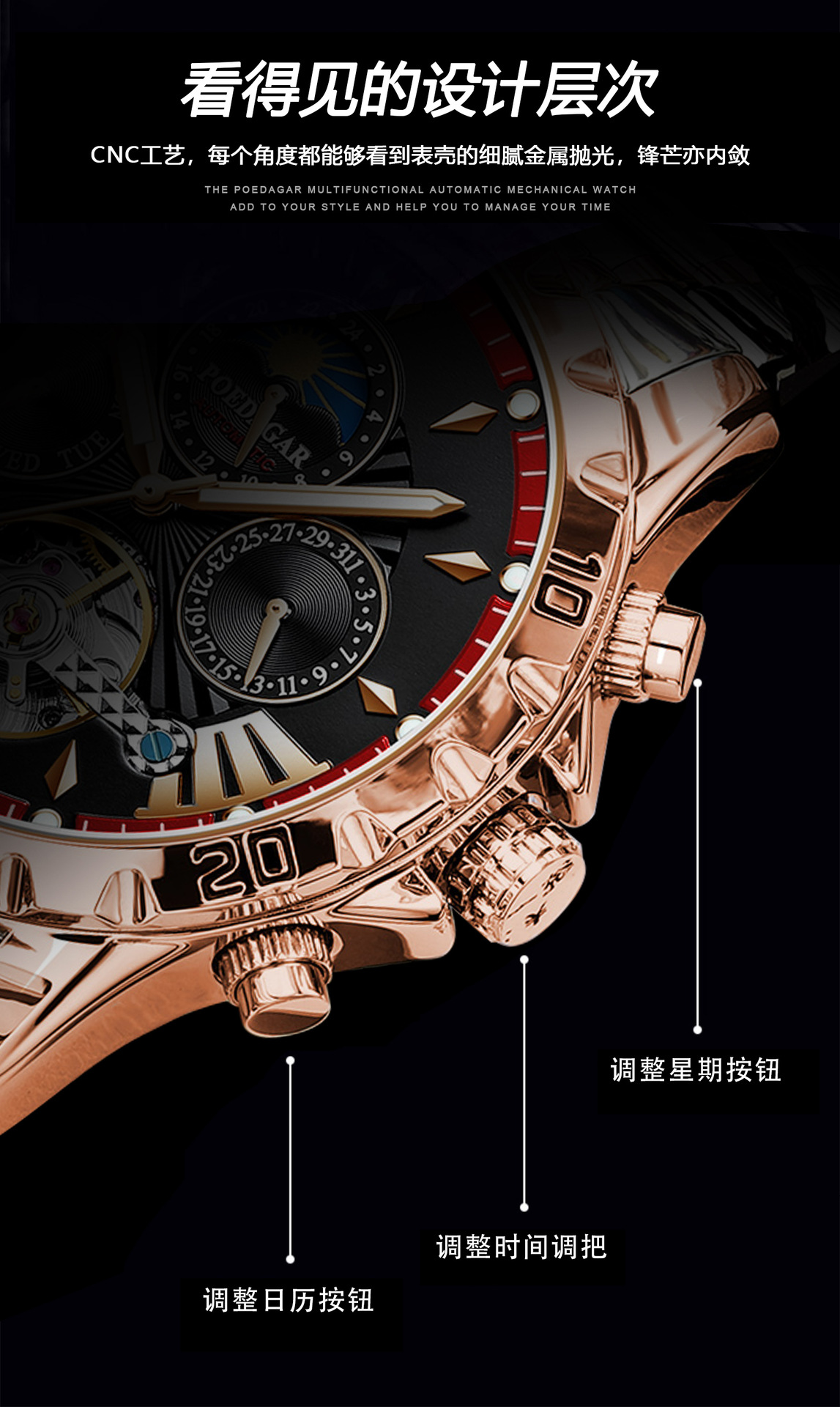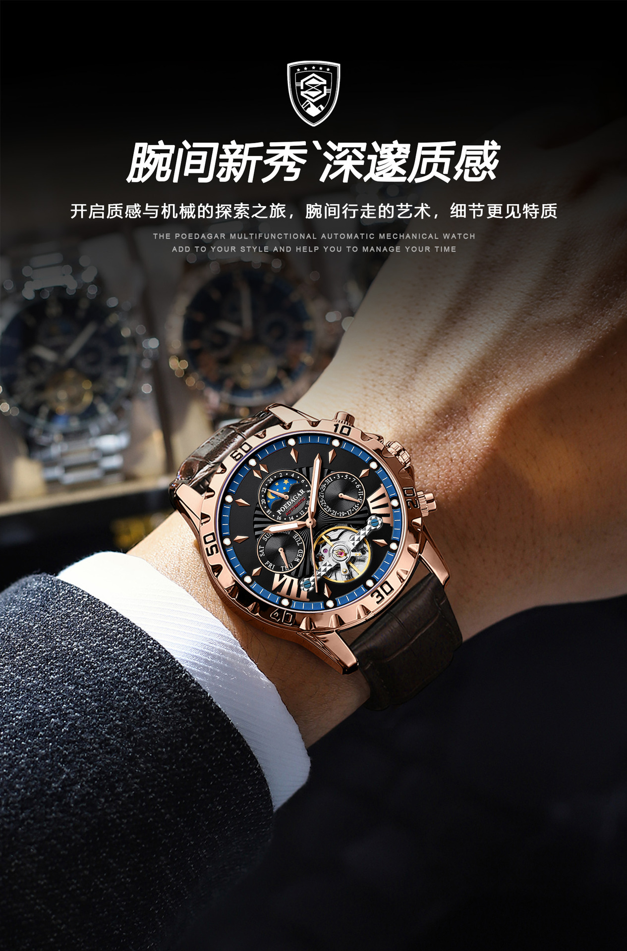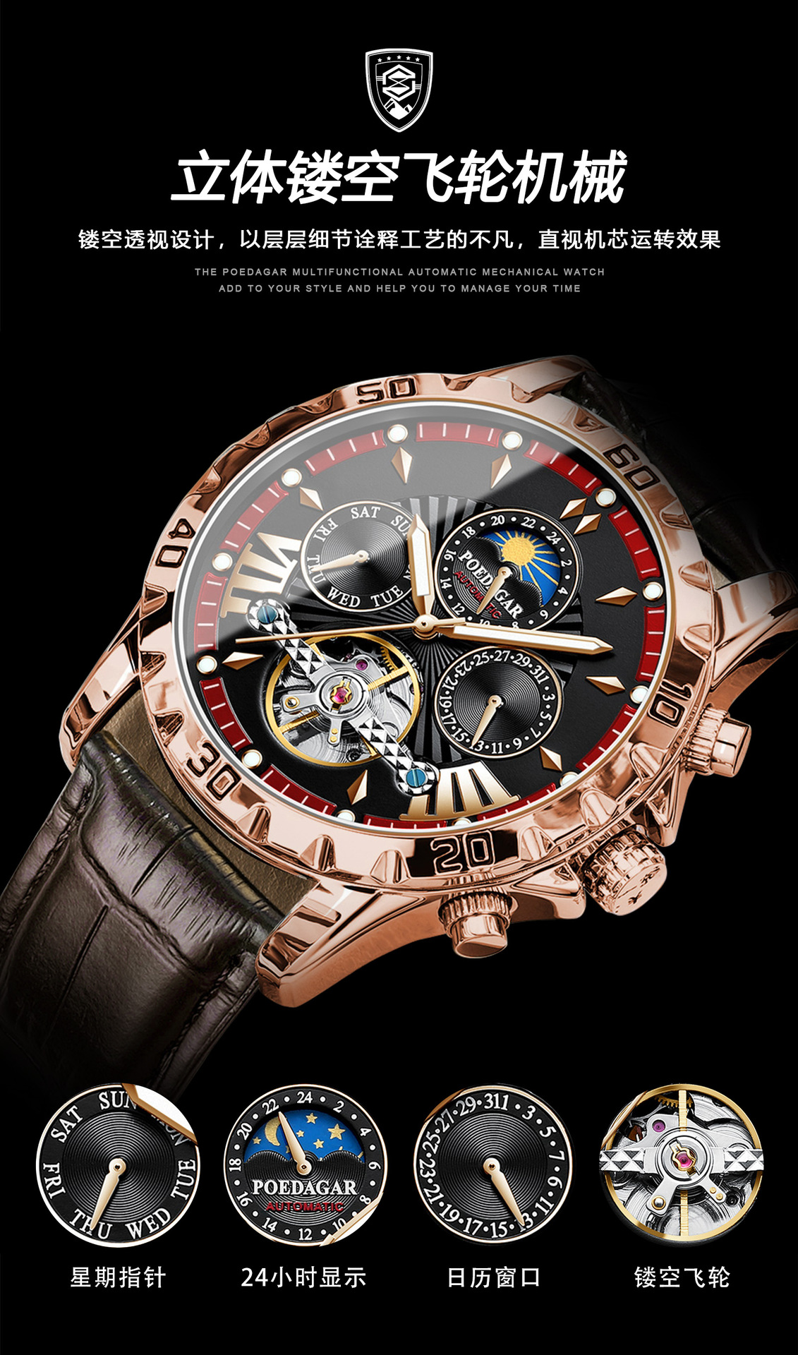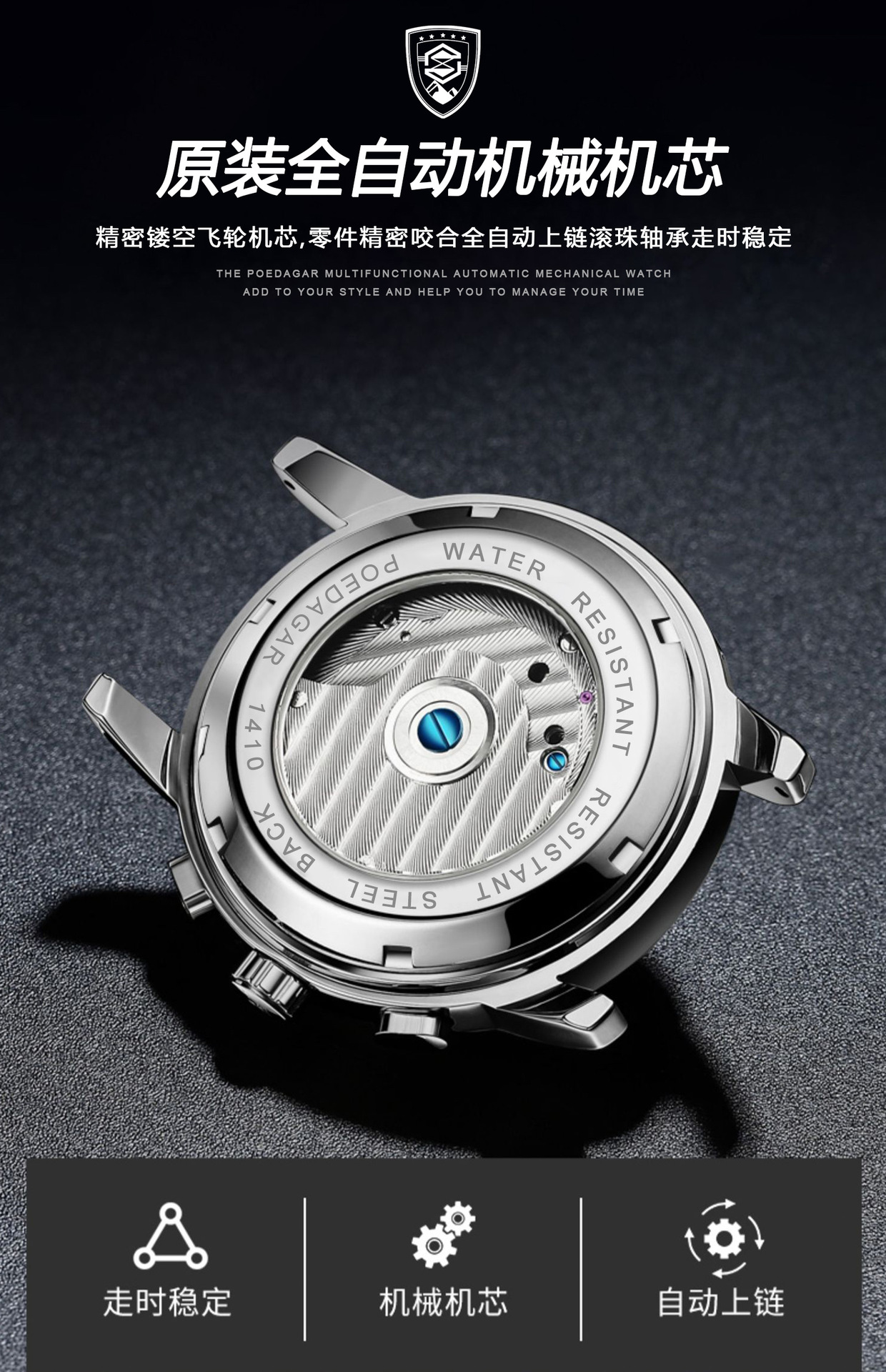 Marca suiza reloj mecánico automático para hombres nuevo reloj luminoso impermeable transmisión en vivo comercio exterior estilo explosivo entrega de una pieza