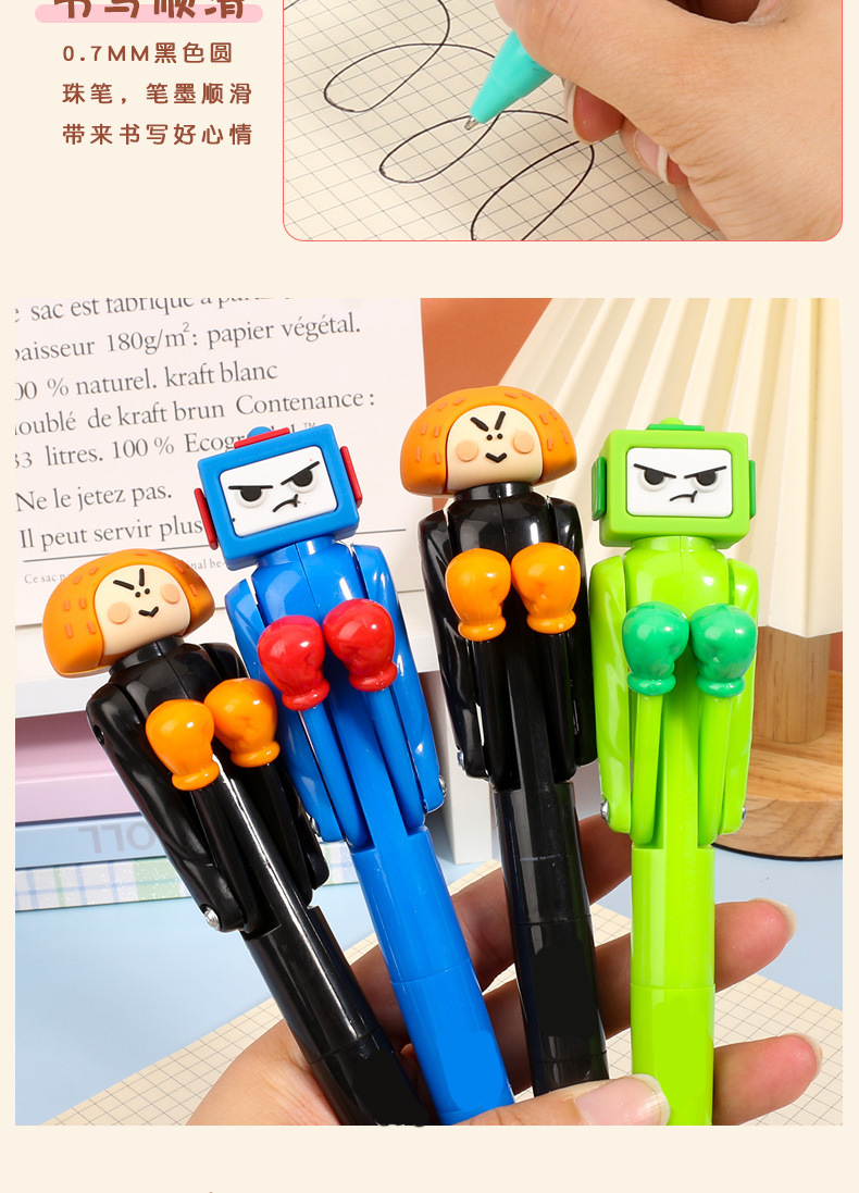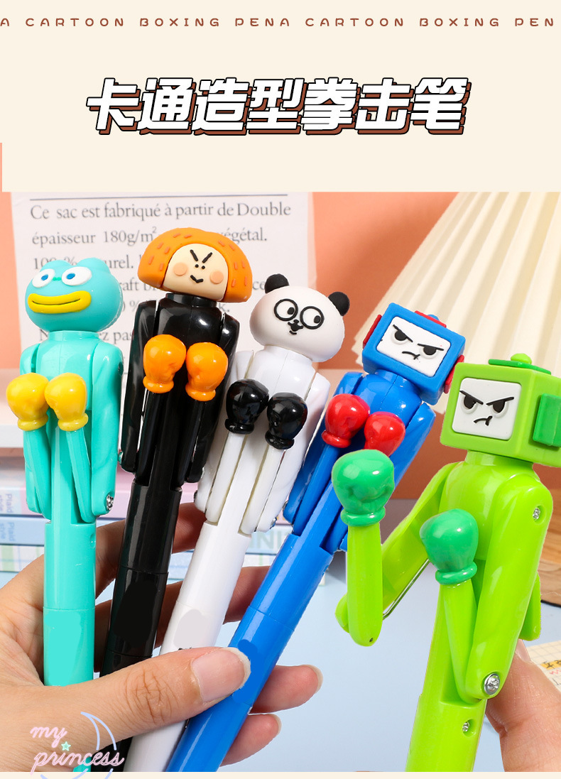 Tiktok Venta caliente divertido boxeo pluma gel pluma de dibujos animados divertido empuje lindo Escuela Primaria estudiante descompresión bolígrafo