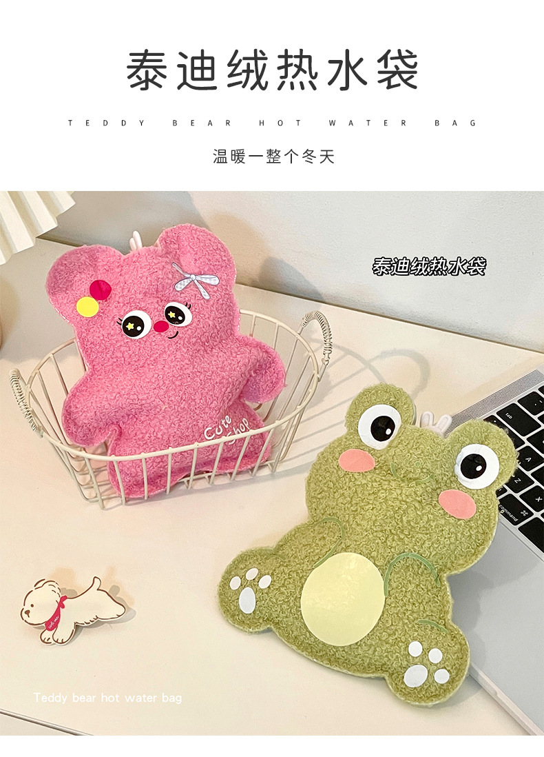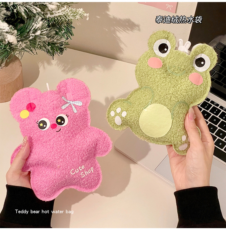 Oso de peluche de dibujos animados bolsa de agua caliente inyección de agua terciopelo de peluche pequeño calentador de mano de estudiante portátil lindo bolsa de agua caliente