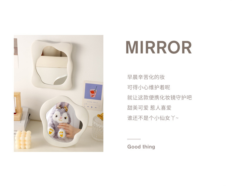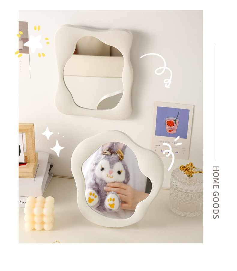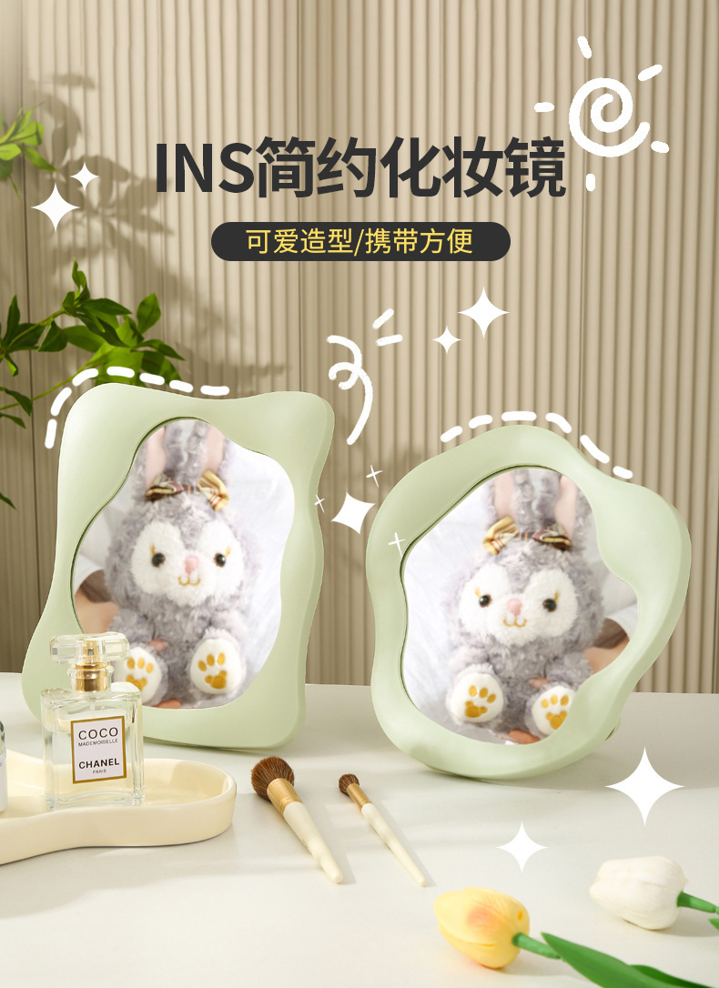 Espejo de maquillaje de escritorio ins Espejo de princesa espejo de dormitorio de estudiantes espejo plano con soporte irregular espejo portátil simple