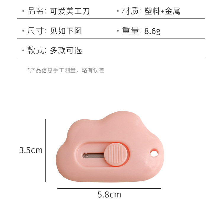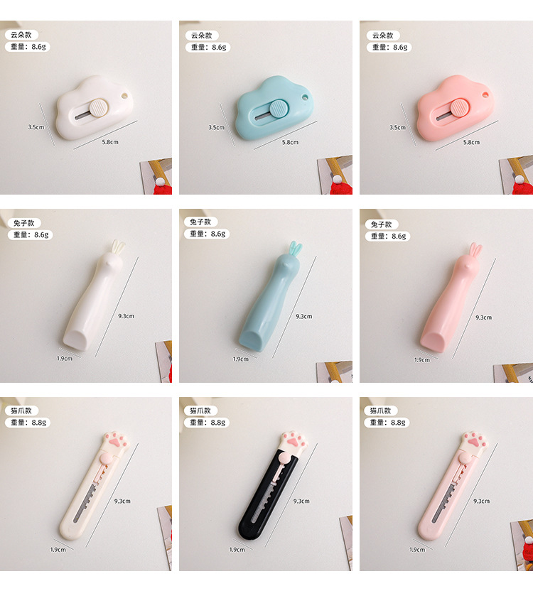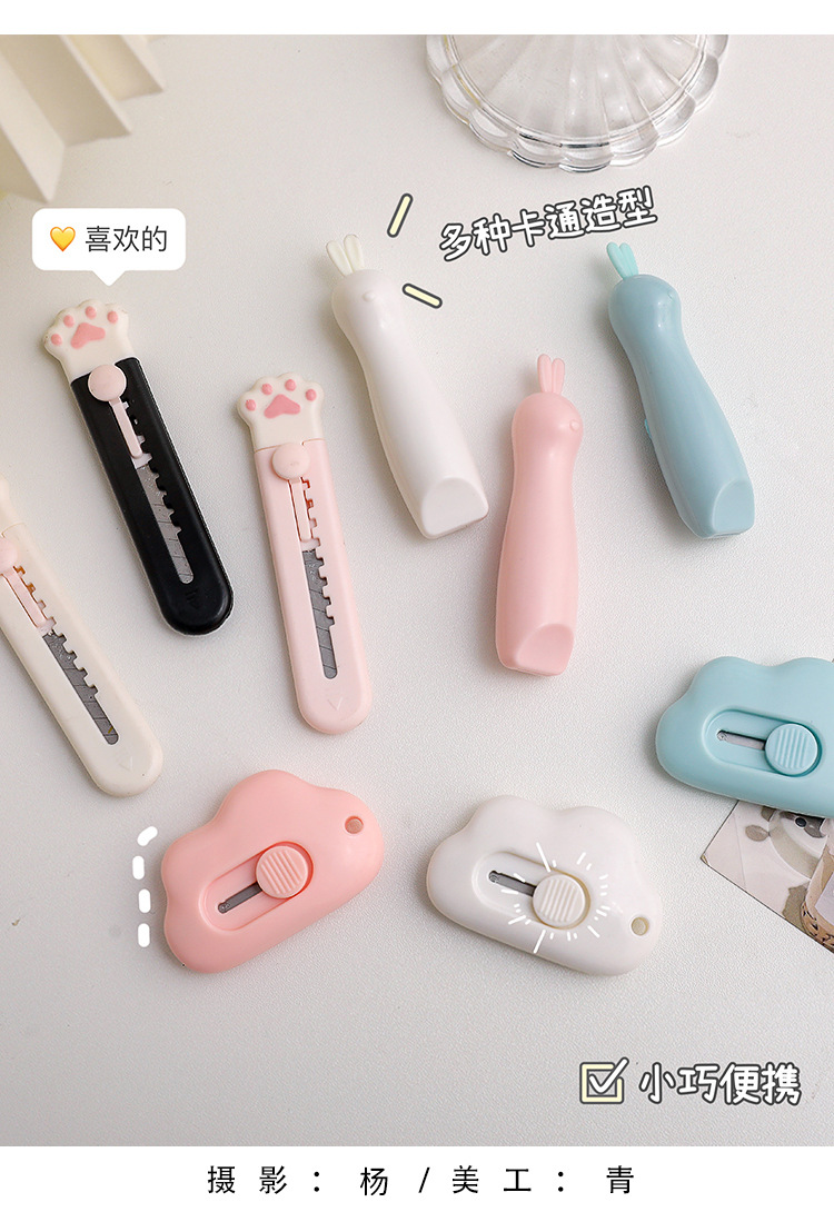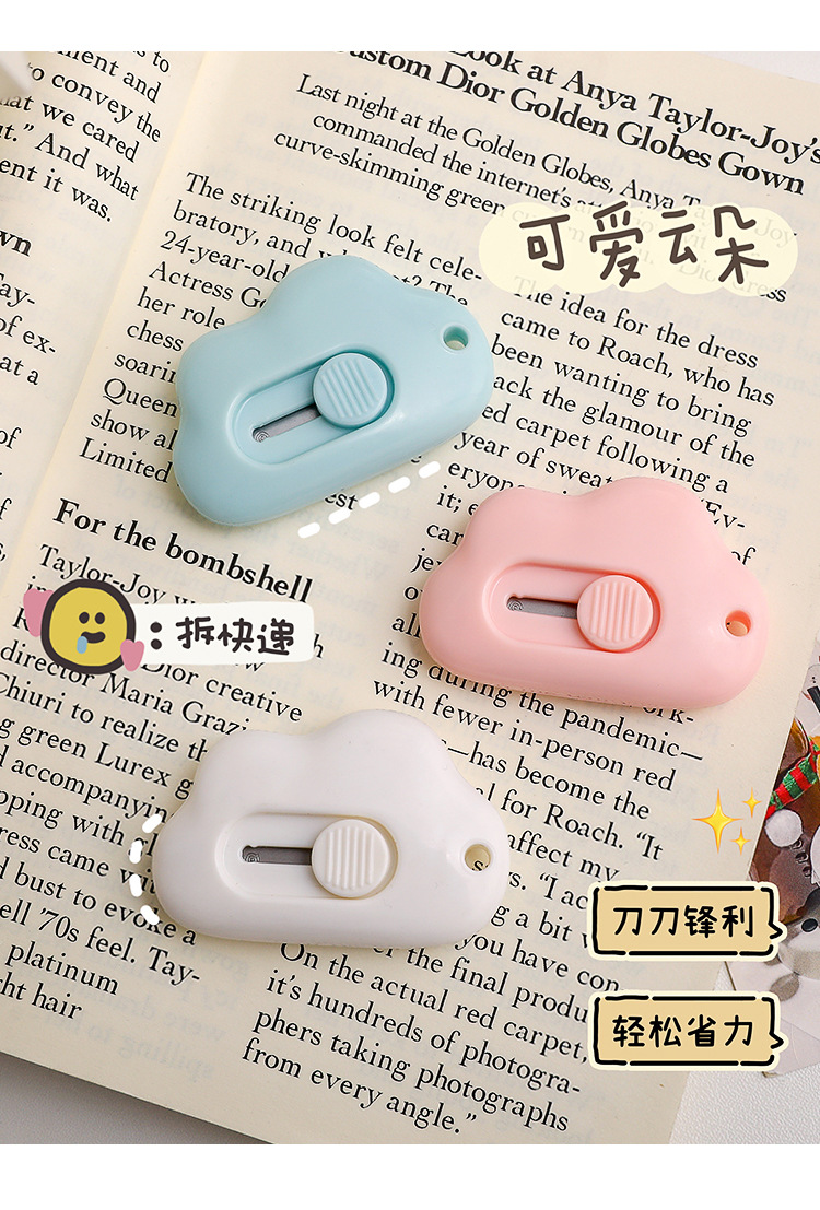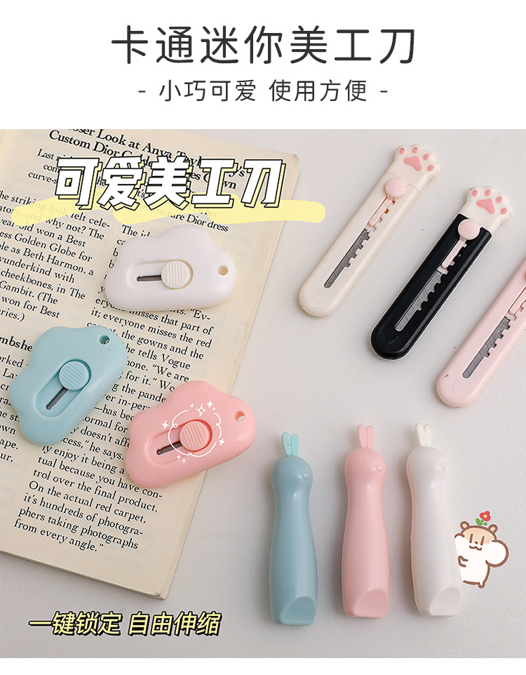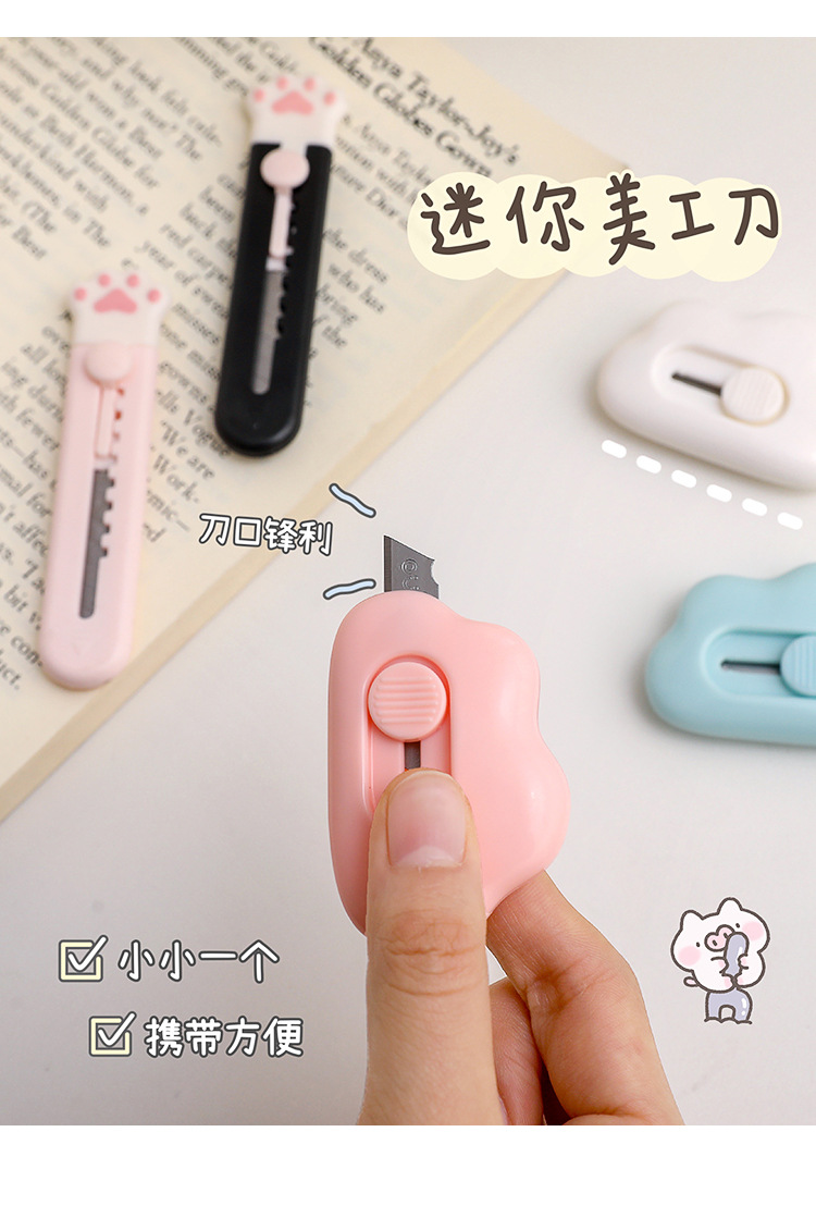 Cuchillo de dibujos animados creativo lindo dibujos animados cuchillo de corte de papel portátil cuchillo de cuentas de mano nube gato