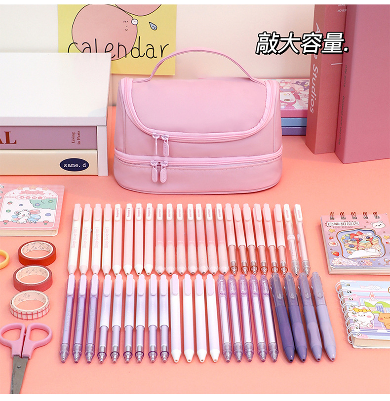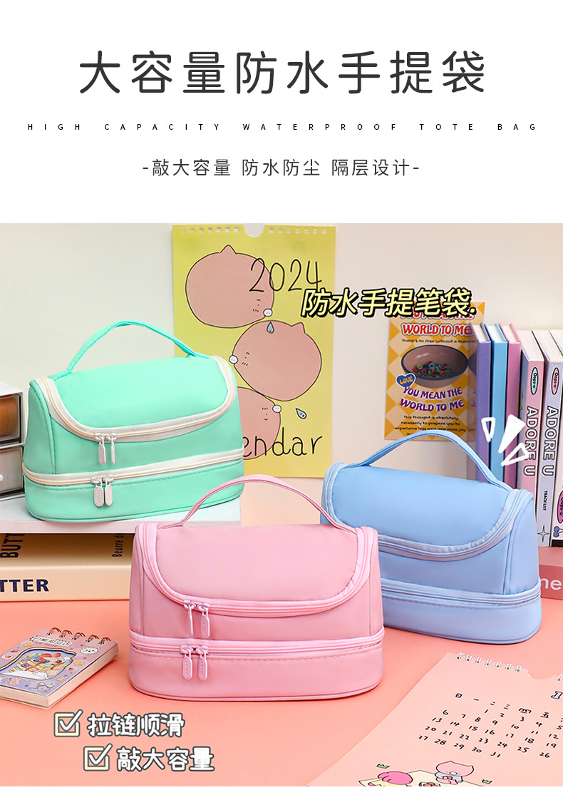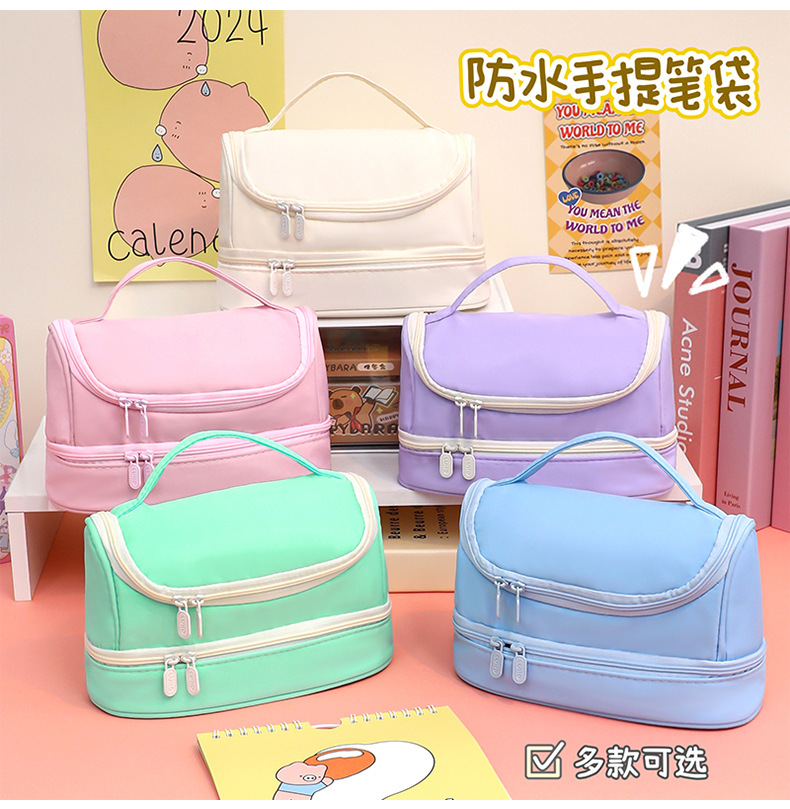 Bolsa de bolígrafo de gran capacidad, memoria portátil al por mayor, lona impermeable, caja de bolígrafo de macarón de color sólido, bolsa de maquillaje simple