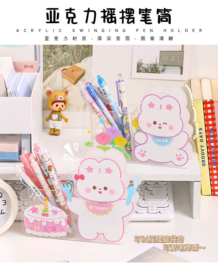 Titular de la pluma de acrílico transparente estudiante de secundaria caja de papelería de almacenamiento sacudiendo la cabeza swing caja de lápiz colgante papelería creativa al por mayor