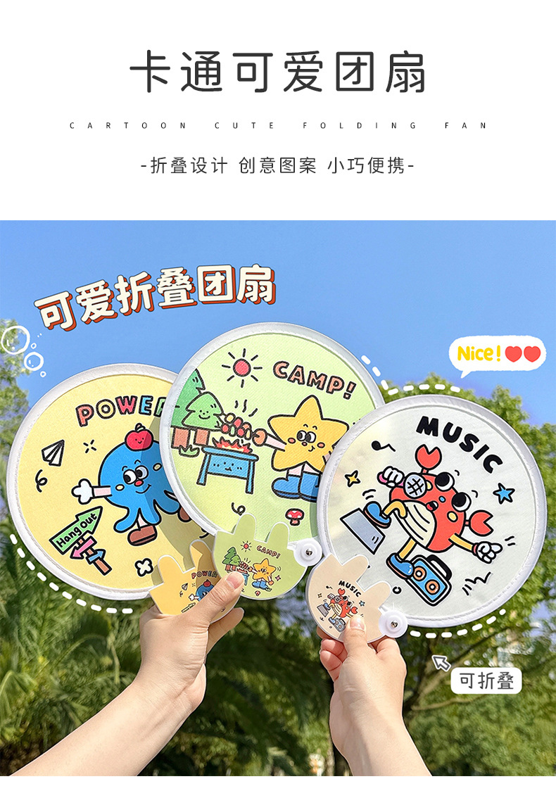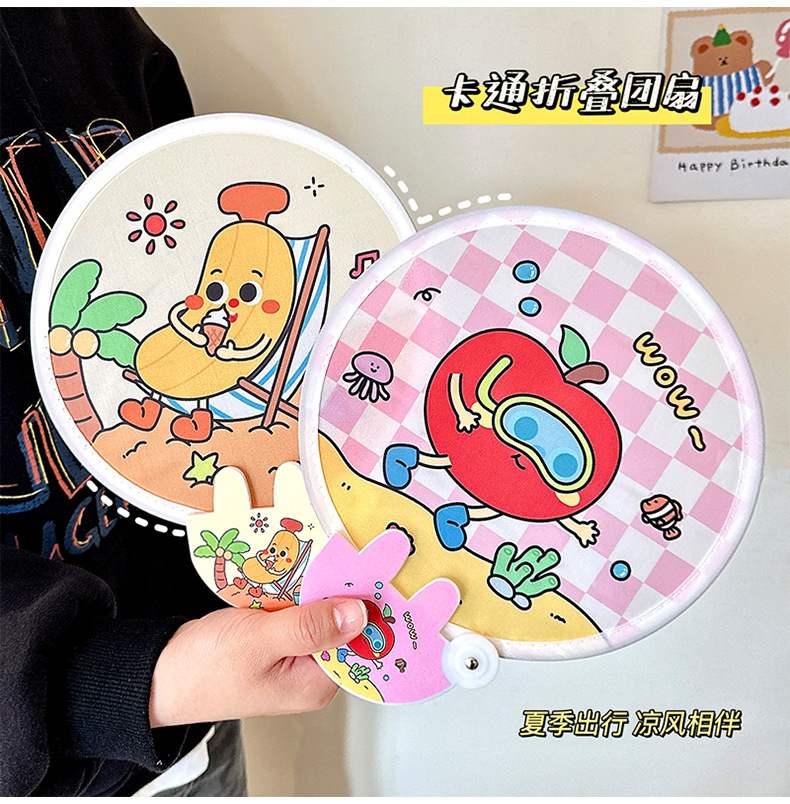 Reflector lindo ventilador plegable ventilador portátil de dibujos animados ventilador pequeño estudiante mini tela ventilador de grupo ventilador plegable al por mayor