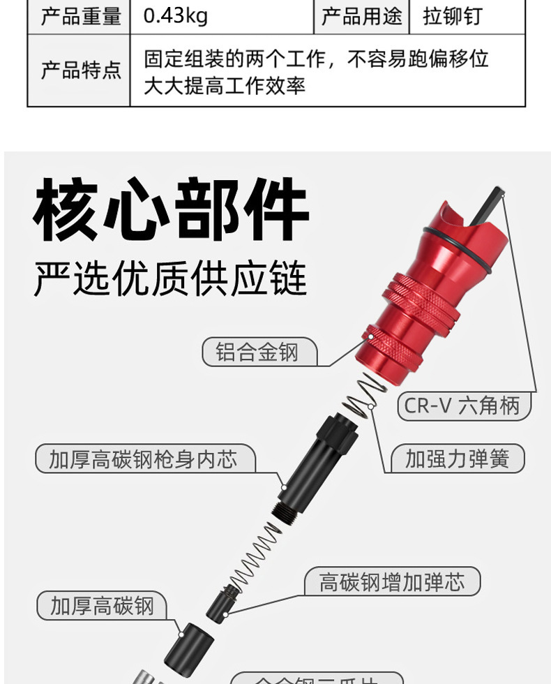 | Modelo | Cabeza de conversión de pistola de remachado de aleación de aluminio roja |