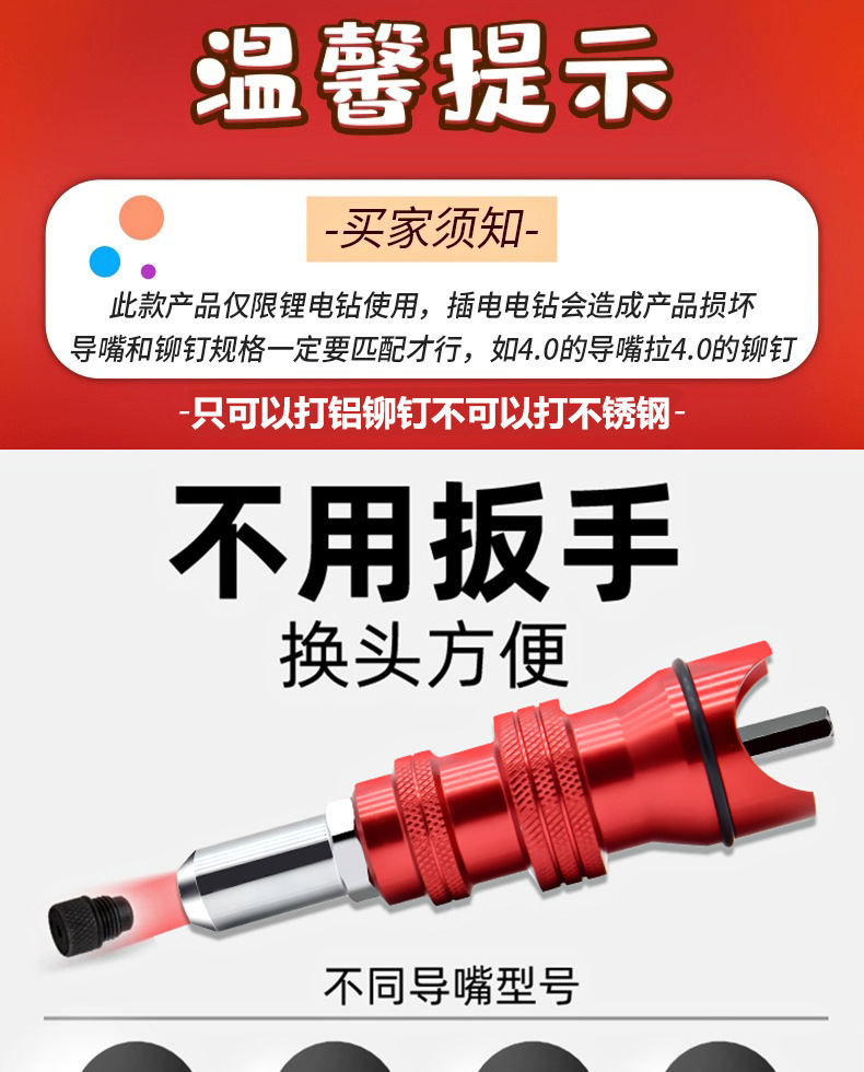 Cabeza de conversión de pistola de remache eléctrica para remache de núcleo de extracción doméstico tuerca automática pistola de remache