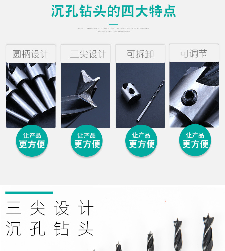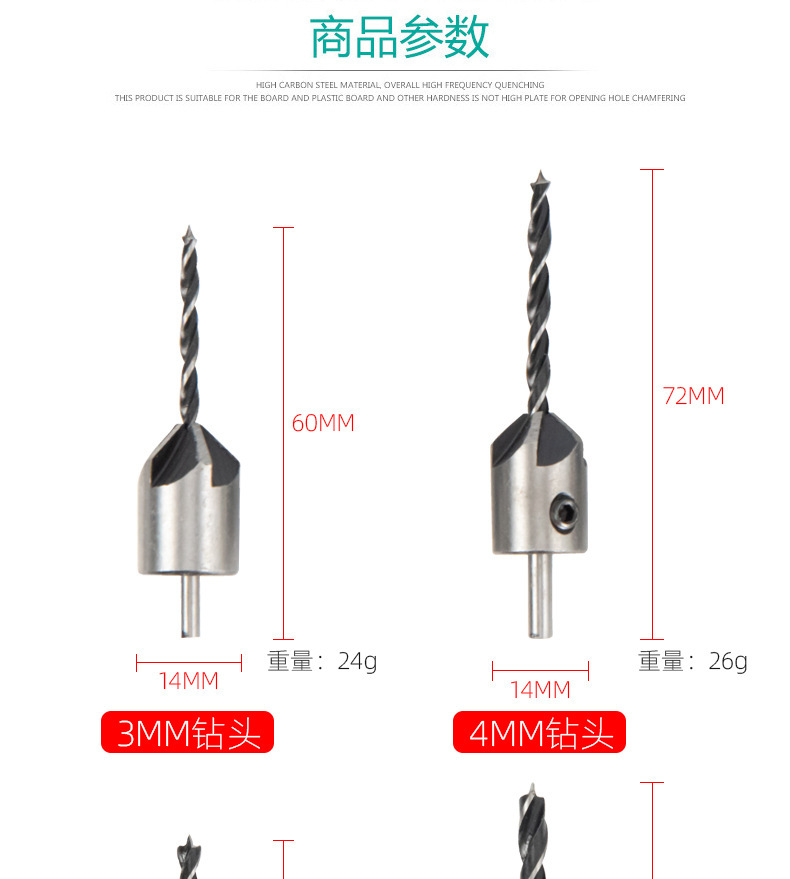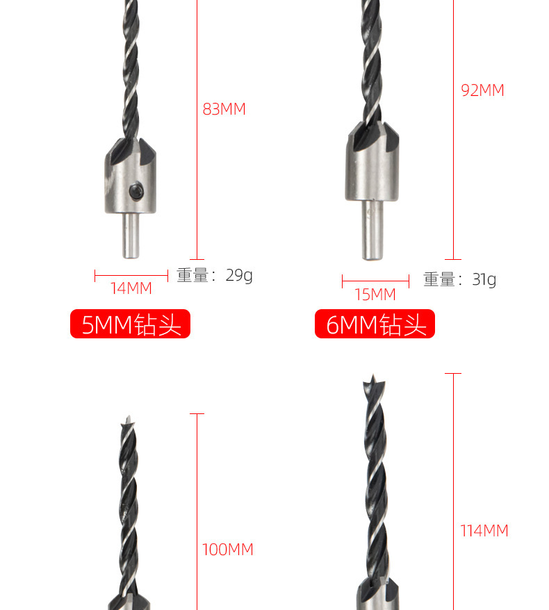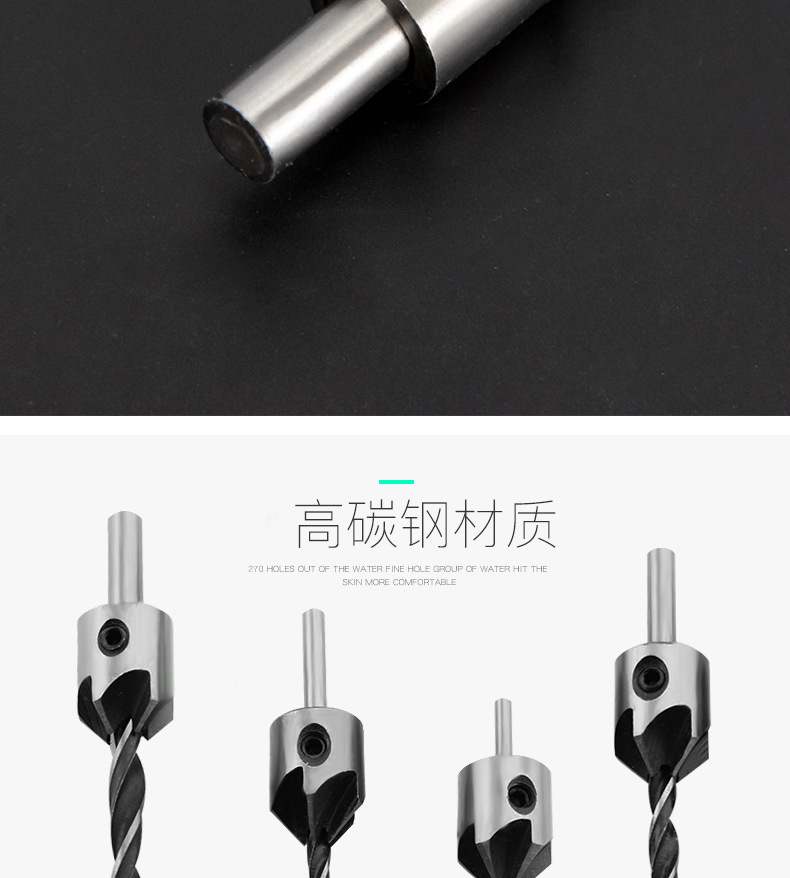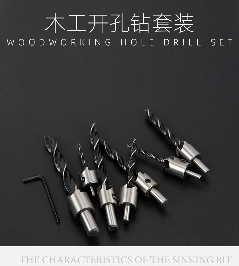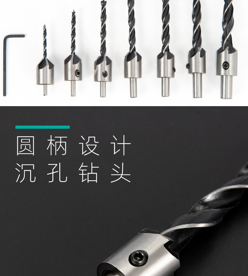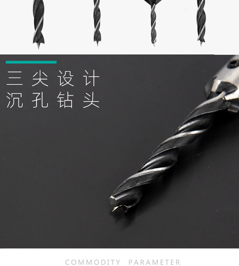 Taladro de cabeza avellanada de carpintería de tres puntas/taladro de escariado/dispositivo de biselado de Carpintería/taladro guía/traje de taladro de acero de alta velocidad
