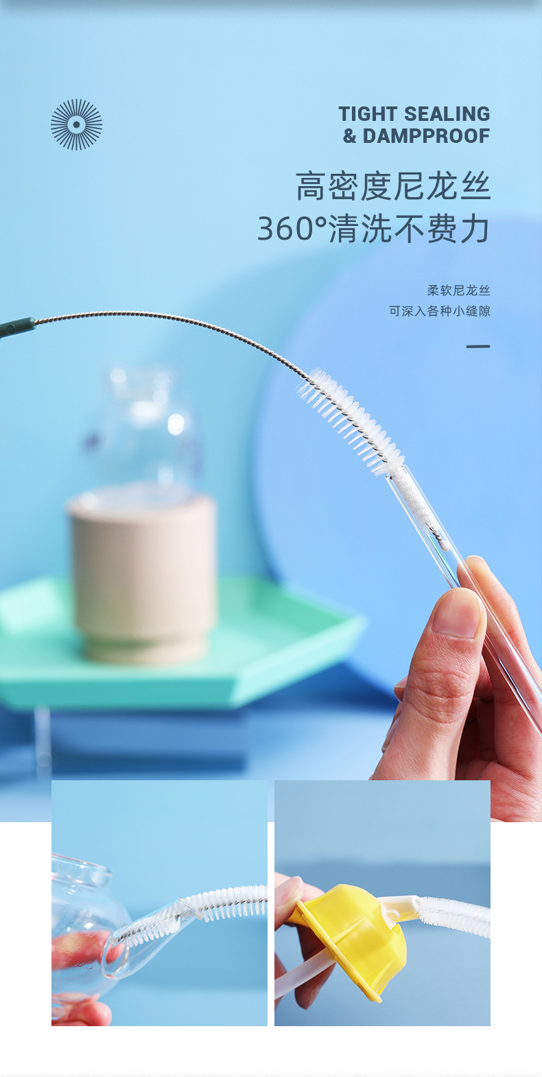 Original de lana de nylon cepillo de paja 304 mango de acero inoxidable tubo de ensayo bolsa de cepillo simple pezón cepillo