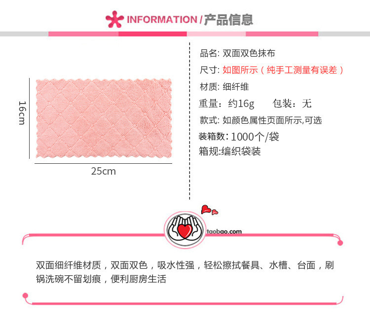 Paño de cocina de limpieza de doble cara de dos colores fuerte trapo absorbente material de fibra Toalla de plato almohadilla de fregado húmedo y seco