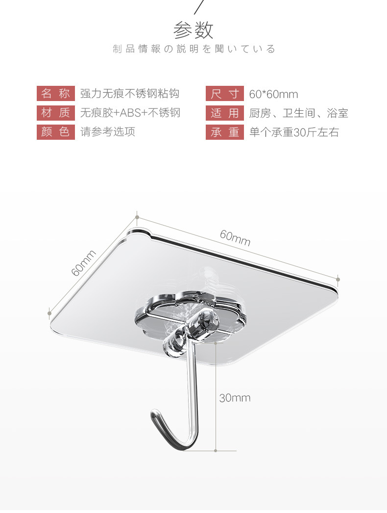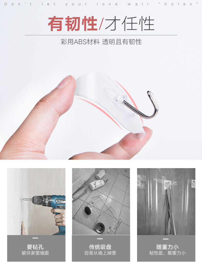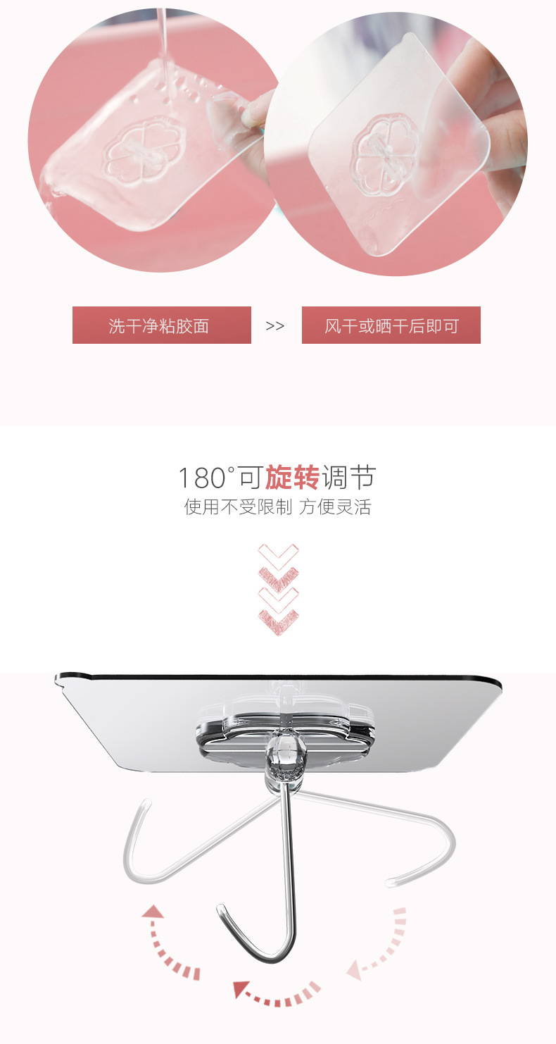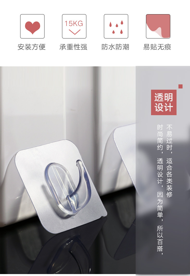 Gancho adhesivo transparente sin clavos que no deja marcas, resistente al agua, a prueba de humedad, gancho de pared adhesivo de alta carga