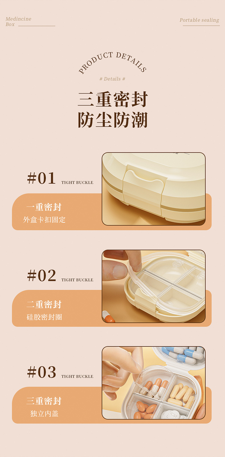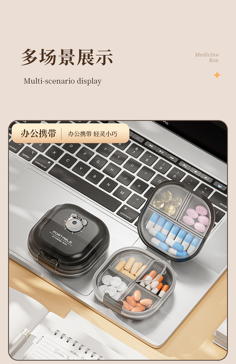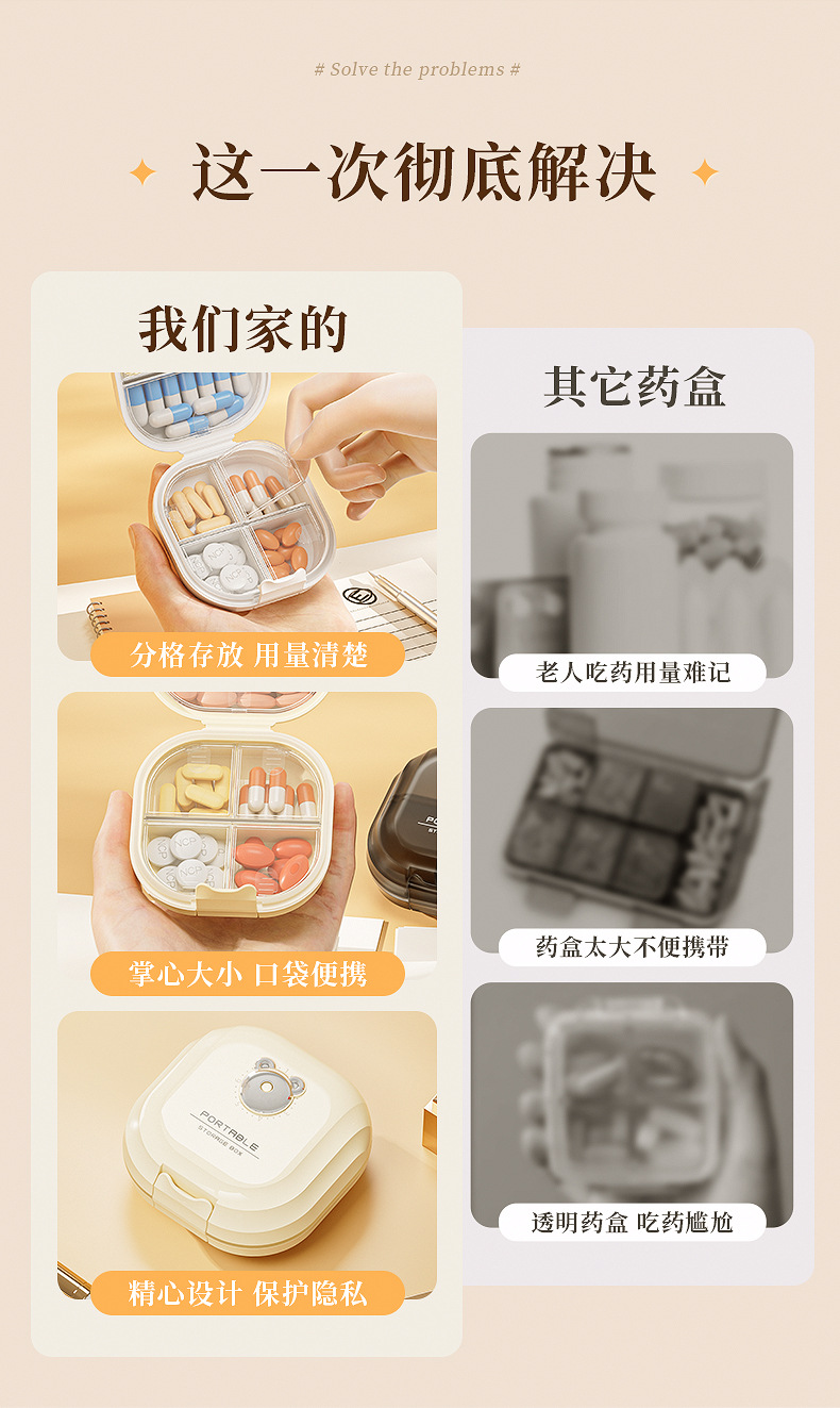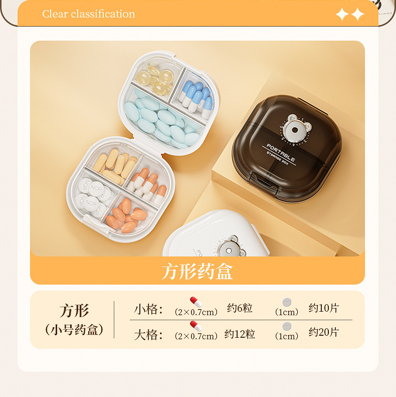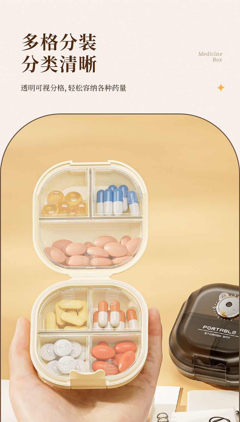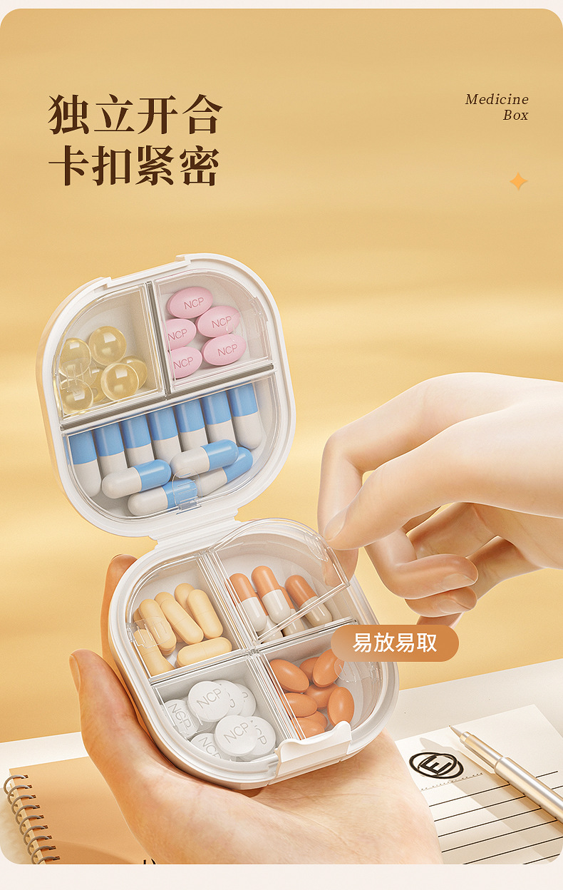 Caja de medicamento portátil empaquetada separada caja de almacenamiento tres comidas al día empaquetada sellada tabletas empaquetadas separadas caja de medicamento 7 días a la semana