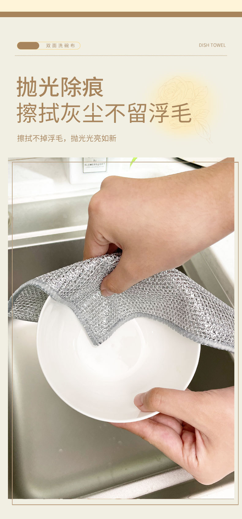 Solo trapo de seda de plata de doble cara reemplazo doméstico bola de acero plato paño cocina estufa alambre de acero paño de limpieza sin aceite