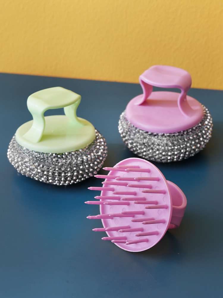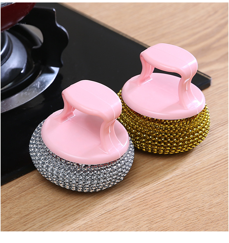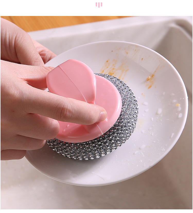 Bola de acero desmontable, bola de limpieza, mango, cepillo de lavado de platos, cepillo de limpieza de cocina, cepillo de limpieza de platos al por mayor