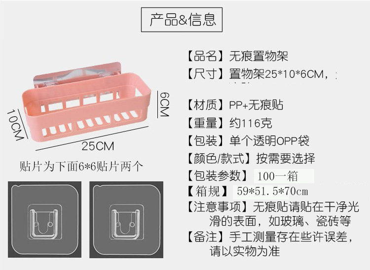 Cuarto de baño montado en la pared rack de almacenamiento sin perforaciones sin costuras artículos de tocador de absorción de pared rack de almacenamiento de baño
