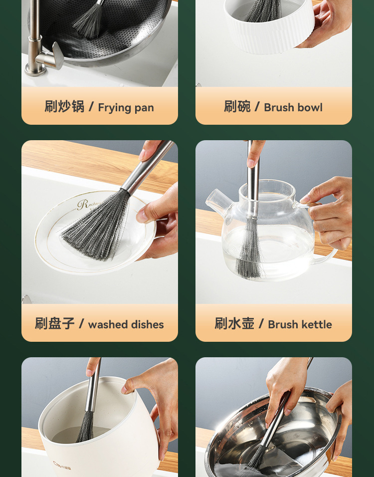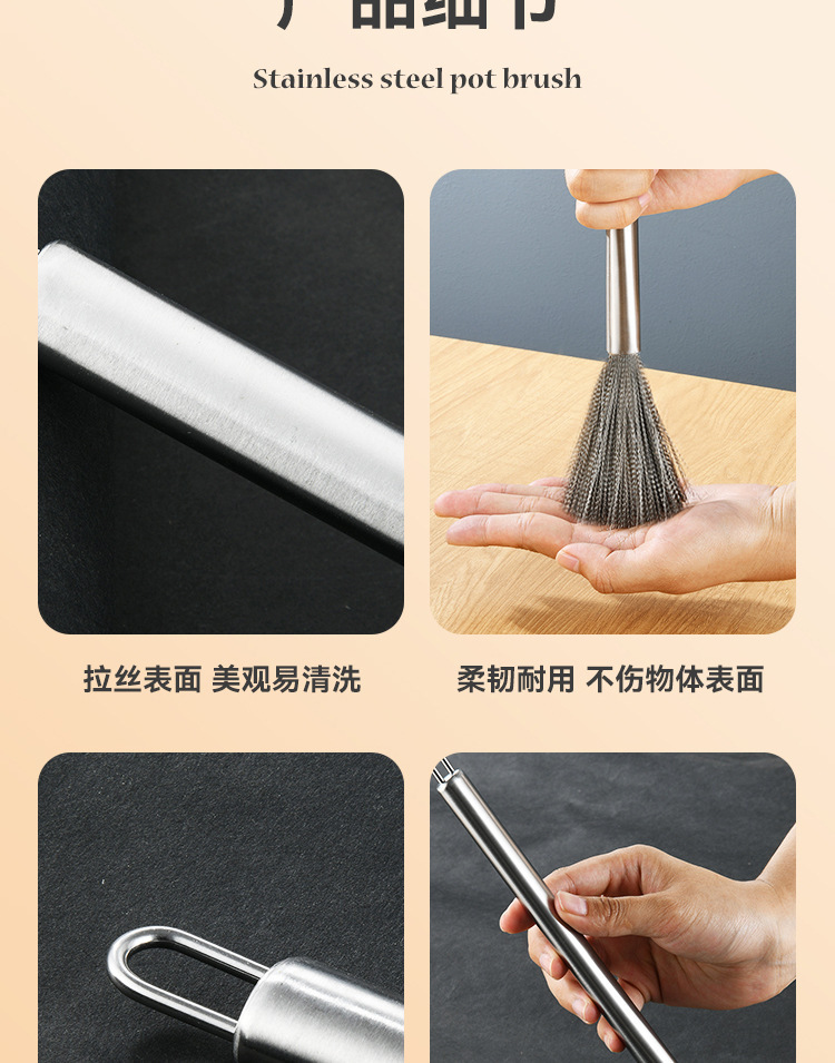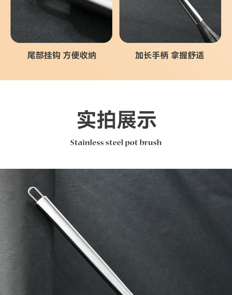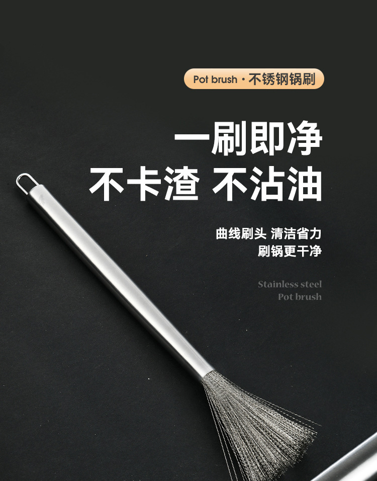 Cepillo de olla de acero inoxidable avanzado cepillo de acero inoxidable mango largo Cocina Esencial antiadherente aceite 304 alambre de acero inoxidable fuerte descontaminación
