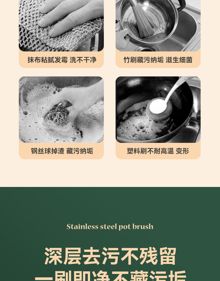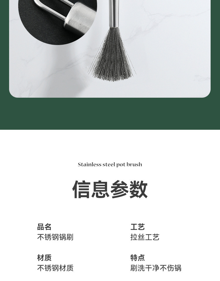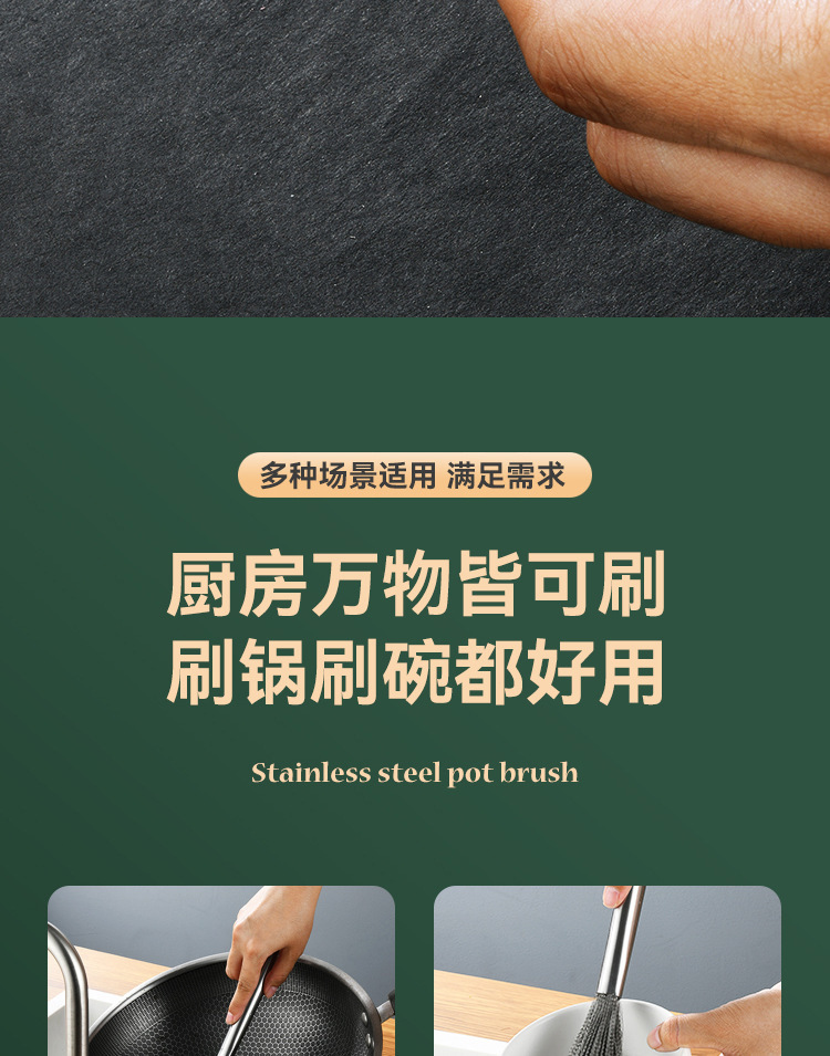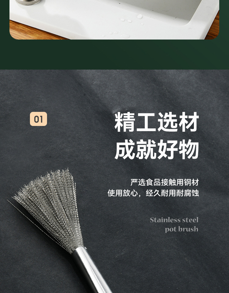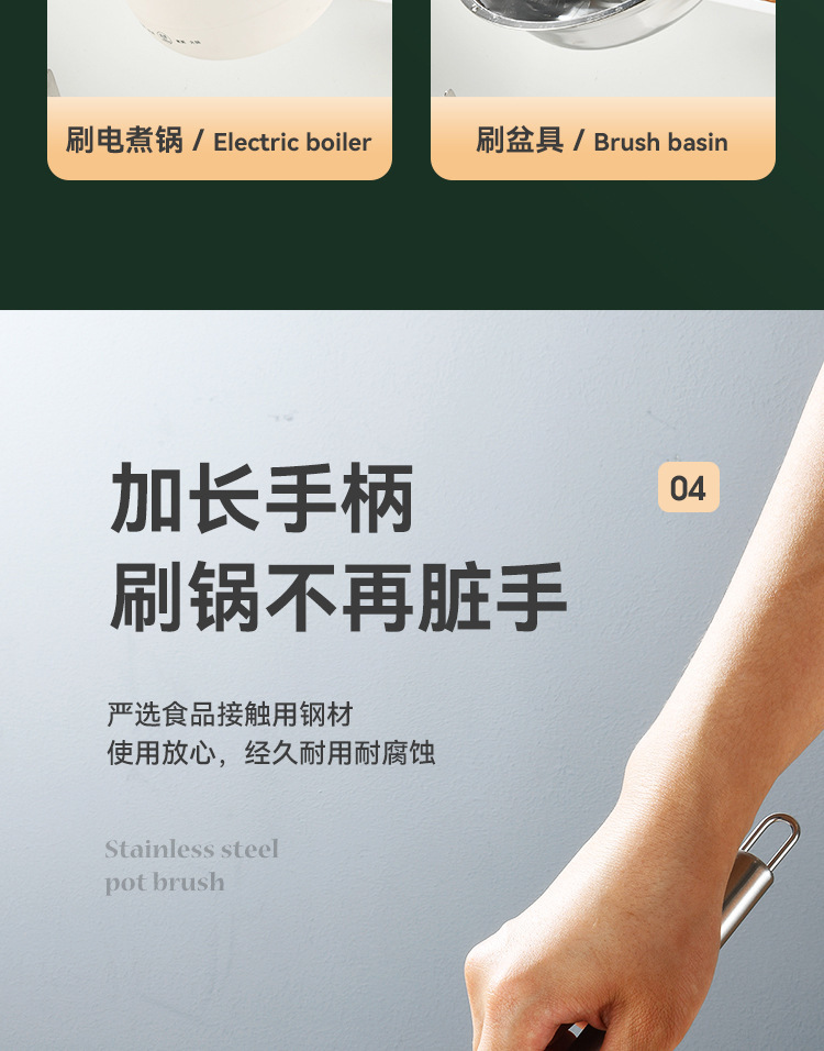 Cepillo de olla de acero inoxidable avanzado cepillo de acero inoxidable mango largo Cocina Esencial antiadherente aceite 304 alambre de acero inoxidable fuerte descontaminación