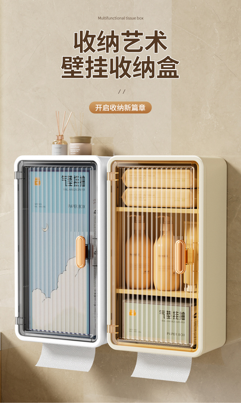 Baño Caja de dibujo de pared simple translúcida para colgar en la pared para el hogar Caja de almacenamiento de toallas de papel de puerta abatible sin perforación Caja de pañuelos