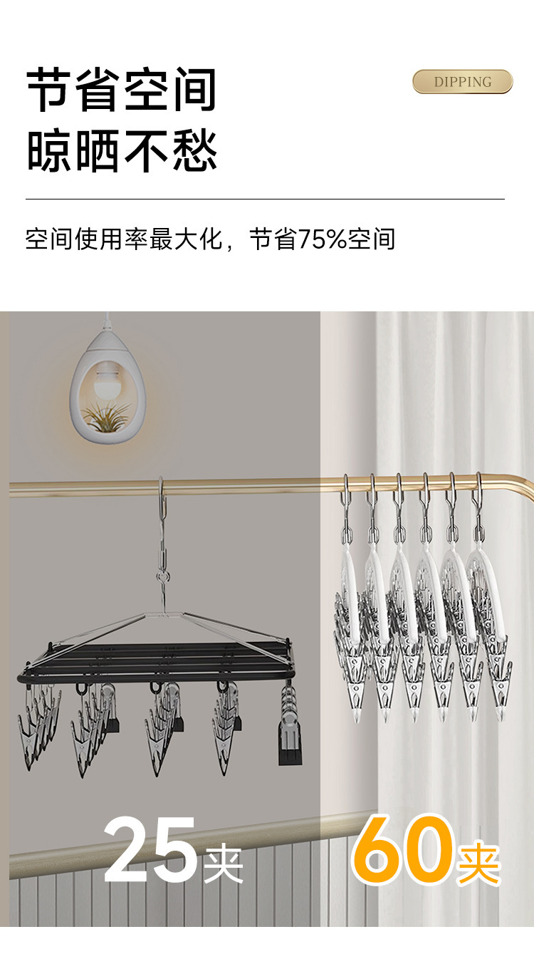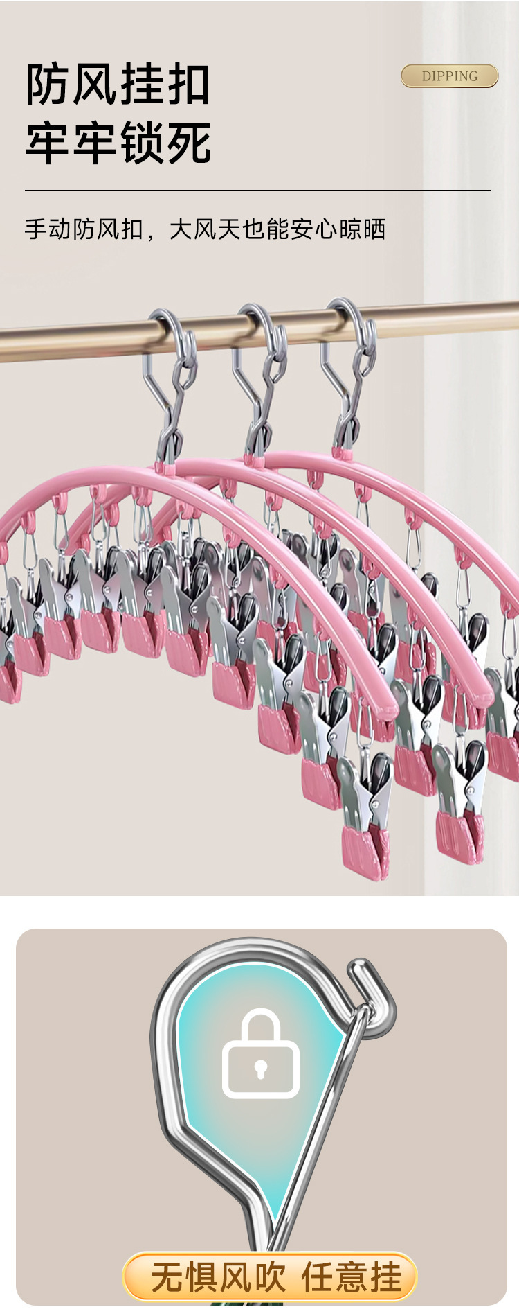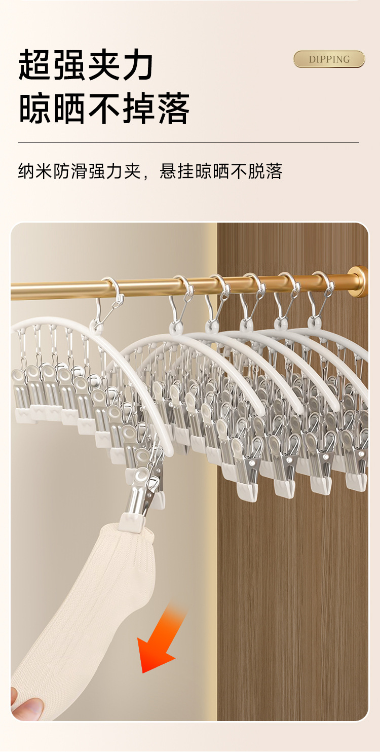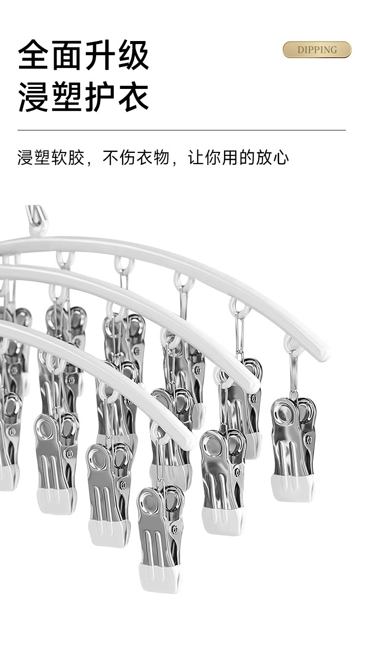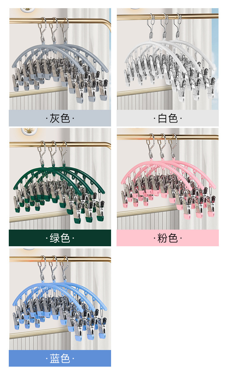 Calcetines de acero inoxidable percha de secado multi-clips sin marcas para ropa interior para ropa interior percha de secado multifuncional a prueba de viento