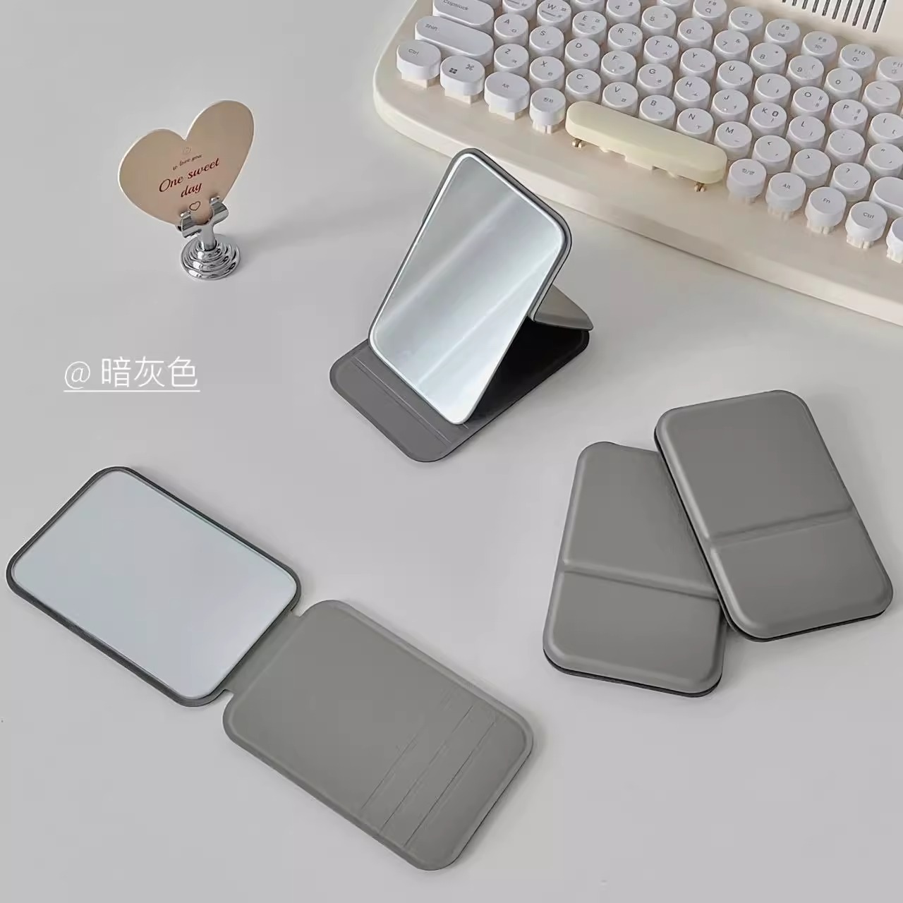 Espejo cosmético de escritorio portátil pequeño espejo color sólido pu cuero portátil plegable escritorio vestidor espejo conveniente espejo