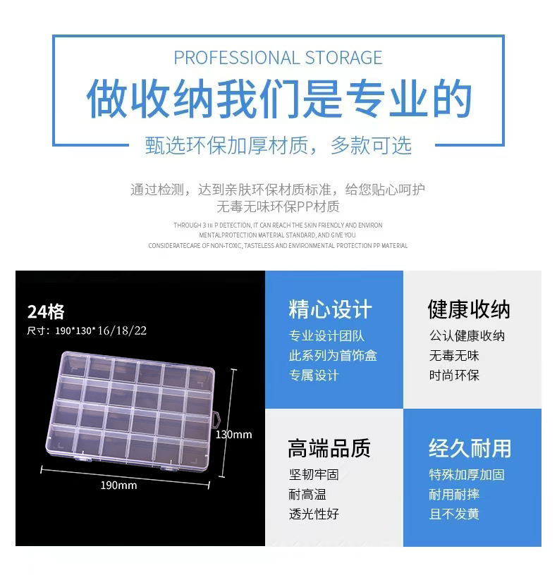 Caja de almacenamiento de múltiples compartidos simple de 24 compartidos grande, caja de división de piezas de hardware, caja de almacenamiento de plástico con tapa, caja de división de joyas